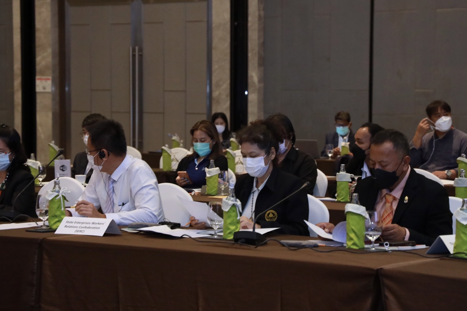 On June 16, 2022, the Permanent Secretary of Labour Mr. Boonchob Suttamanaswong presided over the launch of the Good Labour Practices Project Assessment Report in Thailand’s seafood industry and co-chaired the third National Advisory Committee Meeting on the Ship-to-shore Rights Program South East Asia. Head of the EU Delegation to Thailand, Mr. Giuseppe Busini, Deputy-Director of the International Labour Office in the Asia and Pacific Region, Khun Panadda Boonphala, Advisor to the Thai Tuna Industry Association, Khun Atthaphan Masrangsan, Deputy Secretary-General for Academic Affairs, and the State Enterprises Workers’ Relations Confederation (SERC) also joined the event at the ballroom, 6th floor, Amari Watergate Hotel, Pratunam, Bangkok.