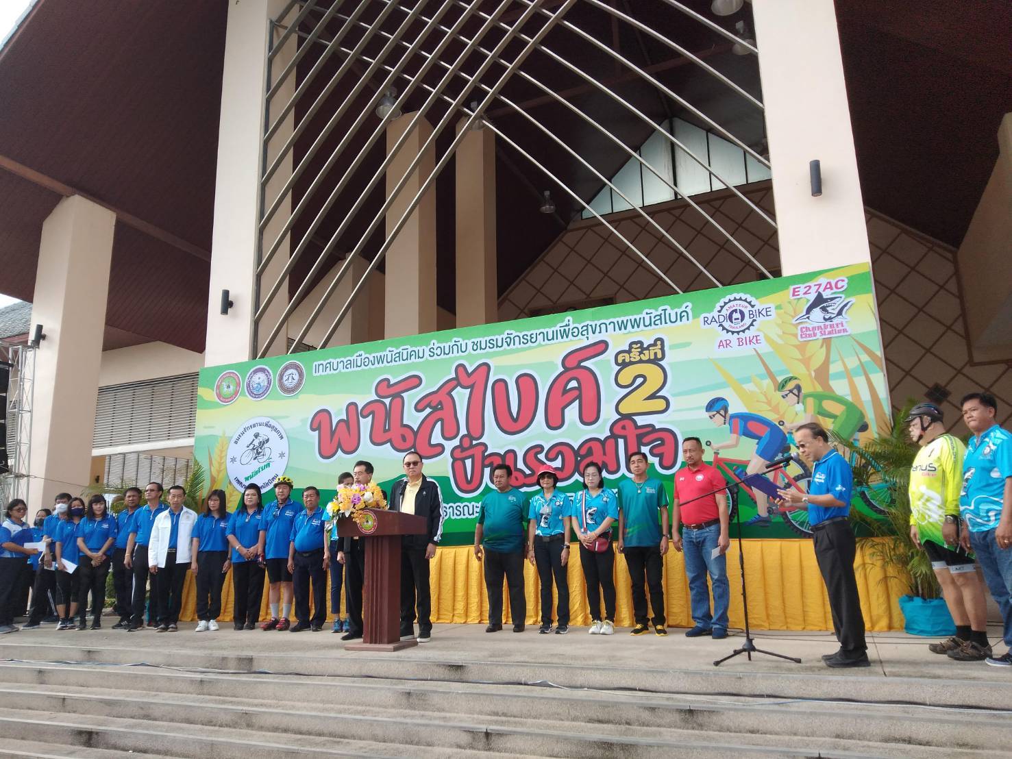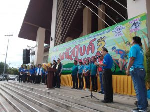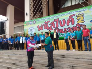 On September 20, 2020, at 07.30 hours, Labour Minister Mr. Suchart Chomklin assigned Assistant to the Labour Minister Mr. Surachai Chaitrakulthong to preside over the commencement of the 2nd “Panas Bike Pun Ruam Jai” event for 2020, which is organized to promote and support exercise for youths, people and personnel in both government and private sectors. The event’s objective is to promote good health, awareness, and care about the health and was held at Chaloem Phra Kiat Public Park, Phanat Nikhom, Chonburi.