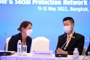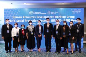 On May 12, 2022, the Permanent Secretary of Labour, Mr. Boonchob Suttamanaswong, gave closing remarks at the Labour and Social Protection Network (LSPN) conference. The event was held during May 11-12, 2022, at the Shangri-La Hotel in Bangkok. Assistant to the Permanent Secretary of Labour, Mr. Samat Pattamasukon, and representatives from Thailand’s Ministry of Labour and the APEC Economic Zone attended the meeting. There were 70 participants in the meeting, which took place in a mixed format.