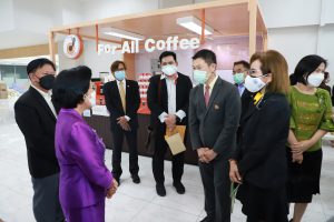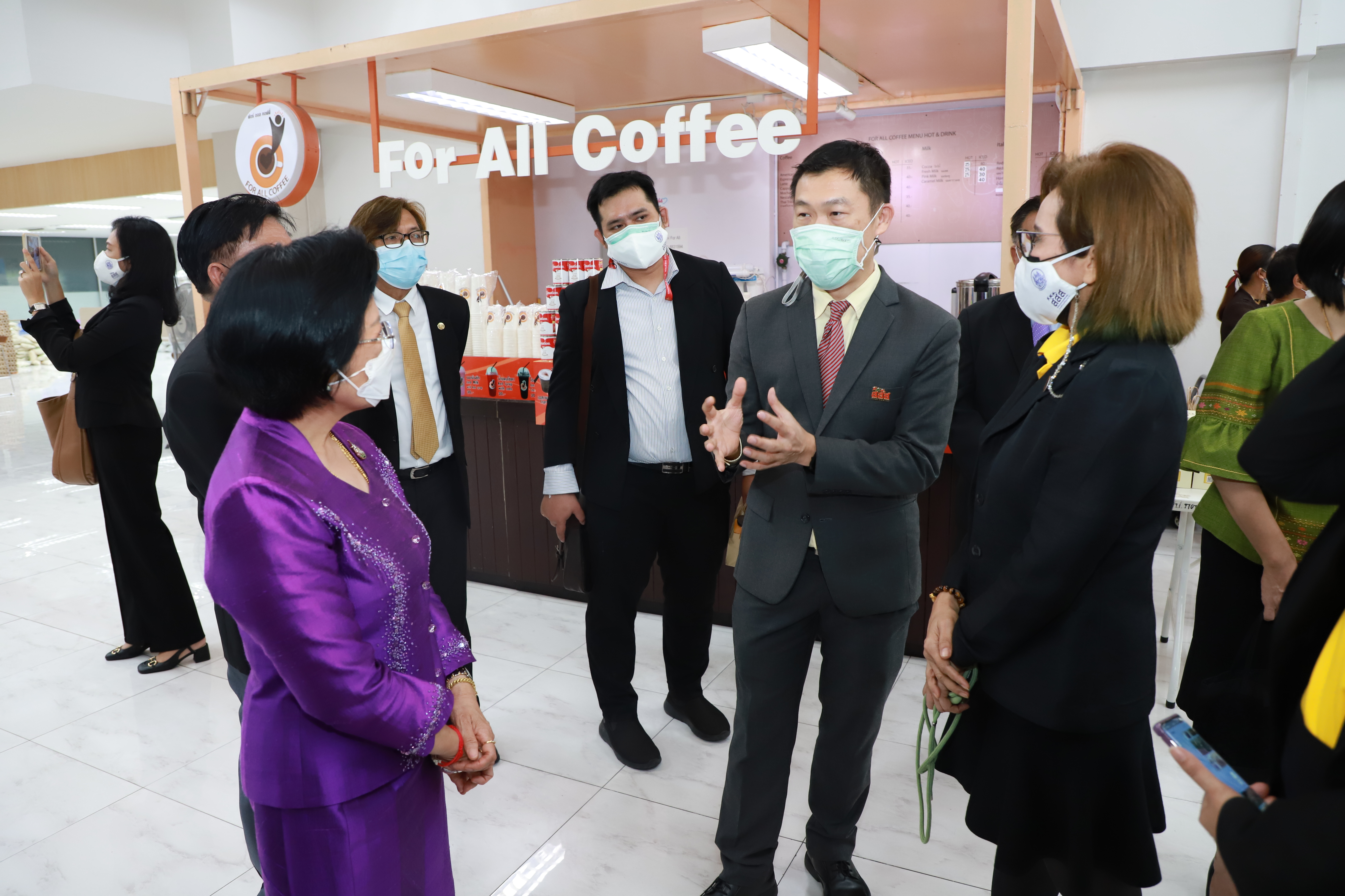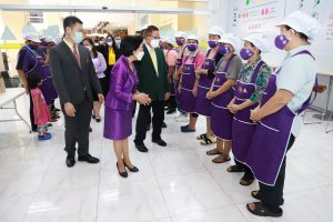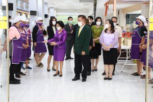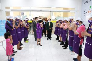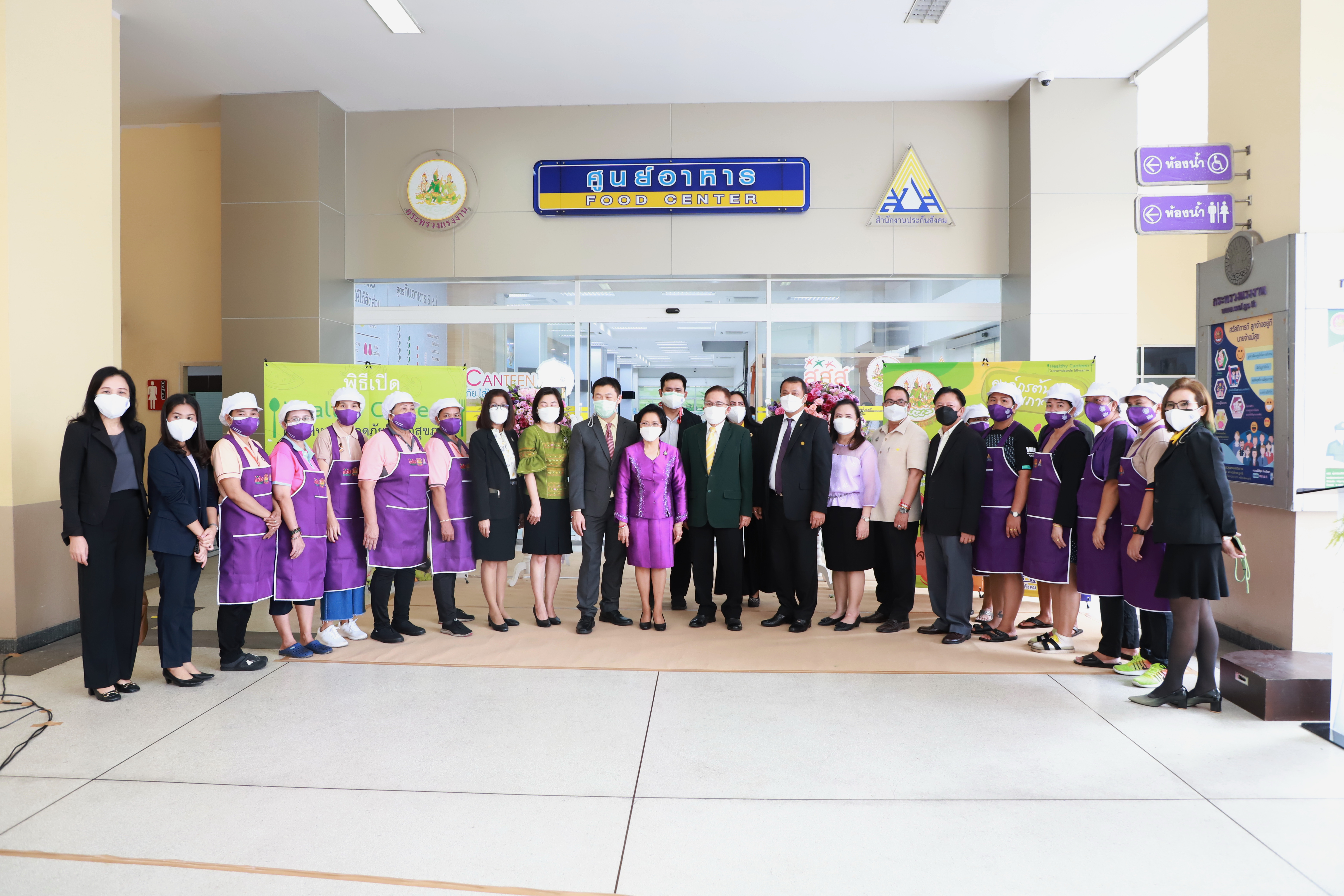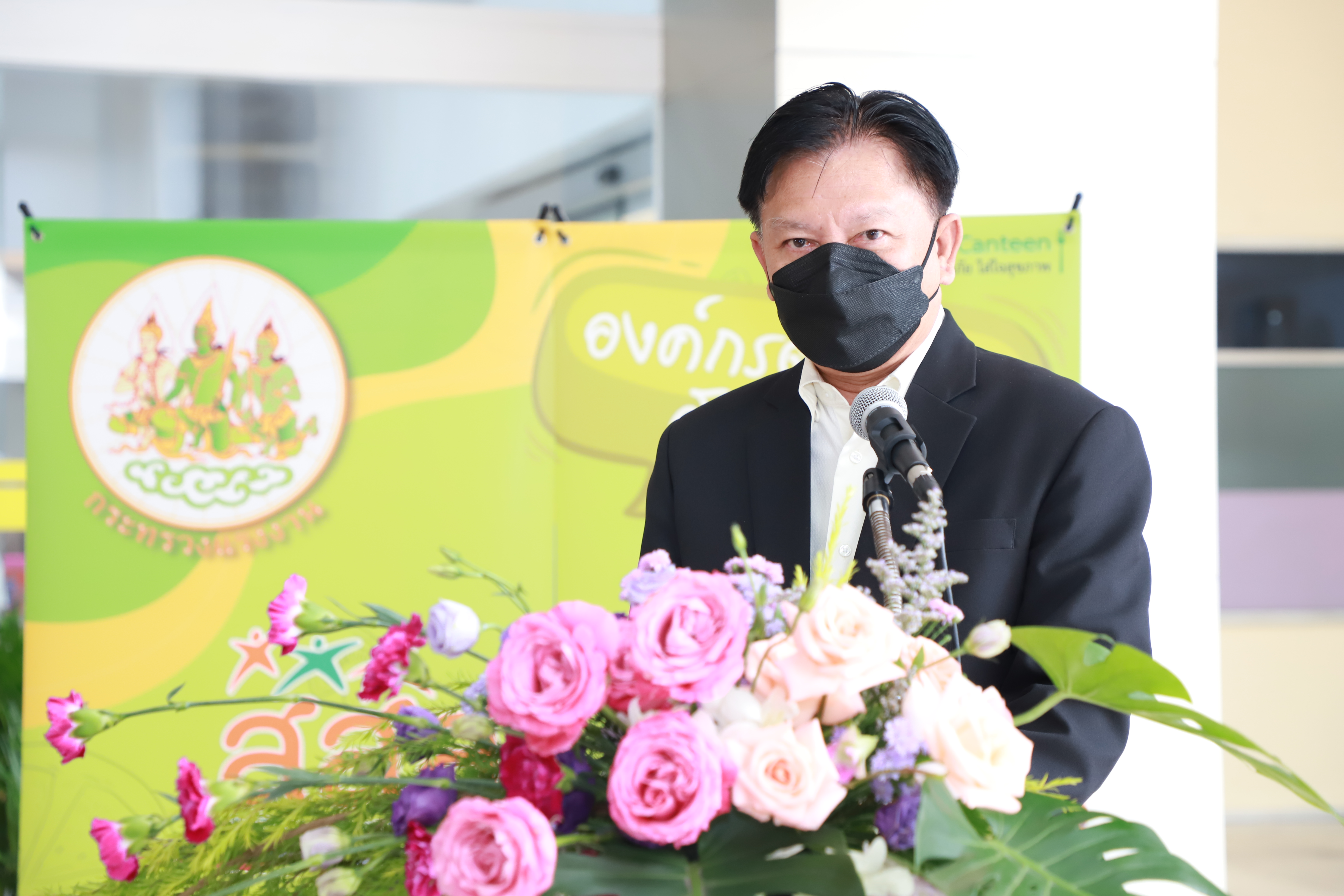 On September 23, 2021, Permanent Secretary of Labour Mr. Suthi Sukosol assigned Deputy Permanent Secretary of Labour Ms. Aumpun Thuwawit presided over the opening ceremony of the Ministry of Labour’s Healthy Canteen project, under the project to create a model for wellness organizations to raise the quality of life among workers sustainability. The Ministry of Labour’s Healthy Canteen Project Coordinator Mr. Banyat Luanpan, gave a report. Mr. Thapabutr Chomsevee, President of the Association for Leaders of Change for Labour Development, Mr. Arthit Ismo, Project Executive for the “Healthy and Safety to be Decent Work,” along with the participants of the fourth class from the Leaders of Change for Labour Development program participated in this event at the Ministry of Labour’s canteen, 1st floor, Ministry of Labour. Mr. Bunyat said that the Ministry of Labour received a budget from the Health Promotion Fund (ThaiHealth) to create a model wellness organization project to enhance workers’ quality of life towards sustainability. Each department within the ministry prepares a project to propose to the working group for consideration, approval, and action. Each project focuses on good health for personnel in the organization, following the criteria of the Happinomiter happiness meter, such as being happy, healthy, having a good heart, having a good job, having a good family, having a good financial position, and a good place to work where there are hygienic facilities and disease prevention, including the prevention of Covid-19 that is currently spreading.