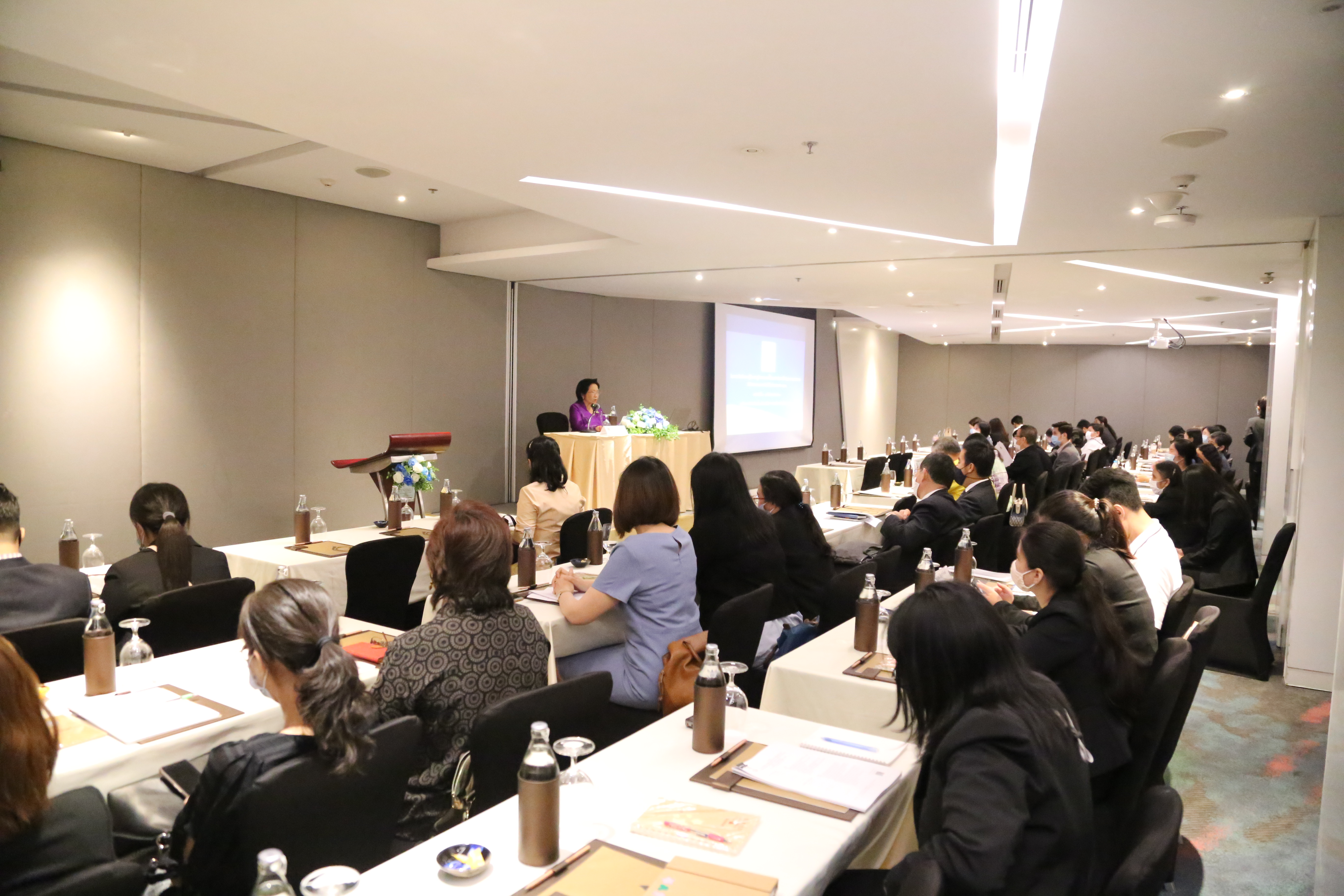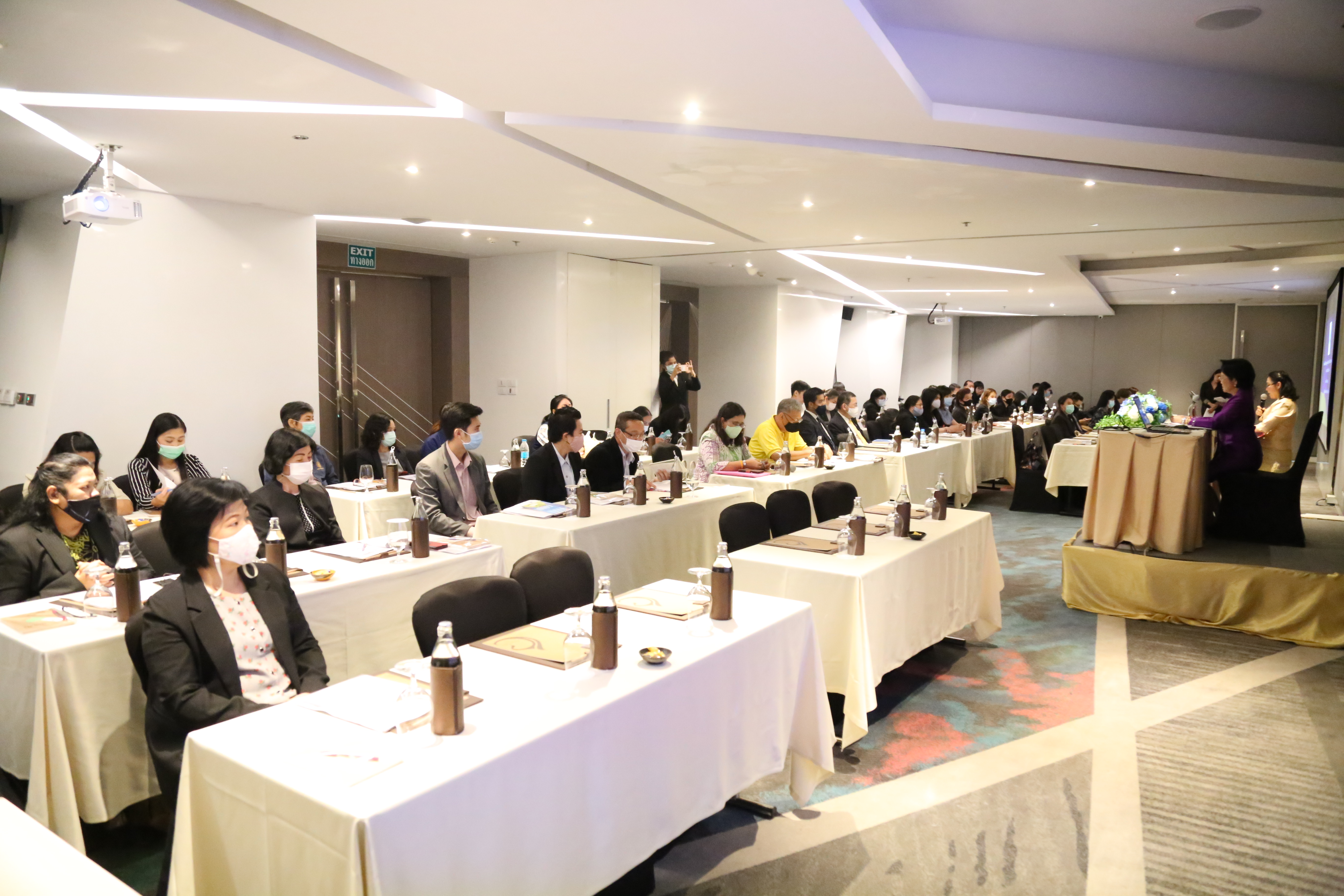 On September 9, 2020, at 08.45 hours, Deputy Permanent Secretary of Labour Ms. Aumpun Thuvavit presided over the project’s opening ceremony to enhance knowledge on the workforce economy both in Thailand and internationally, for personnel of agencies under the Ministry of Labour, for 2020. The event took place at the Grand Pavilion, 9th floor, Centara Watergate Pavilion Hotel, Bangkok. The Deputy Permanent Secretary of Labour stated that “The world today is volatile and rapidly changing, even more so than in the past. Scholars describe this in four words: VUCA, which stands for Volatility, Uncertainty, Complexity, Ambiguity. As we see now is the Covid-19 pandemic, which spread so rapidly that we humans could not prepare in time to take action. The situation has had severe and ongoing impacts throughout the world, not only in public health but affecting the economy and spreading widespread impact on the labour market and employment.”