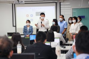On July 11, 2022, at 09.00 hours, the Permanent Secretary of Labour, Mr. Boonchob Suttamanaswong, and the Ministry of Labour’s Spokesperson (on politics), Mrs. Thienrat Navamawat, chaired the opening remarks on the training program for public relations development for the Ministry of Labour’s personnel, giving a lecture on “public relations guidelines following the Ministry of Labour’s policies.” The event was honored by Ms. Thapanee Eadsrichai, a well-known field news anchor from the 3D News program and from “The Reporters,” an online media. Khun Yam gave a lecture on “writing techniques for public relations and creating a corporate image” and “techniques for making clips and preparing infographics for public relations.” Assistant to the Permanent Secretary of Labour, Mr. Samat Pattamasukon, and the Ministry of Labour’s executives also joined the occasion. Participants included public relations practitioners from departments under the Ministry of Labour, who attended at the training room of the Institute of Skill Development, 2nd floor, Smart Job Center Building, Ministry of Labour.