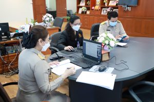 On January 10, 2022, at 13.00 hours, Deputy Permanent Secretary of Labour Ms. Bubpha Rueangsud chaired the Committee on Computer System Management and Procurement of the Permanent Secretary’s Office of Labour meeting no. 1/2022. The meeting took place via Zoom at the Office of the Deputy Permanent Secretary of Labour, 7th floor, Ministry of Labour. The meeting considered developing a linkage system that exchanges government information through the GDX system to support the country’s manpower database system (E-workforce Ecosystem) for the 2023 fiscal year.