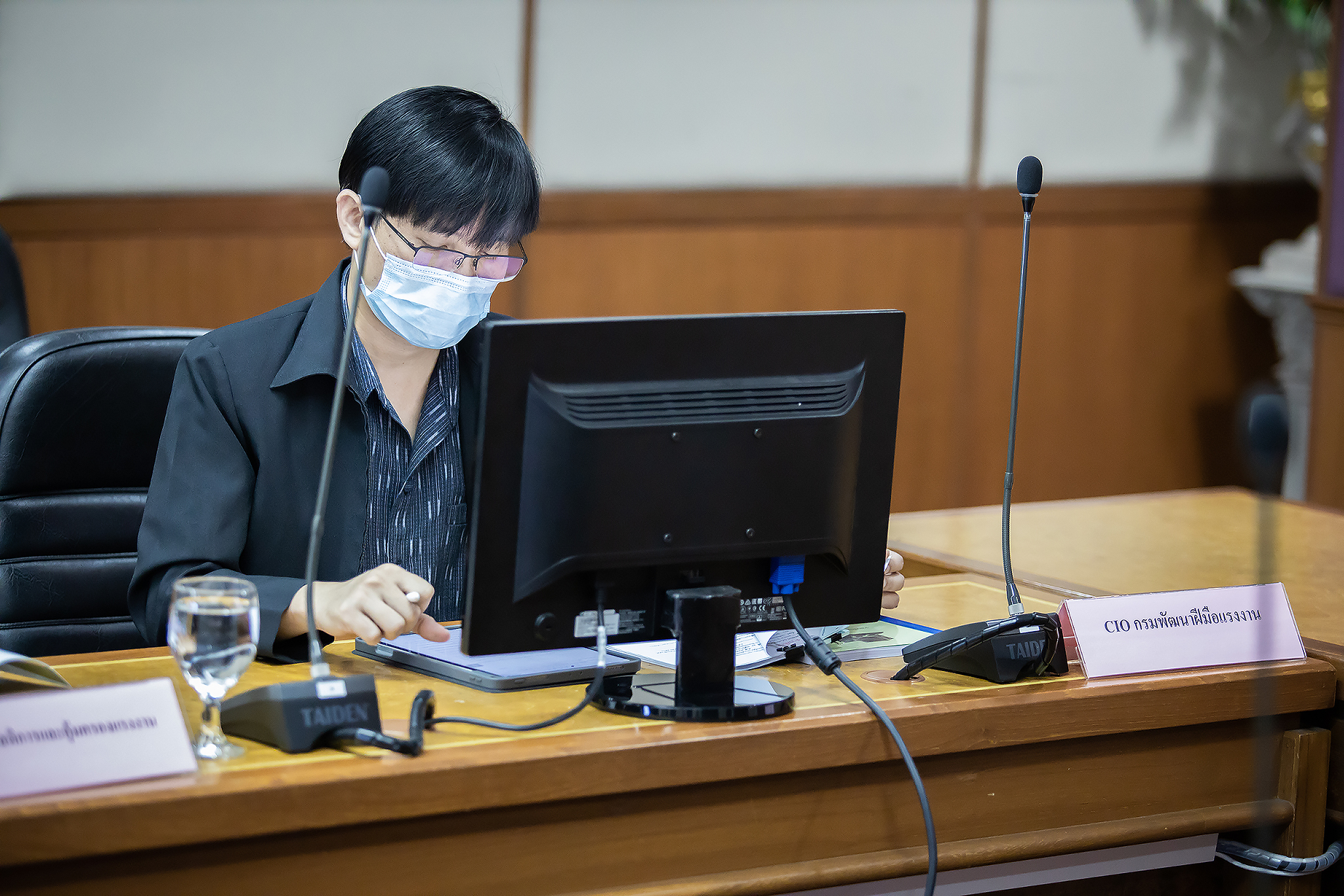 Today (November 24, 2020) at 09.00 hours, Deputy Permanent Secretary of Labour Miss Aumpun Thuvavit chaired the Ministry of Labour’s Computer System Management and Procurement Committee meeting no. 9/2020. Relevant departments also joined the meeting, which took place at the Prasong Rananant meeting room, 5th floor, Ministry of Labour. The meeting considered the Social Security Office’s projects and procurement of computer equipment for the 2021 fiscal year, including the purchase of local area network (LAN) equipment to replace older systems, purchase of video conference systems to replace older systems, the development of systems to support services (Queue), and the project for renting a data communication network system for social security services. Furthermore, the meeting considered projects and procurement of computer equipment proposed for the Department of Labour Protection and Welfare’s 2022 budget, namely the project to increase the efficiency of information systems in service with Container technology.
