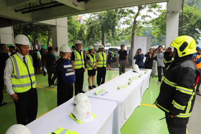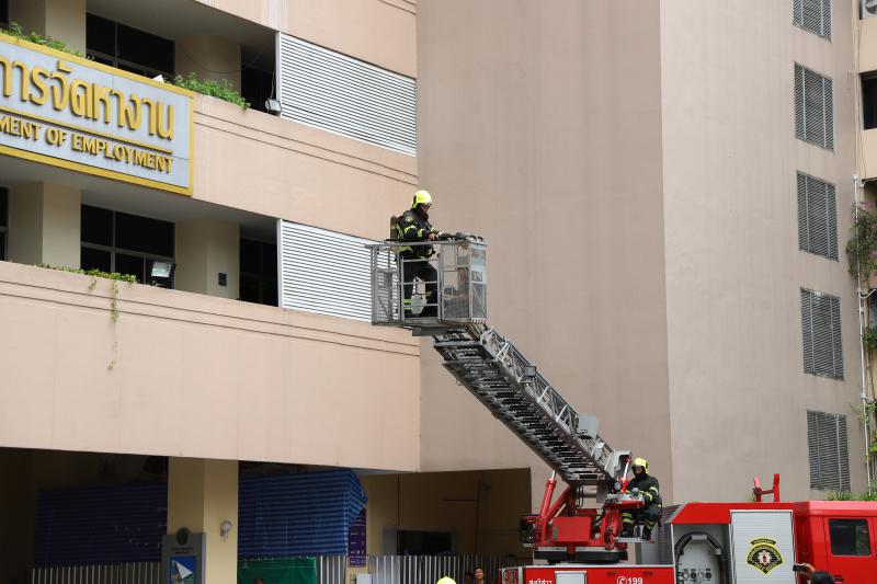 On May 30, 2019, at 11.00 hours, Director-General of the Department of Labour Protection and Welfare Mr. Wiwat Tangsong, directed the firefighting training and fire evacuation drill at the Ministry of Labour’s Building for 2019. Deputy Permanent Secretary of Labour Mr. Wiwat Jirapanvanich, Director-General of the Department of Skill Development Mr. Suthi Sukosol, senior executives, officials and staff of the Ministry of Labour participated in fire evacuation drill on the bottom level of the Ministry of Labour’s building.