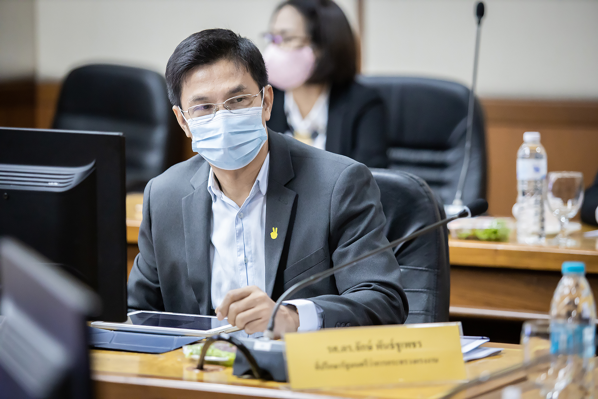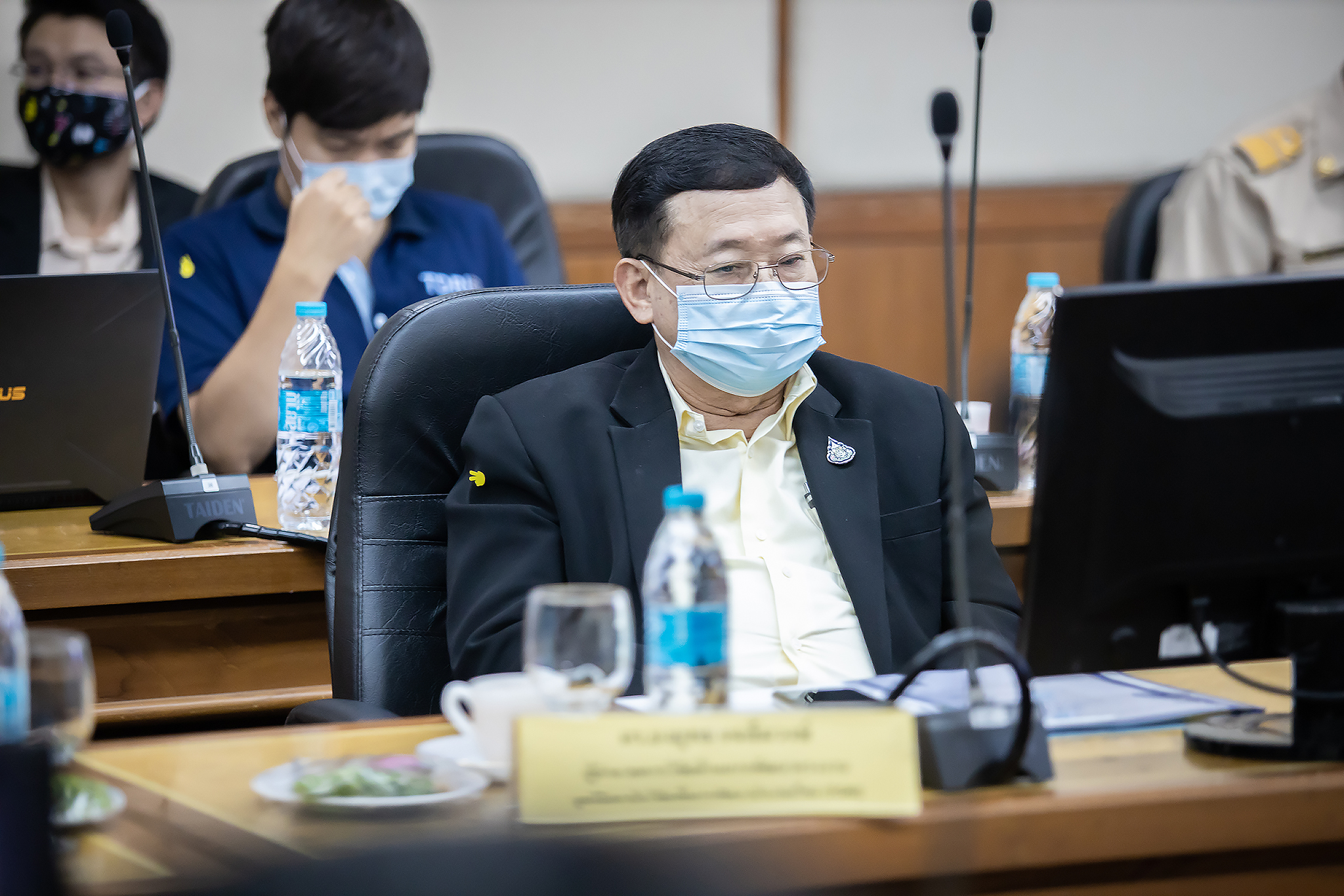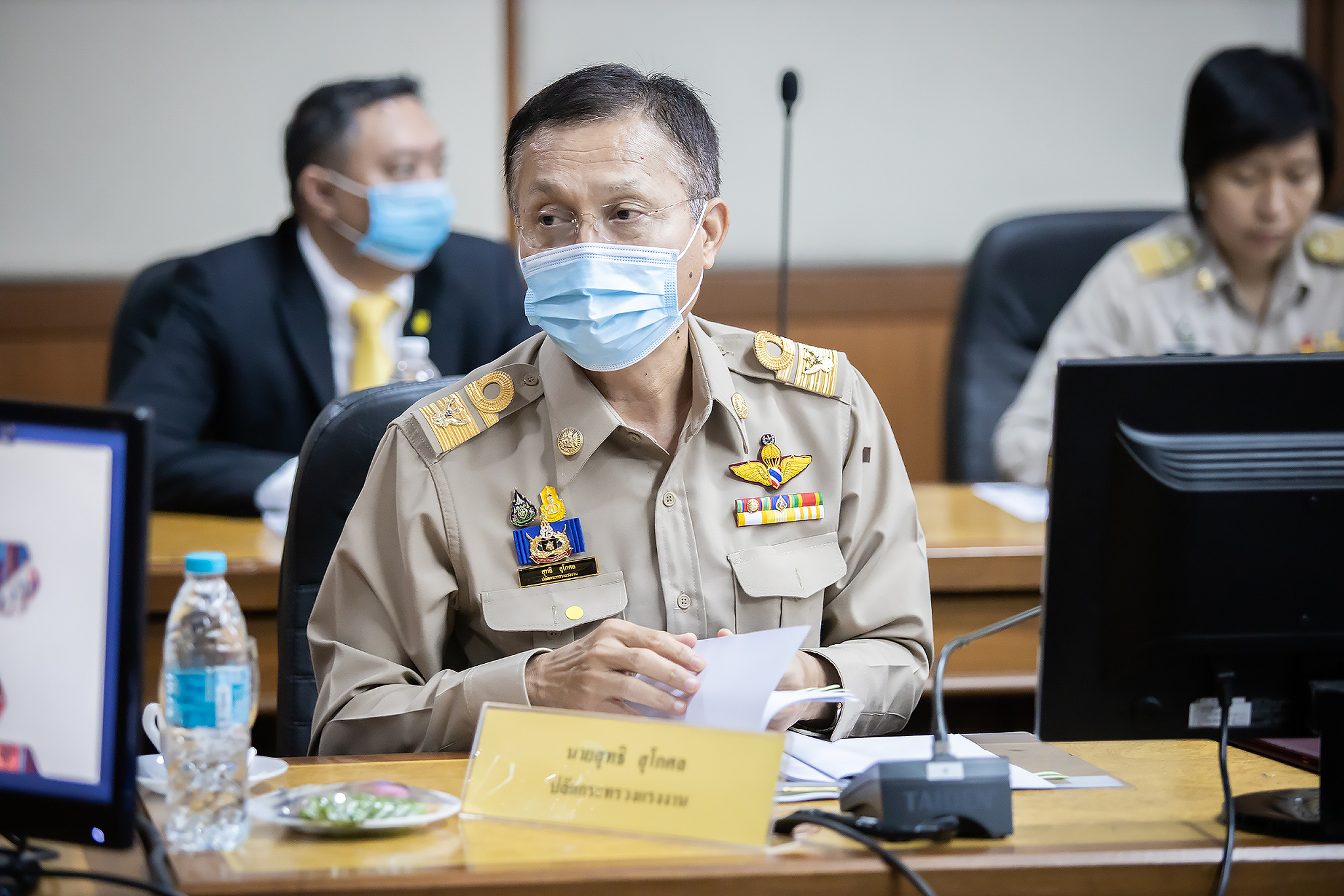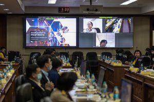 Today (June 29, 2020) at 13.30 hours, Labour Minister M.R. Chatu Mongol Sonakul chaired the first academic seminar under the academic seminar project on developing the efficiency of the labour warning model in 2020. Advisor to the Labour Minister Assoc. Prof. Dr. Jak Punchoopet, Permanent Secretary of Labour Mr. Suthi Sukosol and the Ministry of Labour’s executive committee also joined the seminar at the Prasong Rananant meeting room, 5th floor, Ministry of Labour. In this seminar, there was a discussion on the labour warning model and labor warning system. The seminar presented the labour warning model of the alarm system and brainstormed ideas and suggestions for the development of labour warning models by experts, university professors, researchers and academics from government agencies, and the private sector.