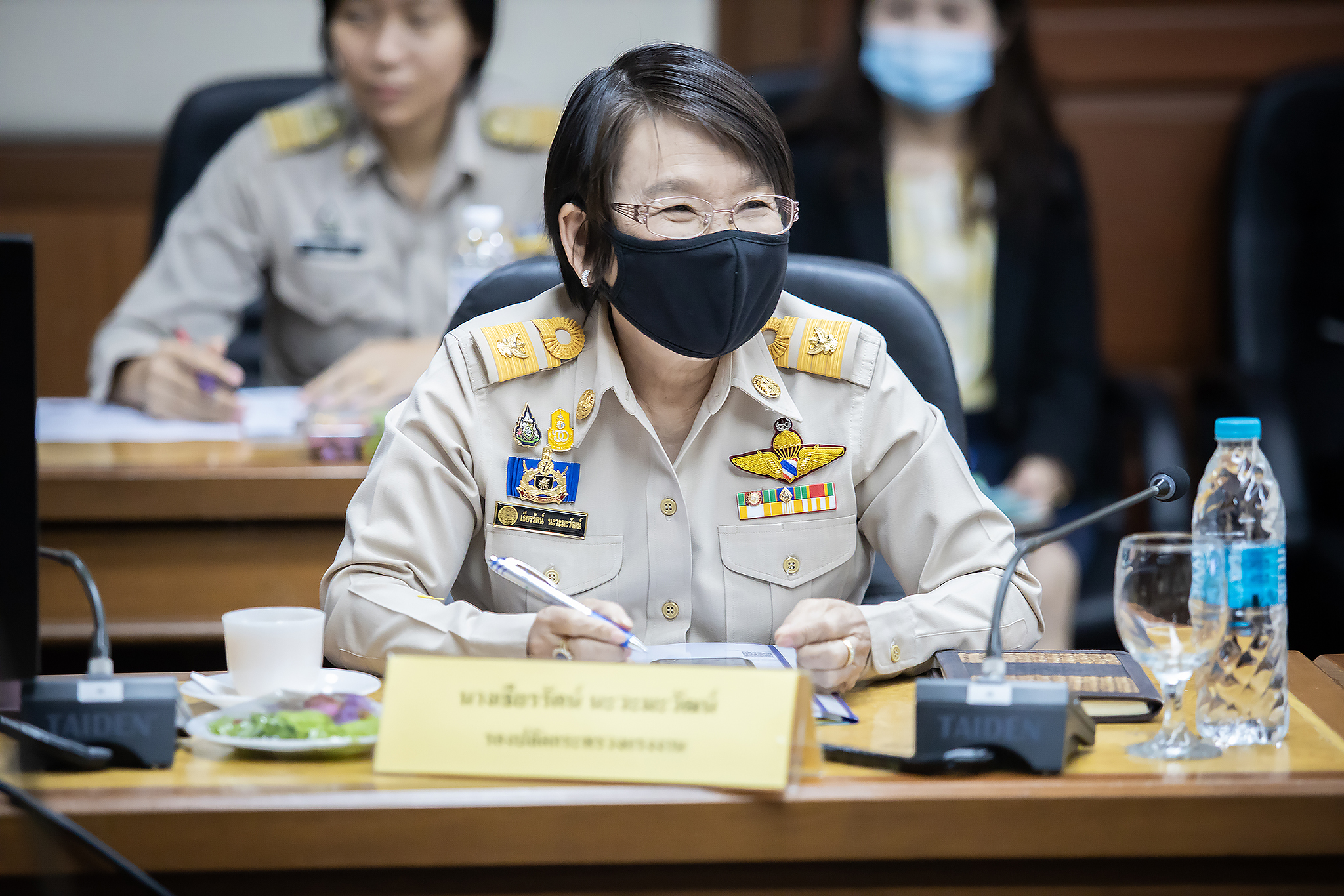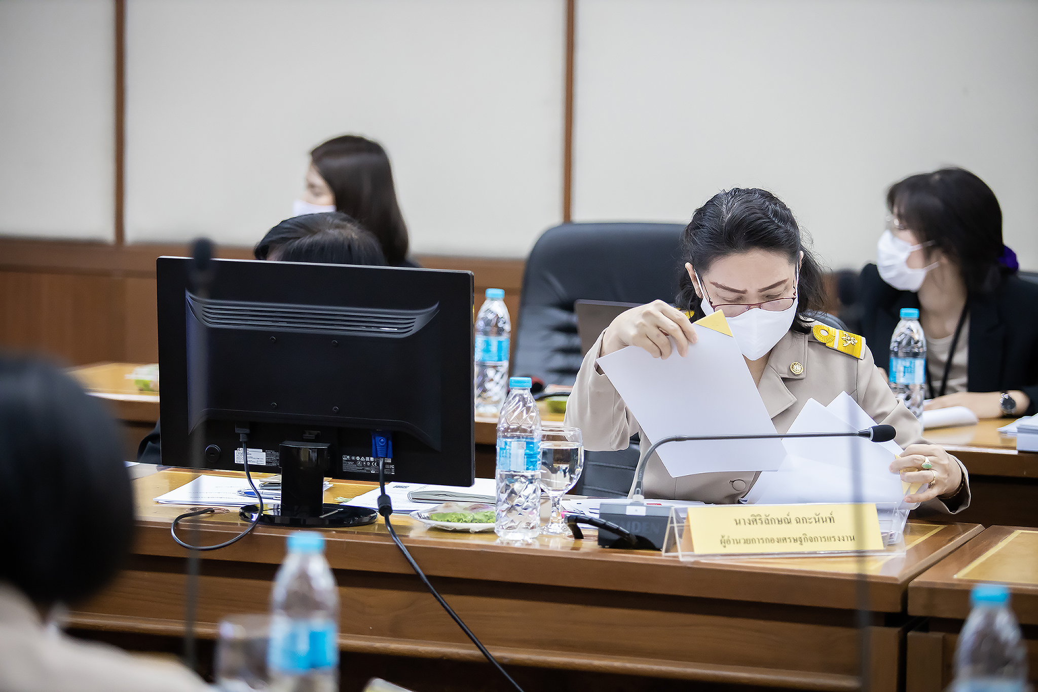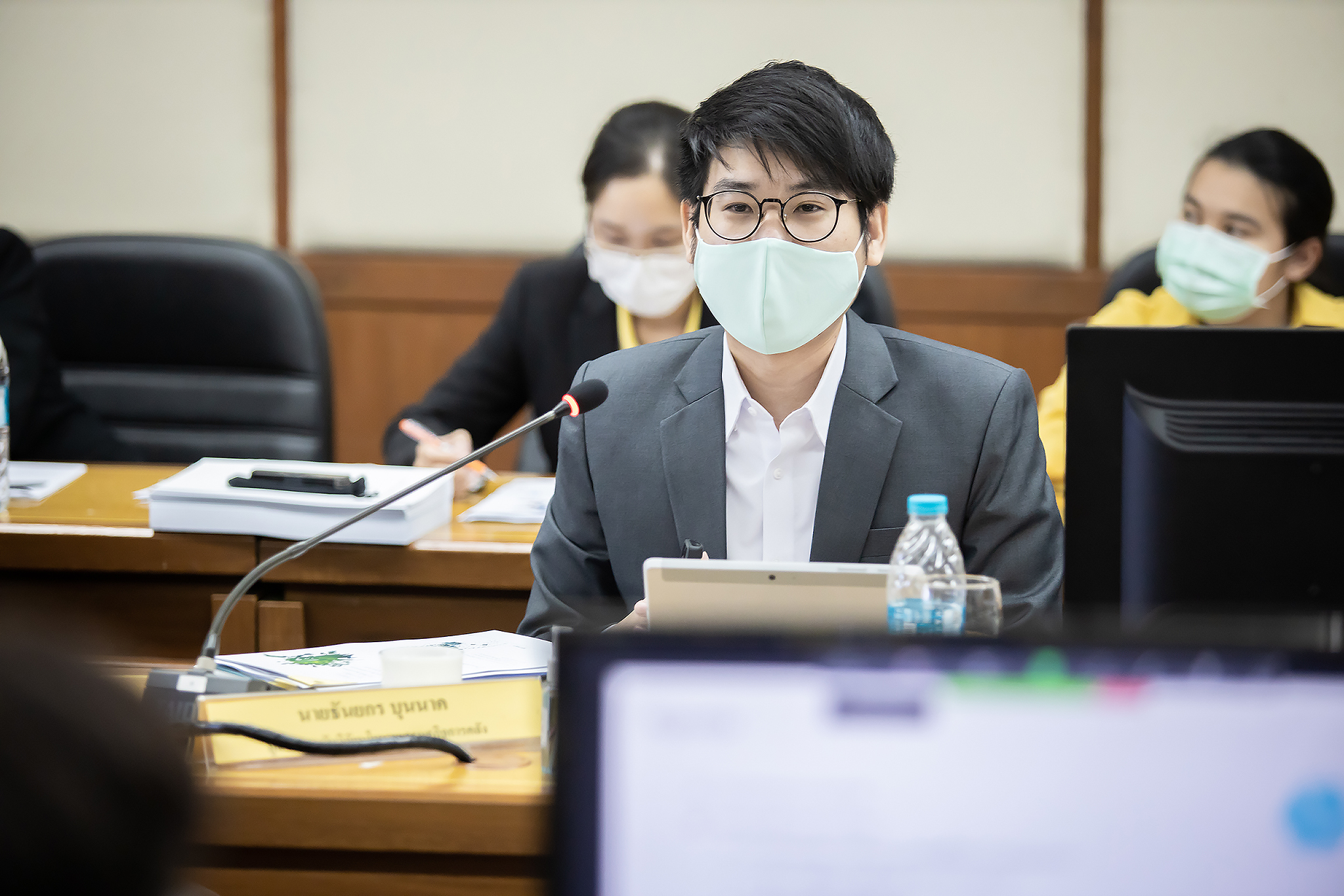 Today (June 29, 2020) at 13.30 hours, Labour Minister M.R. Chatu Mongol Sonakul chaired the first academic seminar under the academic seminar project on developing the efficiency of the labour warning model in 2020. Advisor to the Labour Minister Assoc. Prof. Dr. Jak Punchoopet, Permanent Secretary of Labour Mr. Suthi Sukosol and the Ministry of Labour’s executive committee also joined the seminar at the Prasong Rananant meeting room, 5th floor, Ministry of Labour. In this seminar, there was a discussion on the labour warning model and labor warning system. The seminar presented the labour warning model of the alarm system and brainstormed ideas and suggestions for the development of labour warning models by experts, university professors, researchers and academics from government agencies, and the private sector.