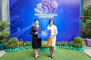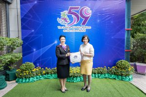 Today (October 20, 2020) at 10.00 hours, Permanent Secretary of Labour Mr. Suthi Sukosol assigned Deputy Permanent Secretary of Labour Mrs. Tongjai Suthat Na Ayutthaya to represent the Ministry of Labour on congratulating the Institute of Public Relations on its 59th anniversary and to donate money to help orphans and AIDs patients, by the Dharmarak Foundation of Wat Phrabatnampu Temple. The occasion took place at the Institute of Public Relations, Soi Aree, Bangkok.