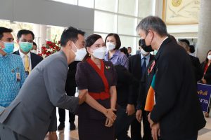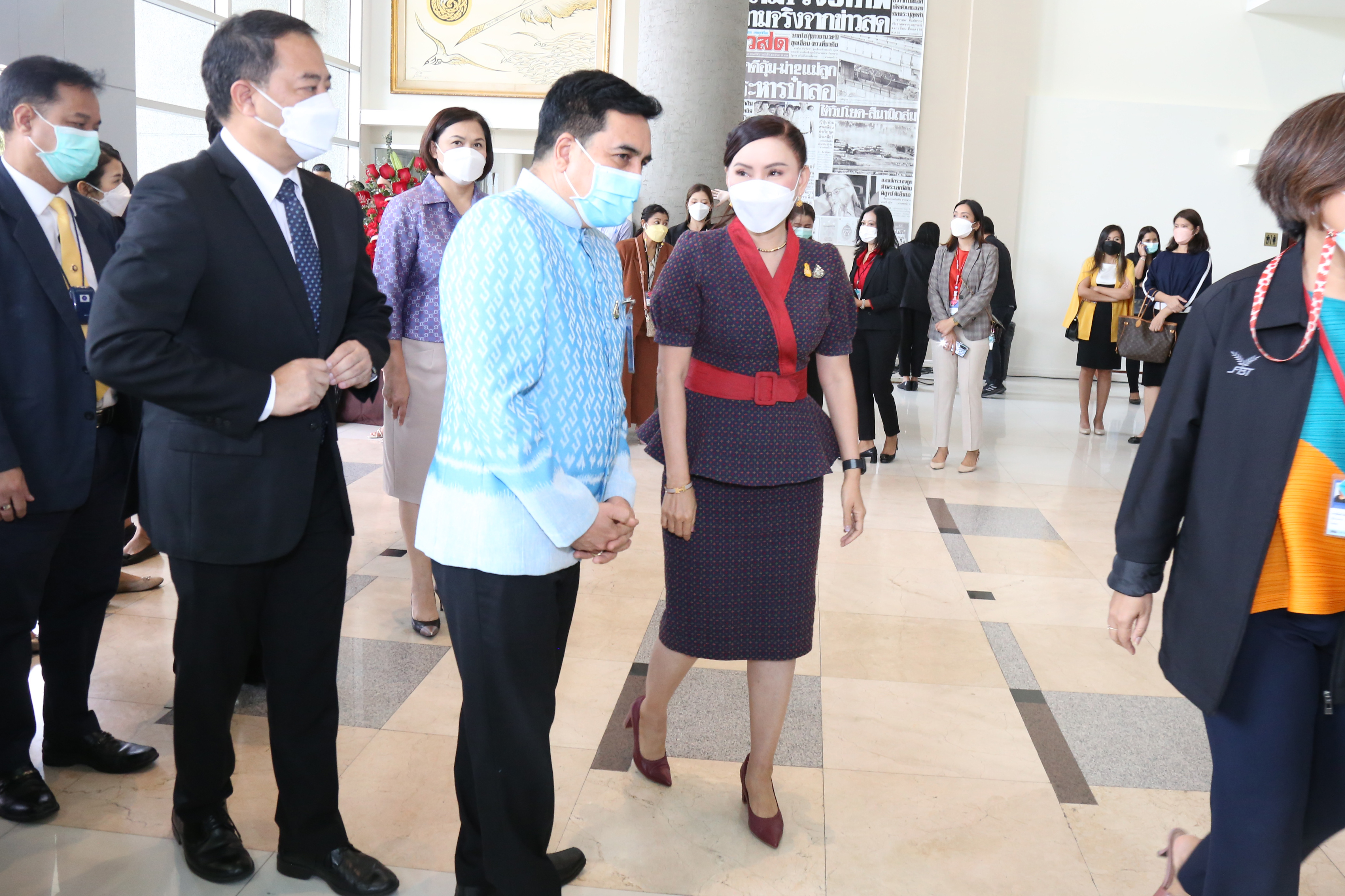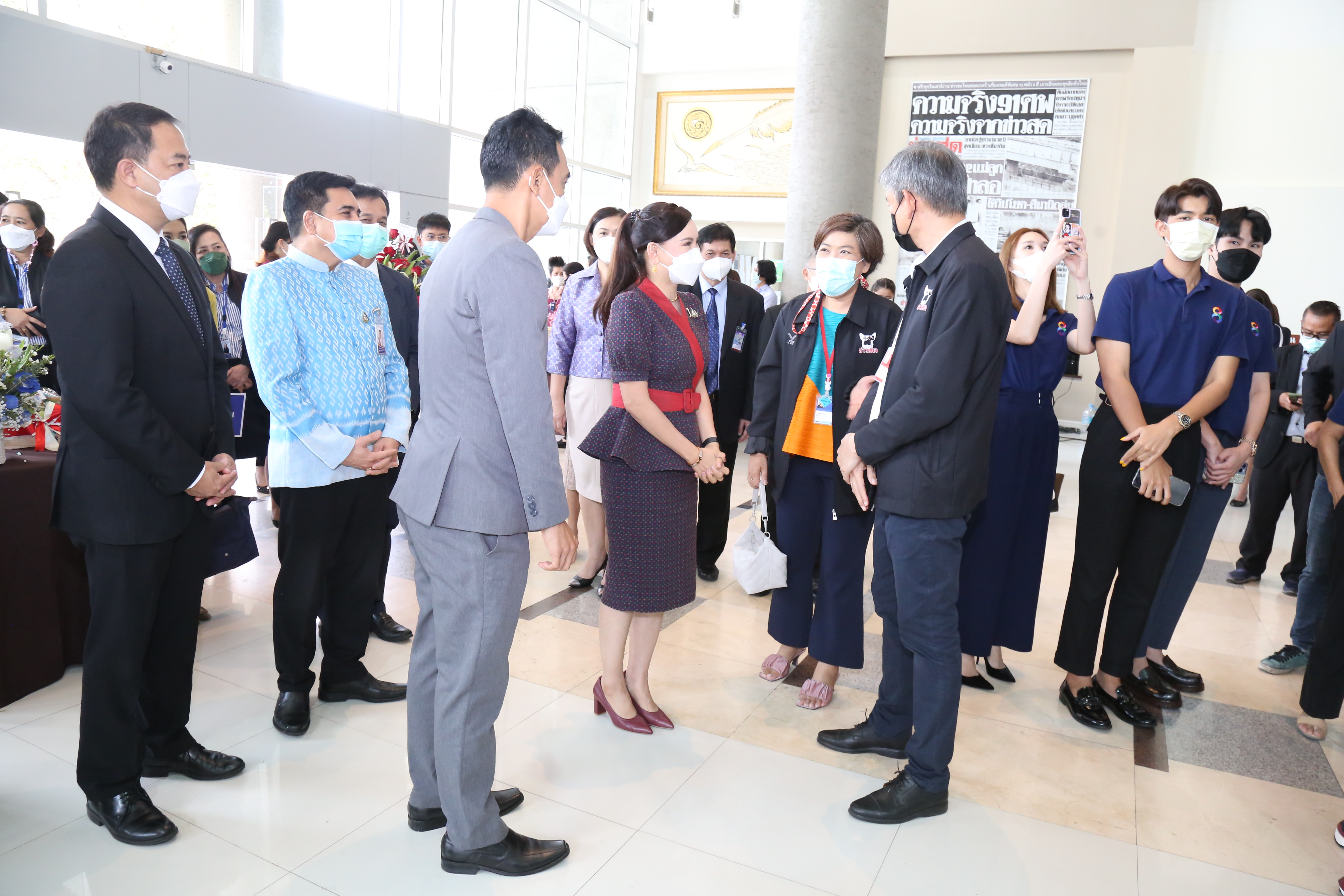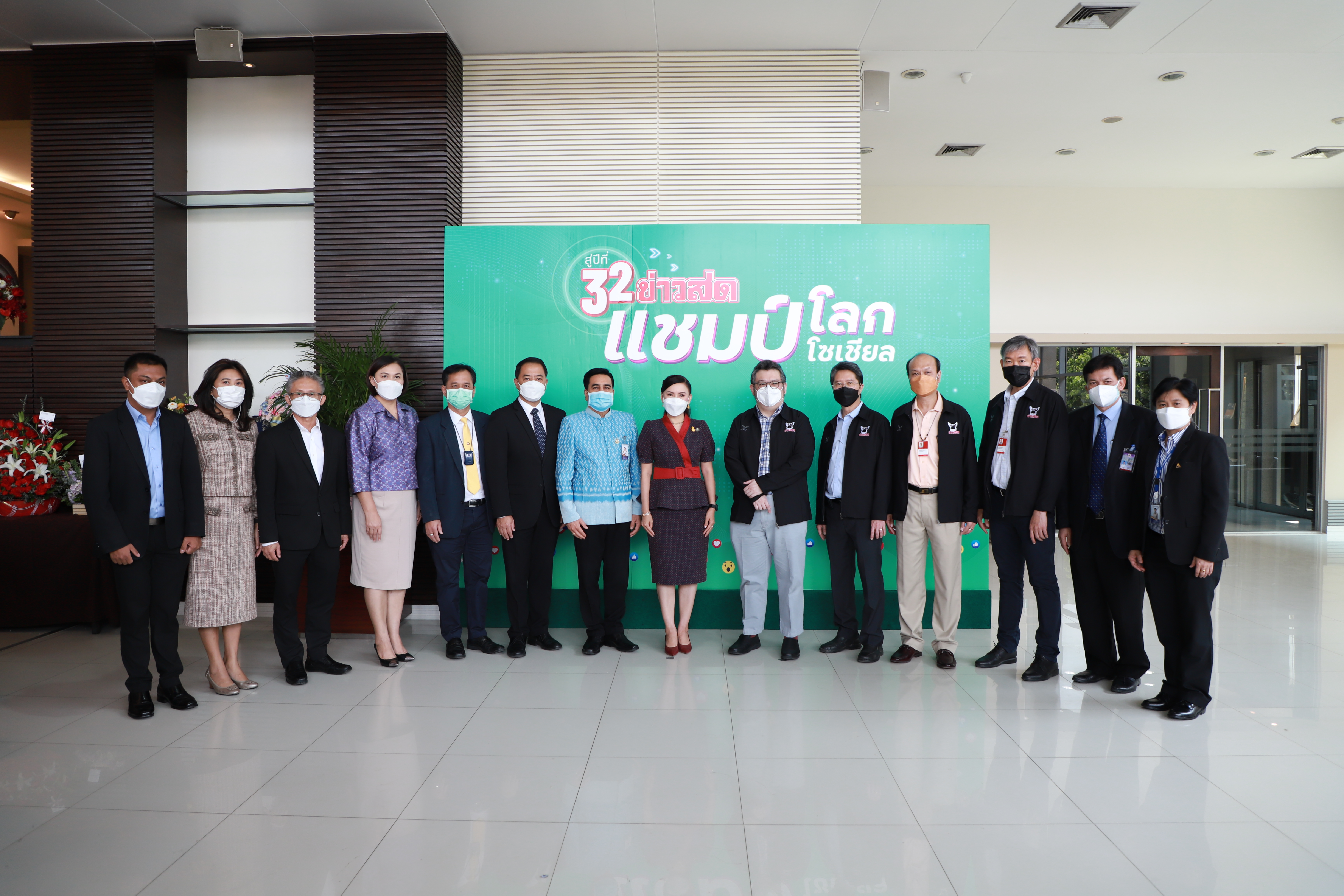 On April 8, 2022, at 11.00 hours, Labour Minister Mr. Suchart Chomklin assigned the Labour Minister’s Advisor, Mrs. Thiwalrat Angkinan, to represent the Ministry of Labour in congratulating Khao Sod Newspaper on its 32nd anniversary. Mr. Suriwong Uapatiphan, Editor of Khao Sod newspaper, and the newspaper’s management joined in receiving flower baskets. Assistant to the Permanent Secretary of Labour, Mr. Samat Pattamasukon, Deputy Secretary-General of the Social Security Office Mr. Nanthachai Panyasurarit, the Department of Employment’s Inspector-General Mr. Sibmuenchai Bothisin, and the Department of Skill Development’s Inspector-General Mrs. Weeraya Rattananit also joined the occasion at the Khao Sod Newspaper Building, Tessaban Nimit Tai Road, Prachaniwet Village 1, Chatuchak District, Bangkok.