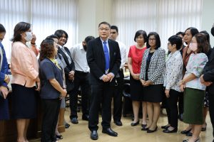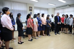 On October 1, 2020, at 11.00 hours, Deputy Permanent Secretary of Labour Mrs. Tongjai Suthat Na Ayutthaya, along with government officials and officials under the Ministry of Labour, met with Legal Advisor Captain Saroj Komkhai to congratulate him upon taking the position of a Legal Advisor. The occasion took place at the Legal Advisory Office, 11th floor, Ministry of Labour.