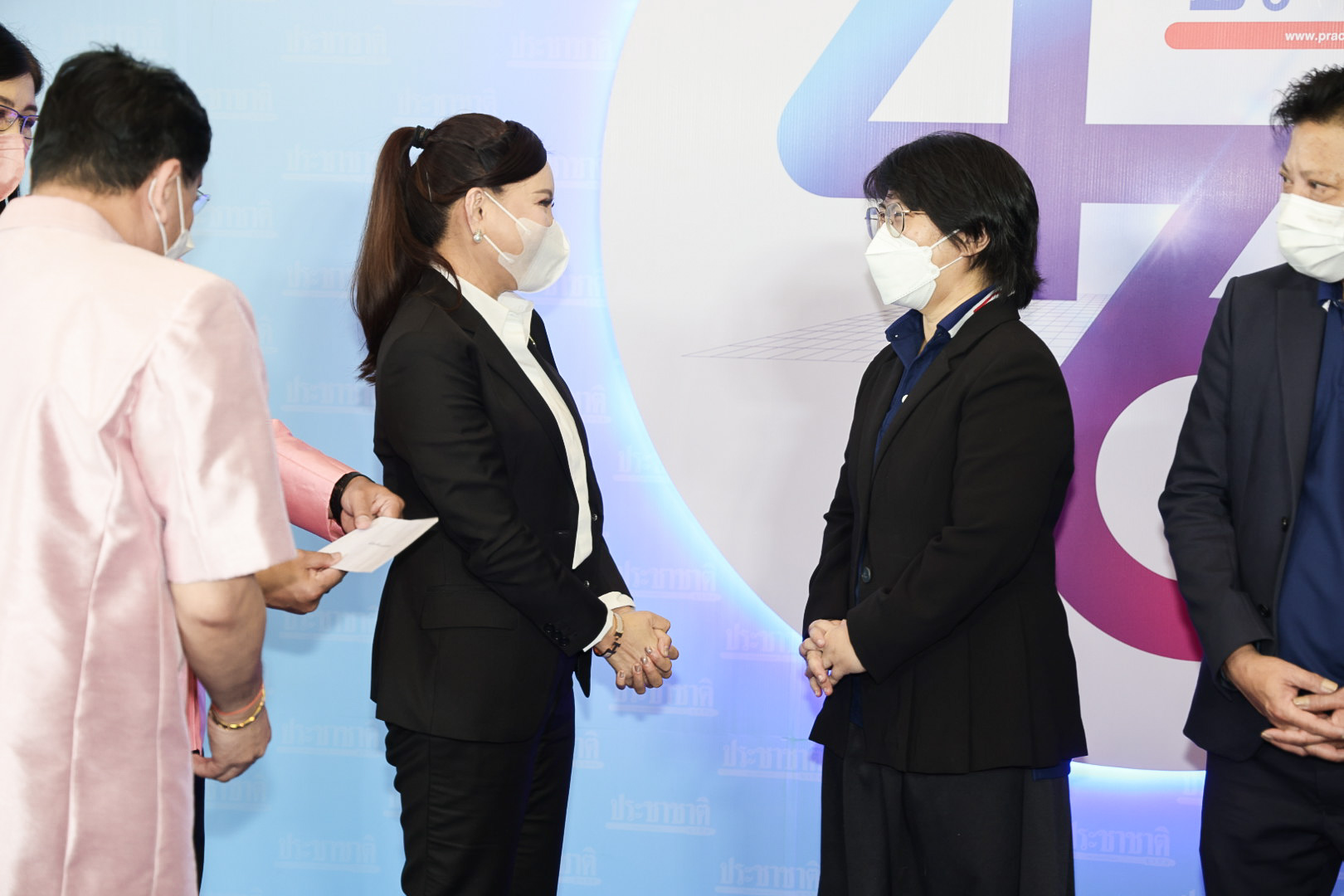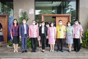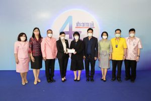 On May 27, 2022, Labour Minister Mr. Suchart Chomklin assigned the Labour Minister’s Advisor, Mrs. Thiwalrat Angkinan, and the Deputy Permanent Secretary of Labour as the Ministry of Labour’s Spokesperson, Mr. Wannarat Srisuksai, department spokespersons and the Ministry of Labour’s executives, joined as representatives in congratulating Prachachat Business newspaper on its 45th anniversary, stepping into its 46th year of operations. Mr. Chumchan Chamniprasat, Editor, and Mr. Santi Jirapanit, Executive Editor, were the recipients of a flower basket on the ground floor of the office building of Matichon Public Company Limited.