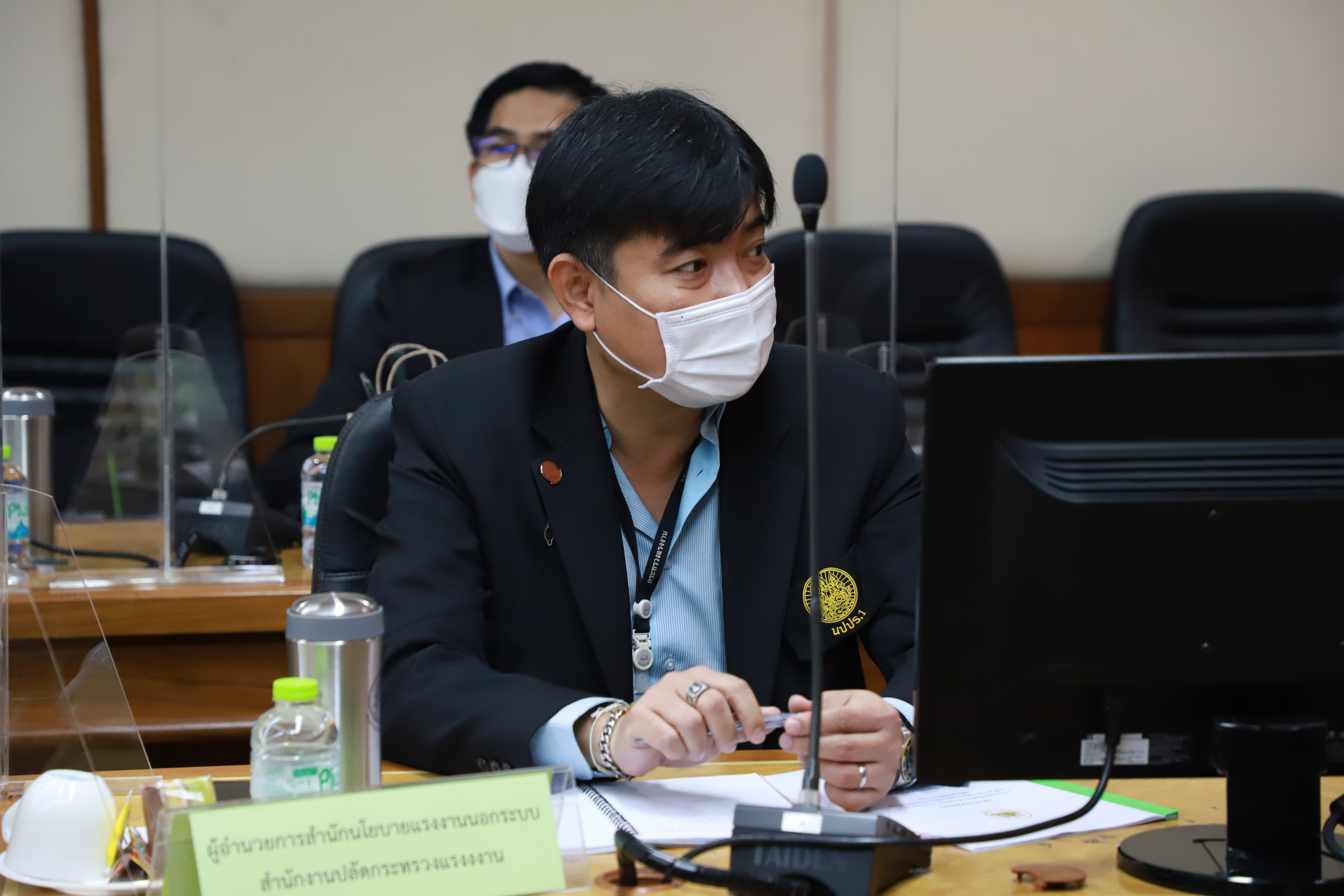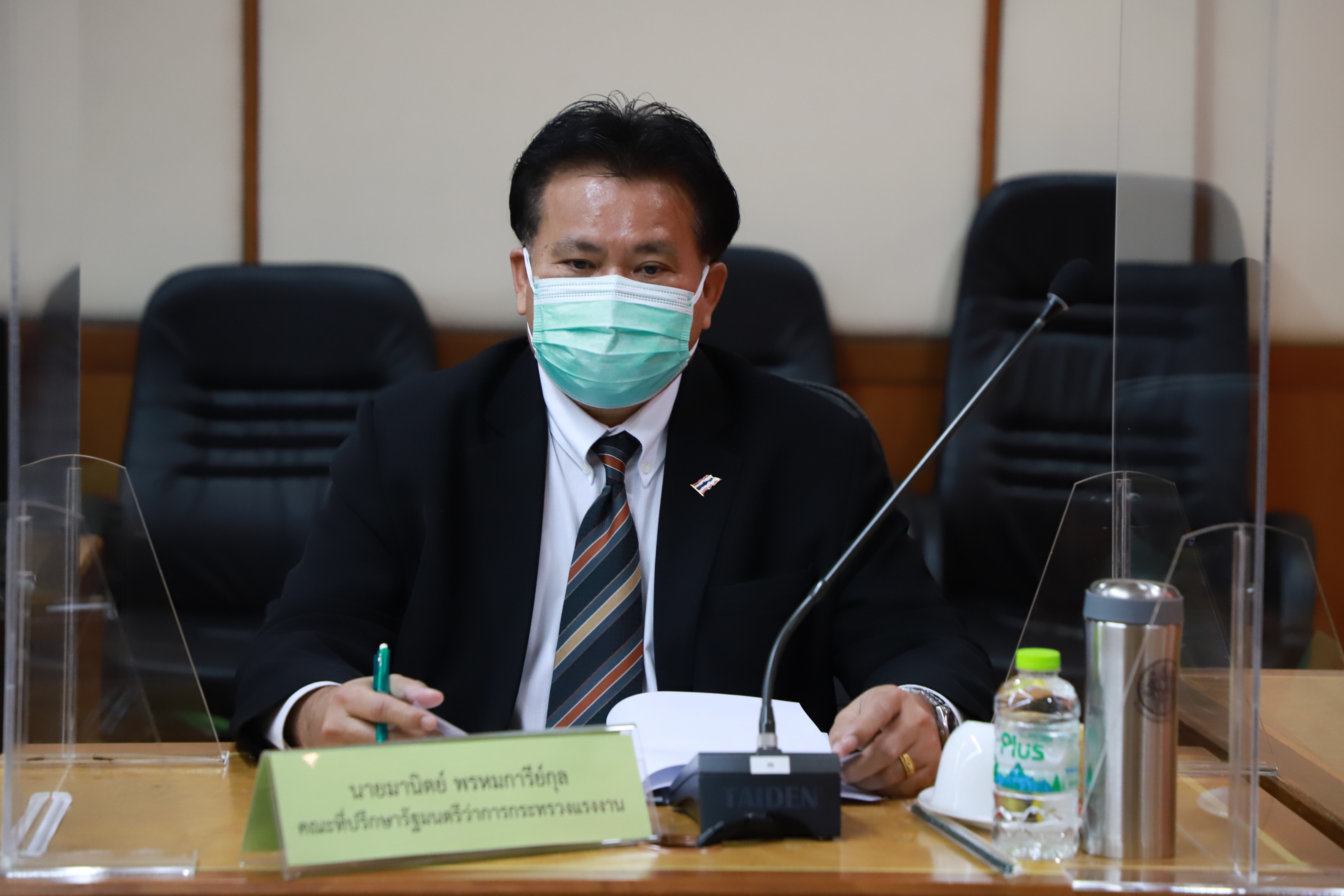 On September 29, 2021, Labour Minister Mr. Suchart Chomklin assigned Advisor to the Labour Minister Dr. Chamlong Chuayrod to chair the meeting to discuss concerns about the draft Royal Decree on the supervision of digital platform services that must provide notification B.E….. Advisory Board Member to the Labour Minister Mr. Manit Promkarikul joined the meeting at the Prasong Rananant Conference Room, 5th floor, Ministry of Labour.