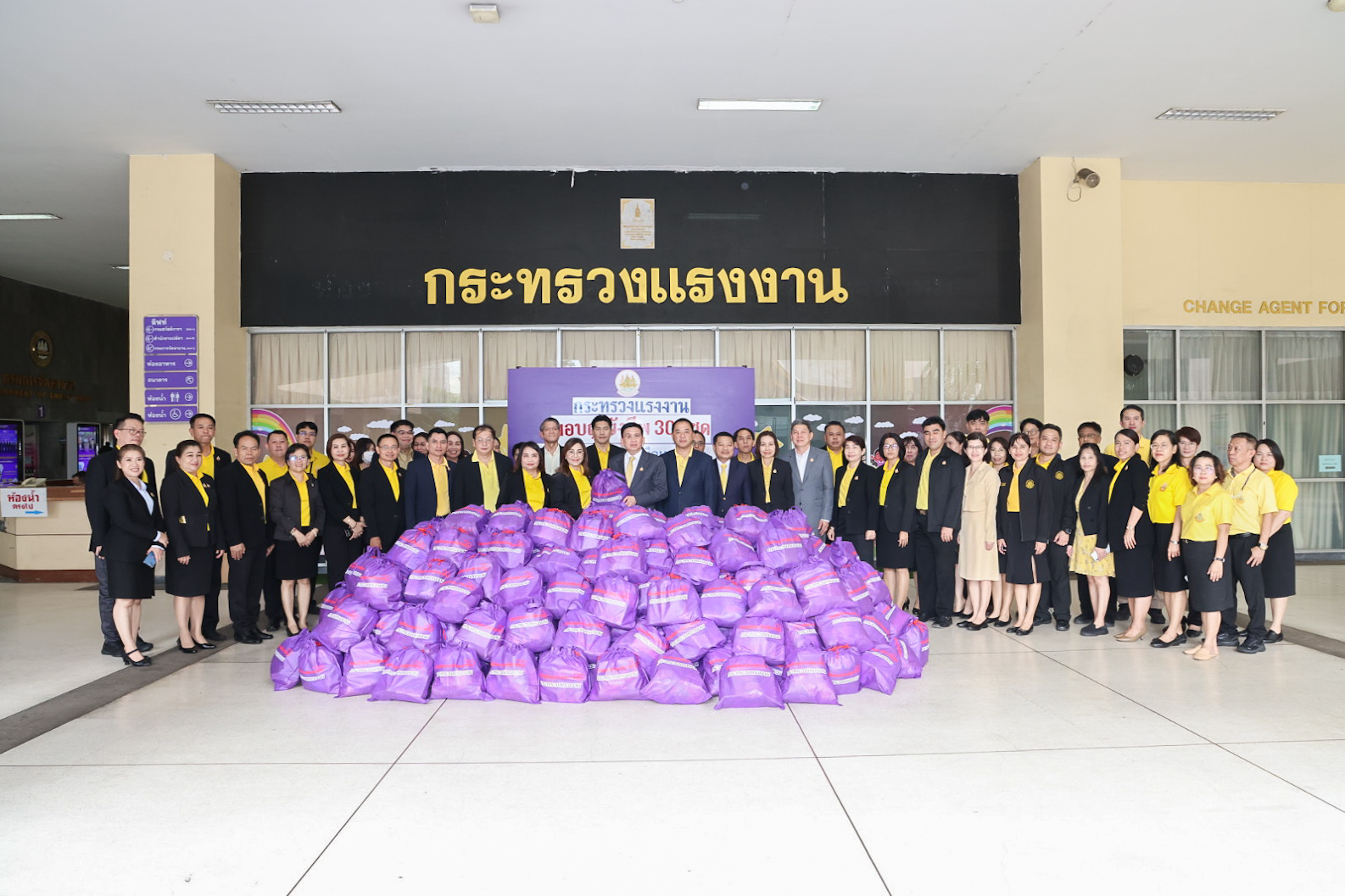 On September 2, 2024, at 16.00 hours, the Permanent Secretary of Labour, Mr. Pairoj Chotikasathien, chaired the handover of 300 relief bags to the Department of Skill Development’s Director-General, Ms. Bubpha Rueangsud, to forward the generosity to distribute relief supplies to the people affected by the floods. The Ministry of Labour’s Inspector-Generals, Mr. Samat Pattamasukon, Mr. Somphon Kwangkaew, Mrs. Marasri Jairangsi, and Assistants to the Permanent Secretary of Labour, Ms. Kornjirat Phongchansathorn and Sakdinart Sonthisakyotin joined the event at the lobby on the 1st floor of the Ministry of Labour.