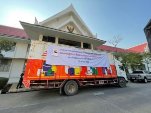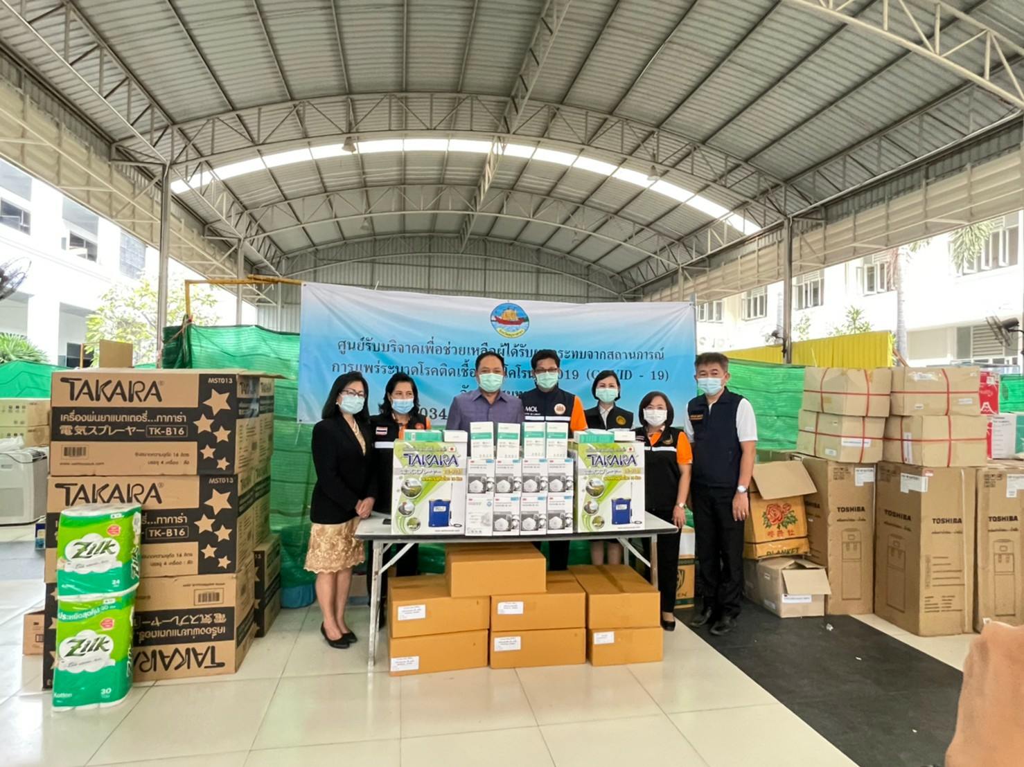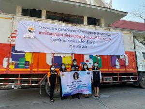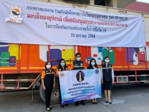The supplies and equipment included 70 sets of sprayers, 600 barrels of KEEEN Germ Killer, natural formula for virus disinfection, 1,120 pieces of N95 masks, 80 thermometers, 600 boxes of surgical masks, 600 boxes, 200 pairs of shoe cover, 200 pairs, 100 boxes of rubber gloves, and 694 sets of PPE kits, for a total value of 1,096,360 Baht. The supplies and equipment will be delivered to Samut Sakhon to continue supporting the work in preventing the spread of Covid-19.