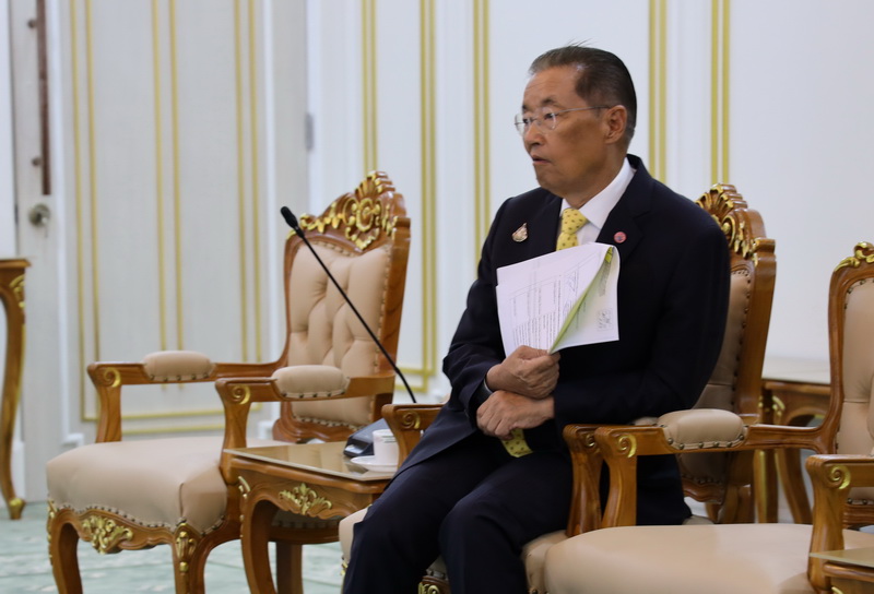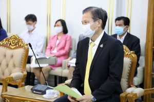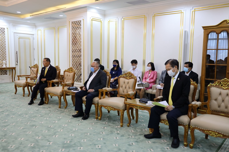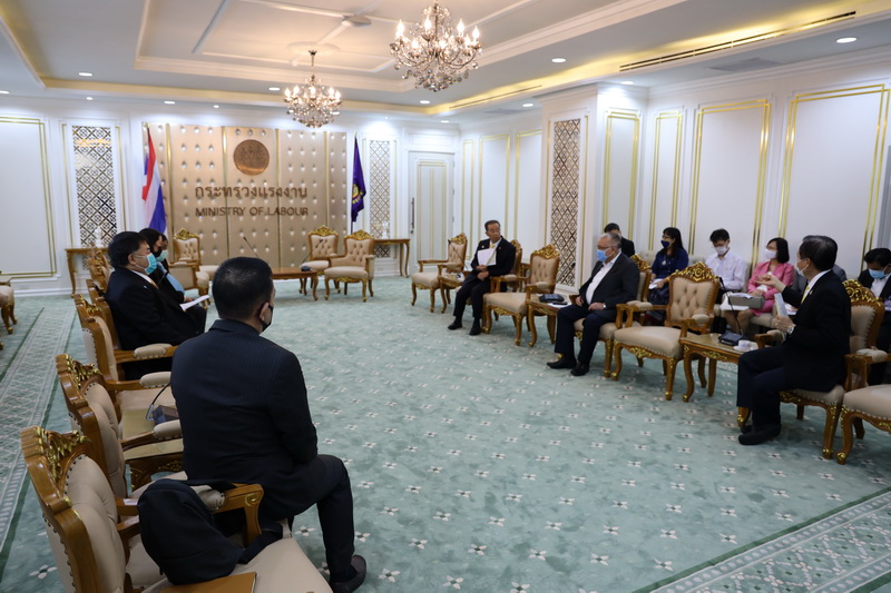 On April 10, 2020, at 14.30 hours, Labour Minister M.R. Chatu Mongol Sonakul, together with Secretariat to the Labour Minister Lt. Gen. Nanthadet Meksawat and Permanent Secretary of Labour Mr. Suthi Sukosol welcomed representatives from the Thai Contractors Association under royal patronage, to discuss measures to help construction operators affected by the Covid-19 pandemic, especially on the shortage of personnel and construction workers who have gradually returned to their homes. This has had a direct impact on the contract service and the delays in project management. The meeting took place at the Chatumongol meeting room, 6th floor, Ministry of Labour building.