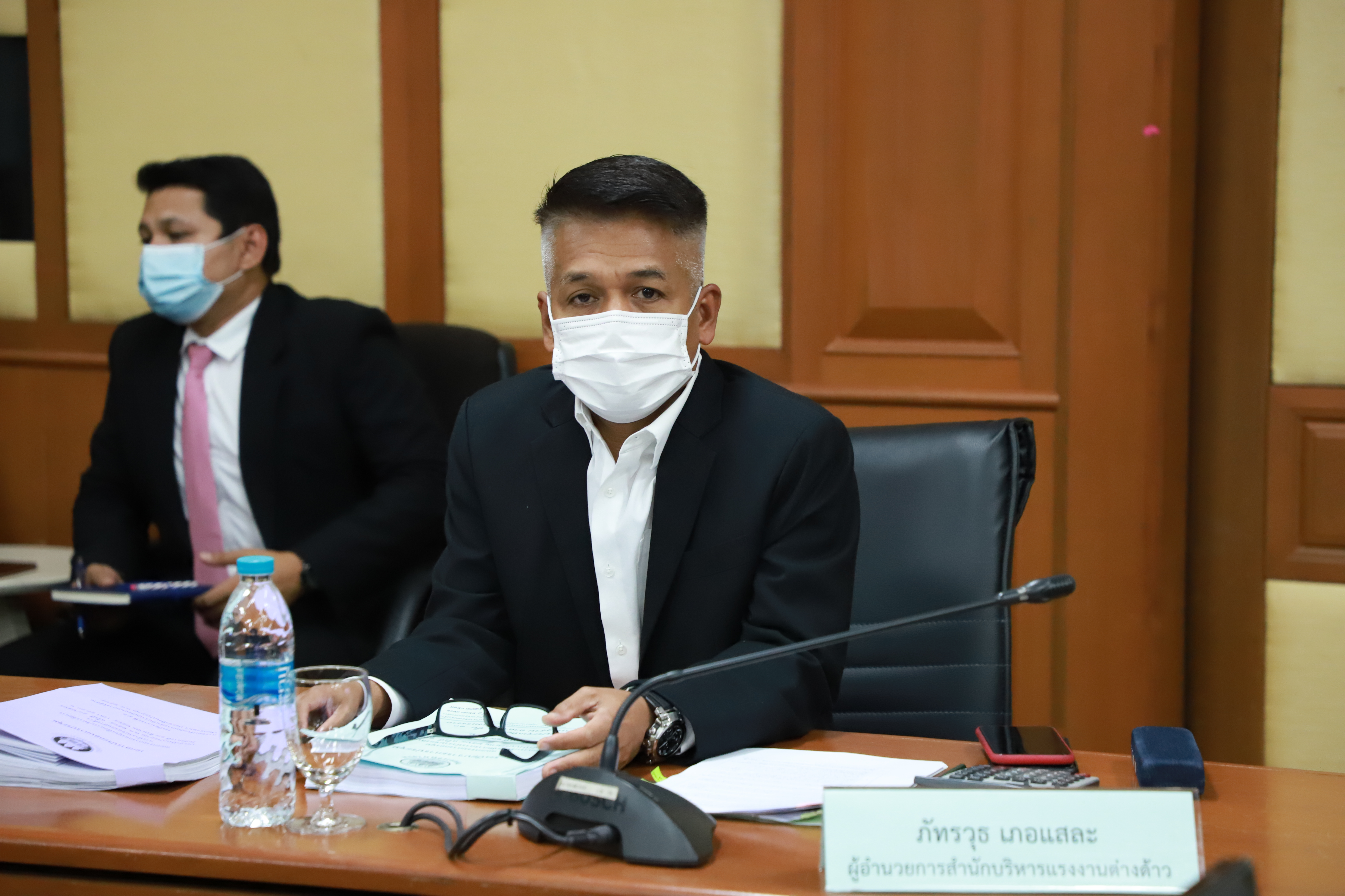 On August 17, 2021, at 13.30 hours, Permanent Secretary of Labour Mr. Suthi Sukosol chaired the Foreign Workers Management Fund Committee Meeting No. 10/2021 at the Tien Achakul Conference Room, 10th floor, Department of Employment. The meeting discussed the following: 1) The project to assist foreigners in food (phase 2). 2) The request for an extension of the disbursement period of the fund for the 2021 fiscal year and the project to hire a consultant to study private contractors to produce work permits and provide services for obtaining work permits for foreigners (Outsourcing Service). 3) The request to adjust the operational plans and plans for spending money from the fund for the 2021 fiscal year. 4) The assignment of the Working Capital Management Committee to attend the meeting to discuss the draft indicators for assessing the performance of working capital for the 2022 fiscal year, and 5) To seek approval for the draft order of the Foreign Workers Management Fund Committee.