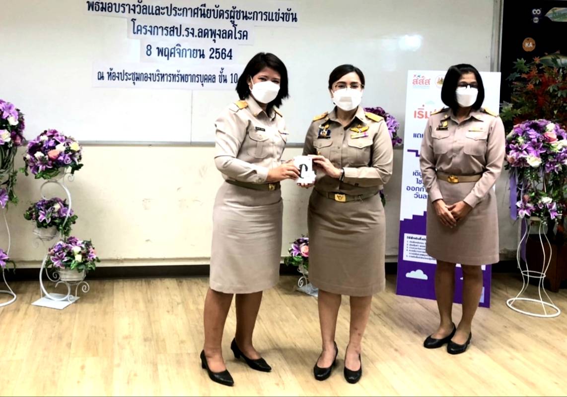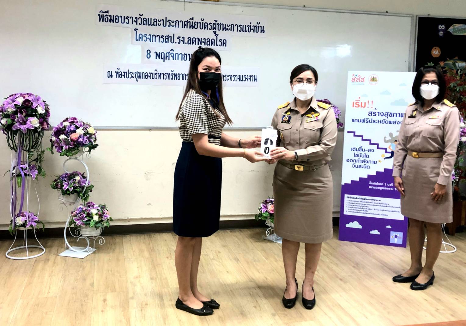 On November 8, 2021, at 13.00 hours, Deputy Permanent Secretary of Labour Ms. Bubpha Rueangsud presided over the award and certificate ceremony of the competition winners in the Office of the Permanent Secretary of Labour competition project to “reduce bellies to reduce diseases.” The occasion took place via VDO Conference on the Zoom Cloud Meeting system. The ceremony gave out four awards for overall health, three for group fitness diligence, and five for individual fitness diligence. The occasion occurred at the Human Resources Management Division’s meeting room, 10th floor, Ministry of Labour.