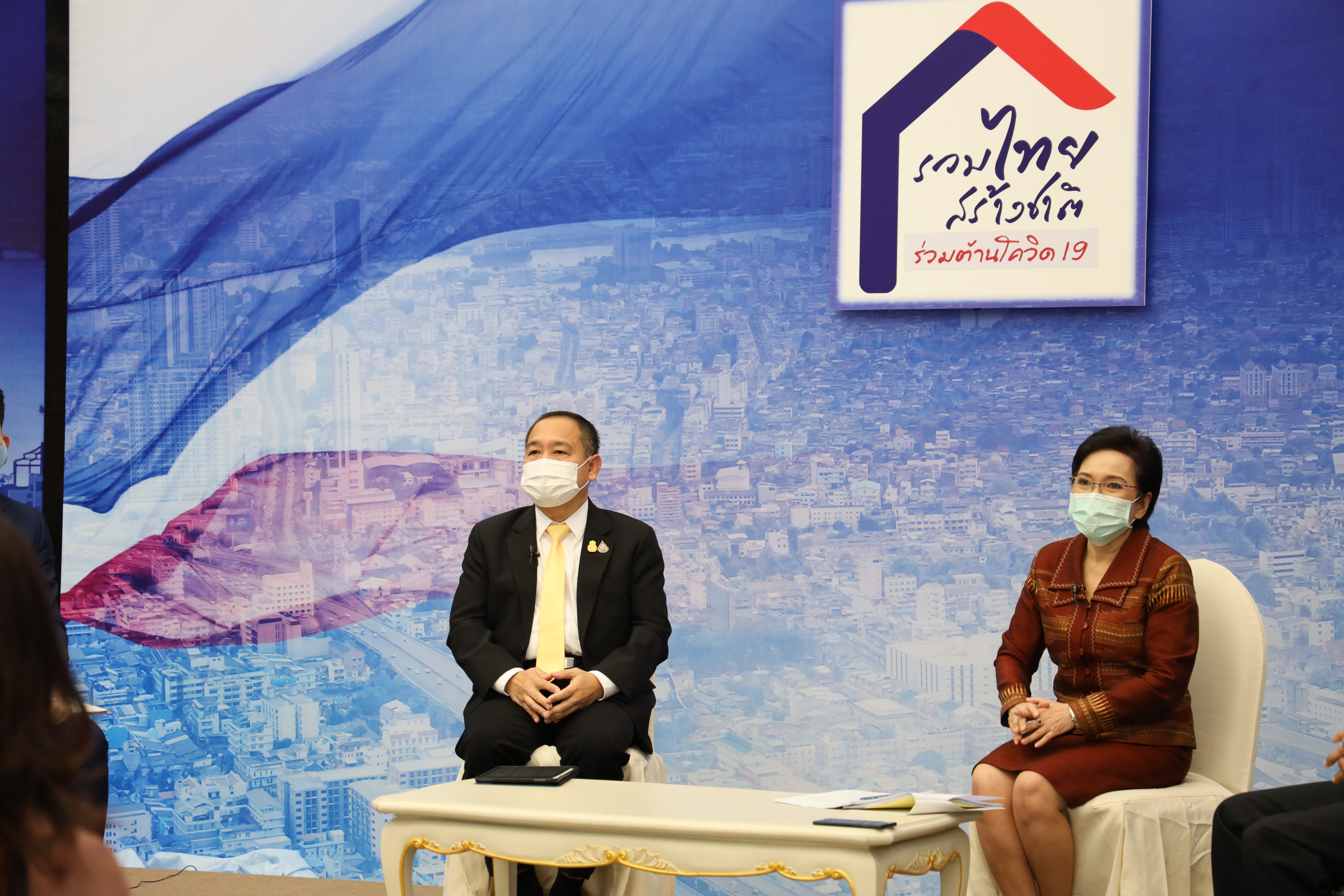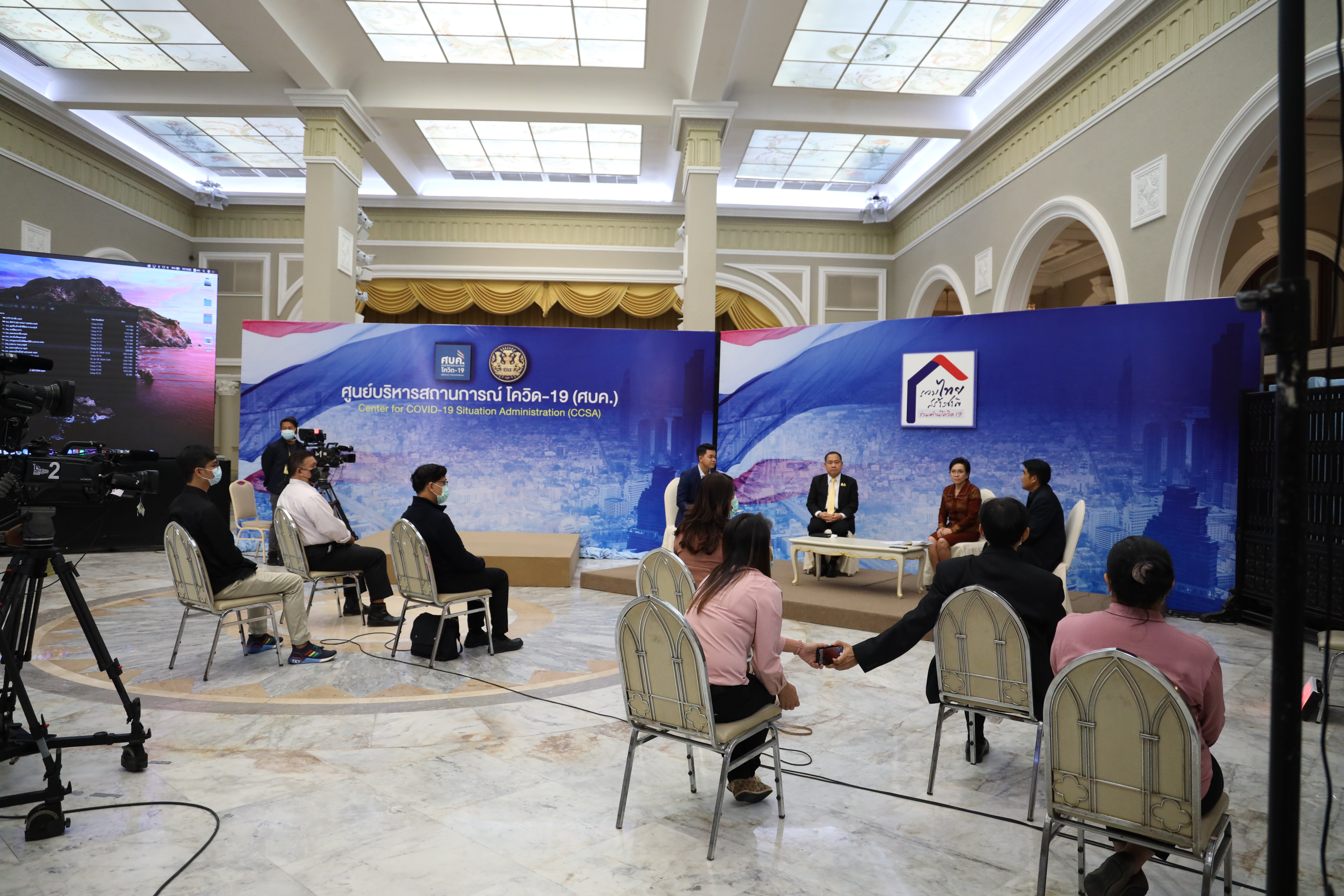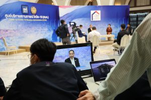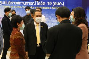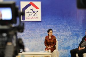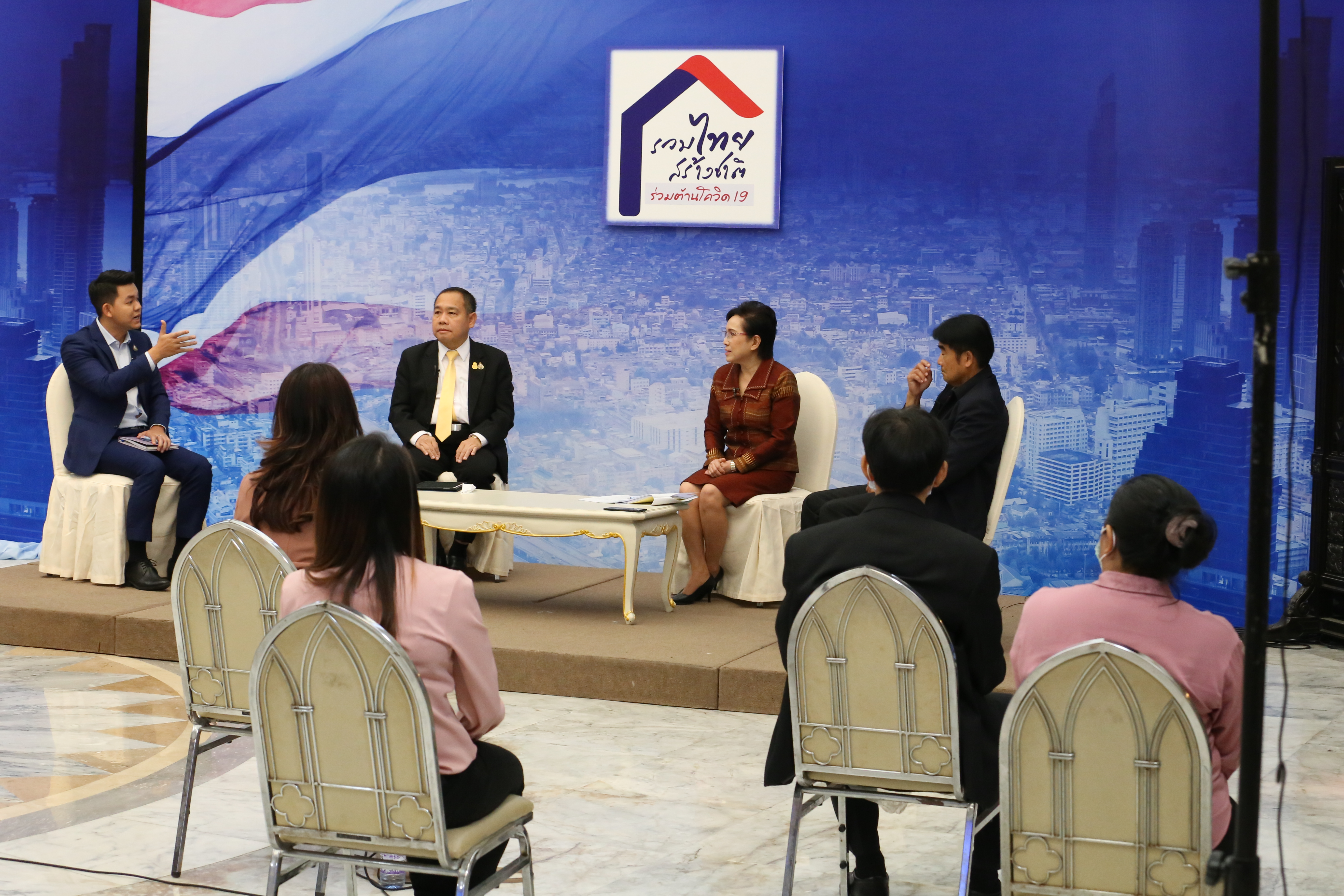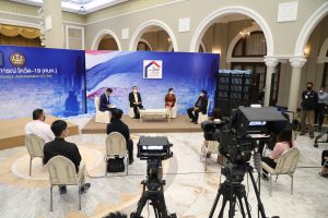 On February 5, 2021, at 14.00 hours, Labour Minister Mr. Suchart Chomklin assigned the Ministry of Labour’s Inspector-General Mr. Prateep Songlamyong as the Ministry of Labour’s spokesperson and Deputy Secretary-General of the Social Security Office Mrs. Buppha Phanpeng, to give a live interview on measures to support workers affected by Covid-19. The interview was broadcasted on NBT’s program to fight Covid-19, at the Thai Television Broadcasting Station NBT2HD, at the Government Houses.
