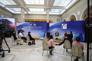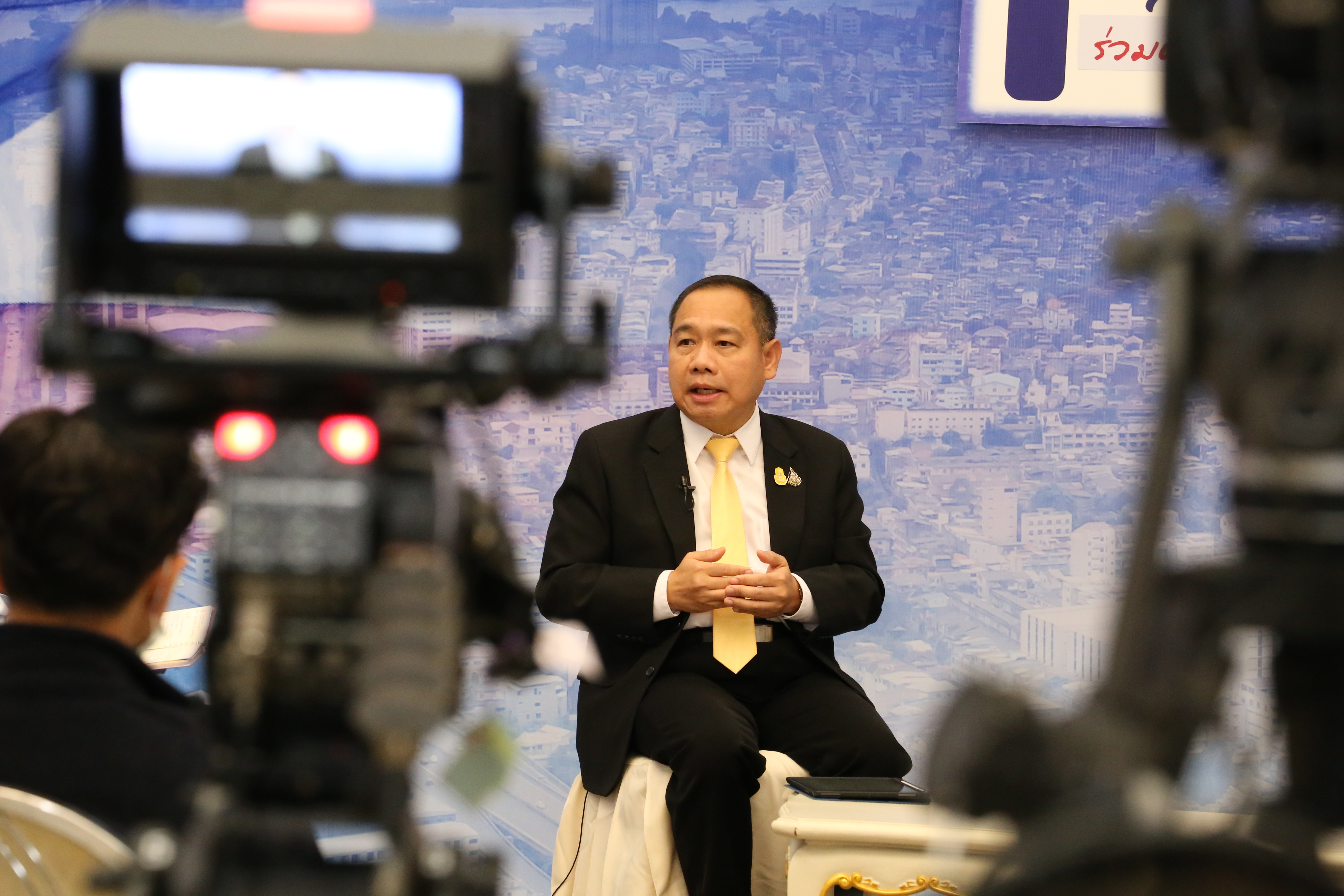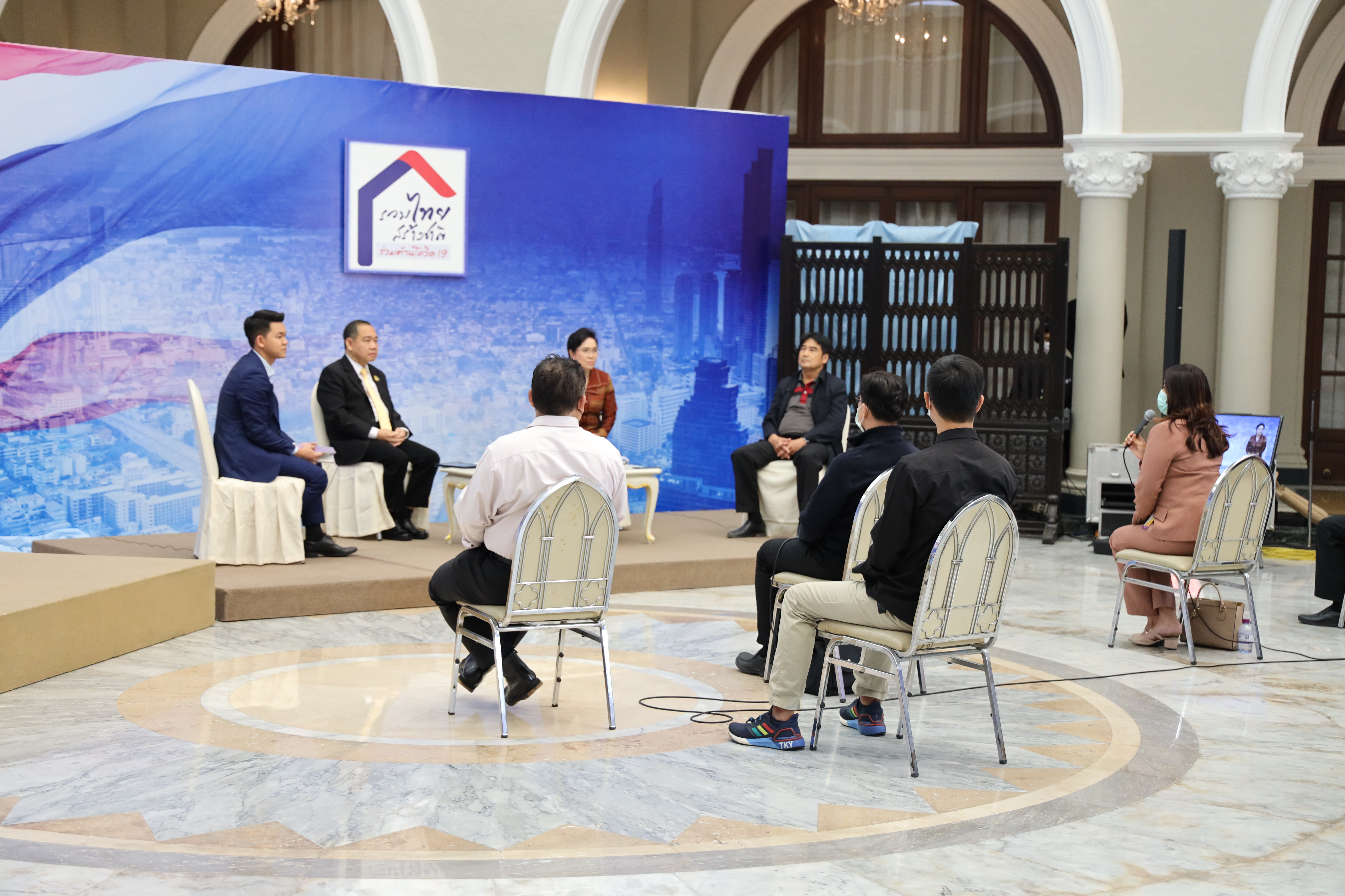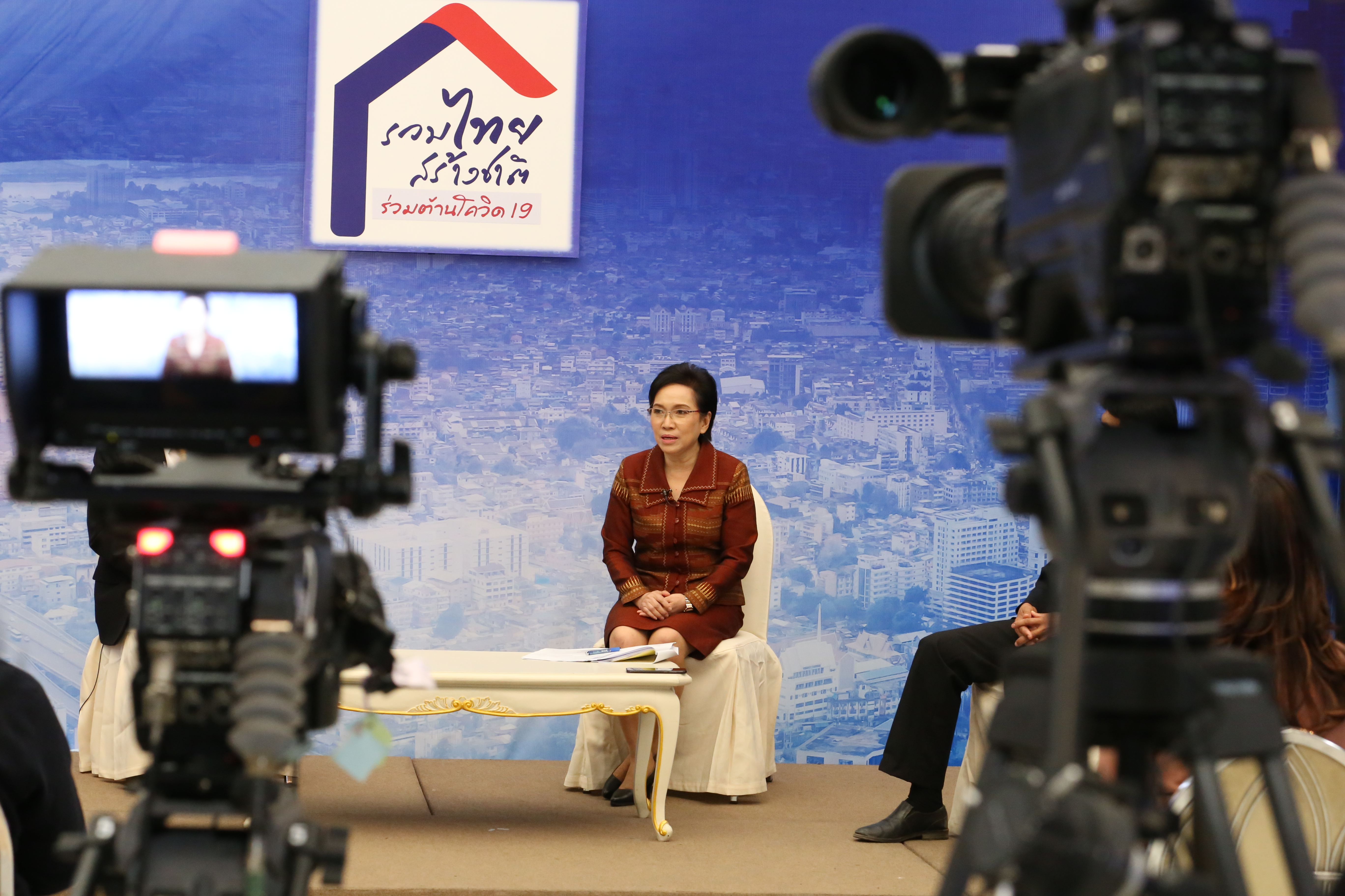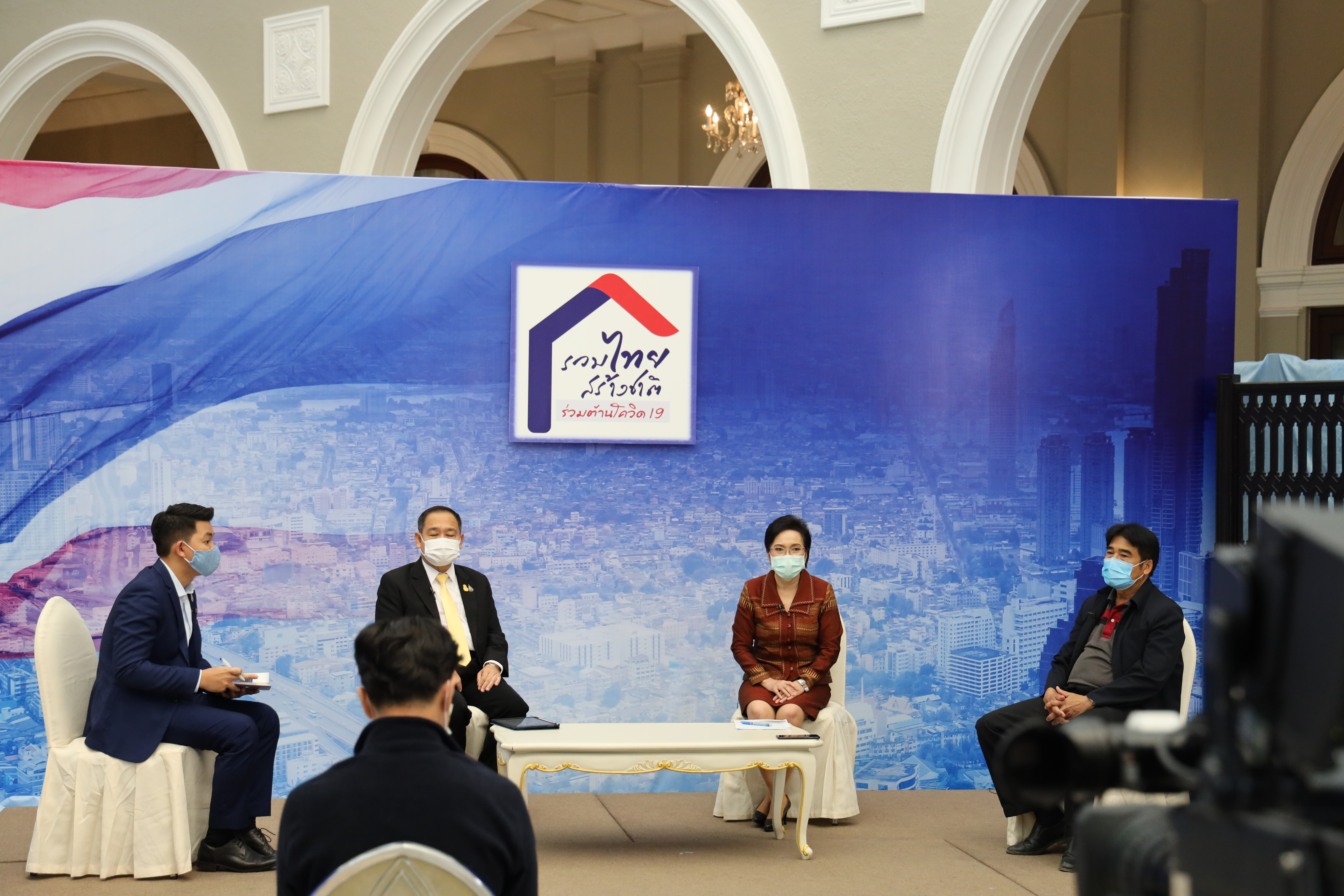 On February 5, 2021, at 14.00 hours, Labour Minister Mr. Suchart Chomklin assigned the Ministry of Labour’s Inspector-General Mr. Prateep Songlamyong as the Ministry of Labour’s spokesperson and Deputy Secretary-General of the Social Security Office Mrs. Buppha Phanpeng, to give a live interview on measures to support workers affected by Covid-19. The interview was broadcasted on NBT’s program to fight Covid-19, at the Thai Television Broadcasting Station NBT2HD, at the Government Houses.