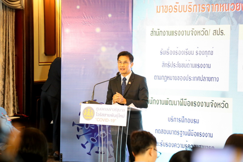 The Advisor to the Labour Minister gave a press statement on countermeasures for Thai workers returning from affected areas of COVID-19; after 14 days of quarantine, all Thai workers will receive care, prevention, and remedy, reducing the impact according to the procedures and missions of the Ministry of Labour.