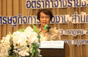 On July 13, 2020, at 09.00 hours, Permanent Secretary of Labour Mr. Suthi Sukosol assigned Assistant to the Permanent Secretary of Labour Ms. Pattraporn Samatrat presided over the opening of the public hearing seminar to listen to opinions about the hourly wage determination. The occasion took place at the Baiyoke Sky Hotel, Bangkok. The event had the objective to allow participants to learn and understand the wage development in Thailand compared to other countries, the impact of various situations that affect current employment and work, to change the concept of determining hourly wage rates for Thailand and to brainstorm suggestions from relevant parties regarding the determination of hourly wage rates.