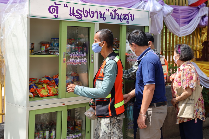 On June 5, 2020, at 10.30 hours, Deputy Permanent Secretary of Labour Theanrat Nawamawat as president of the Ministry of Labour’s Housewife Association and the association’s board, jointly fill in the community pantry consisting of consumer goods and daily necessities of dry food such as canned fish, instant noodles and drinking water for example. The community pantries aim to encourage and alleviate the suffering for people to overcome the COVID-19 virus crisis at Gate 1, the Ministry of Labour.