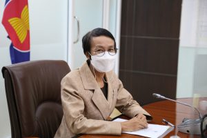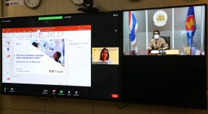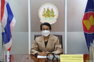 On September 6, 2021, at 12.30 hours, Assistant to the Permanent Secretary of Labour, Ms. Pattraporn Samantarat, as the head of the delegation, participated in the 14th ASEAN Forum on Migrant Workers (AFML) via teleconference at the Saengsingkaew Conference Room, 5th Floor, Ministry Labour. Representatives from the Department of Employment, Department of Skill Development, Department of Labour Protection and Welfare, and the Social Security Office also attended the meeting via teleconference.