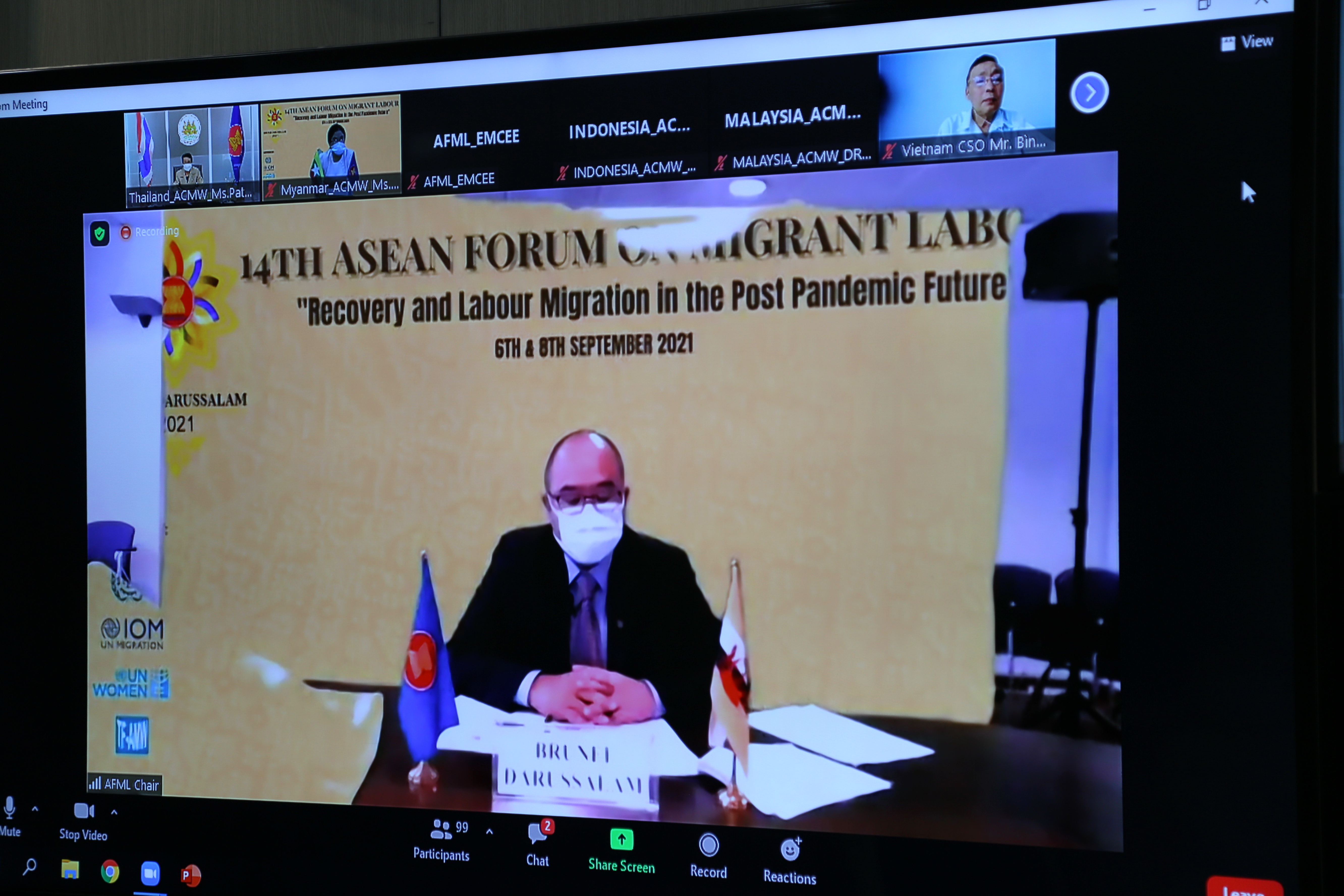The 14th AFML was organized by Brunei Darussalam and attended by government representatives, the private sector, employers and employees from the 10 ASEAN member countries, and the International Labour Organization. The forum considered the progress following the recommendation from the 13th AFML session and jointly developed recommendations for the 14th AFML session, the theme of which was “Recovery and labour migration in the post-pandemic future,” covering two subthemes. The first subtheme was the protection of migrant workers during the COVID-19 pandemic – the current situation and subtheme two was the recovery and the post-pandemic future.