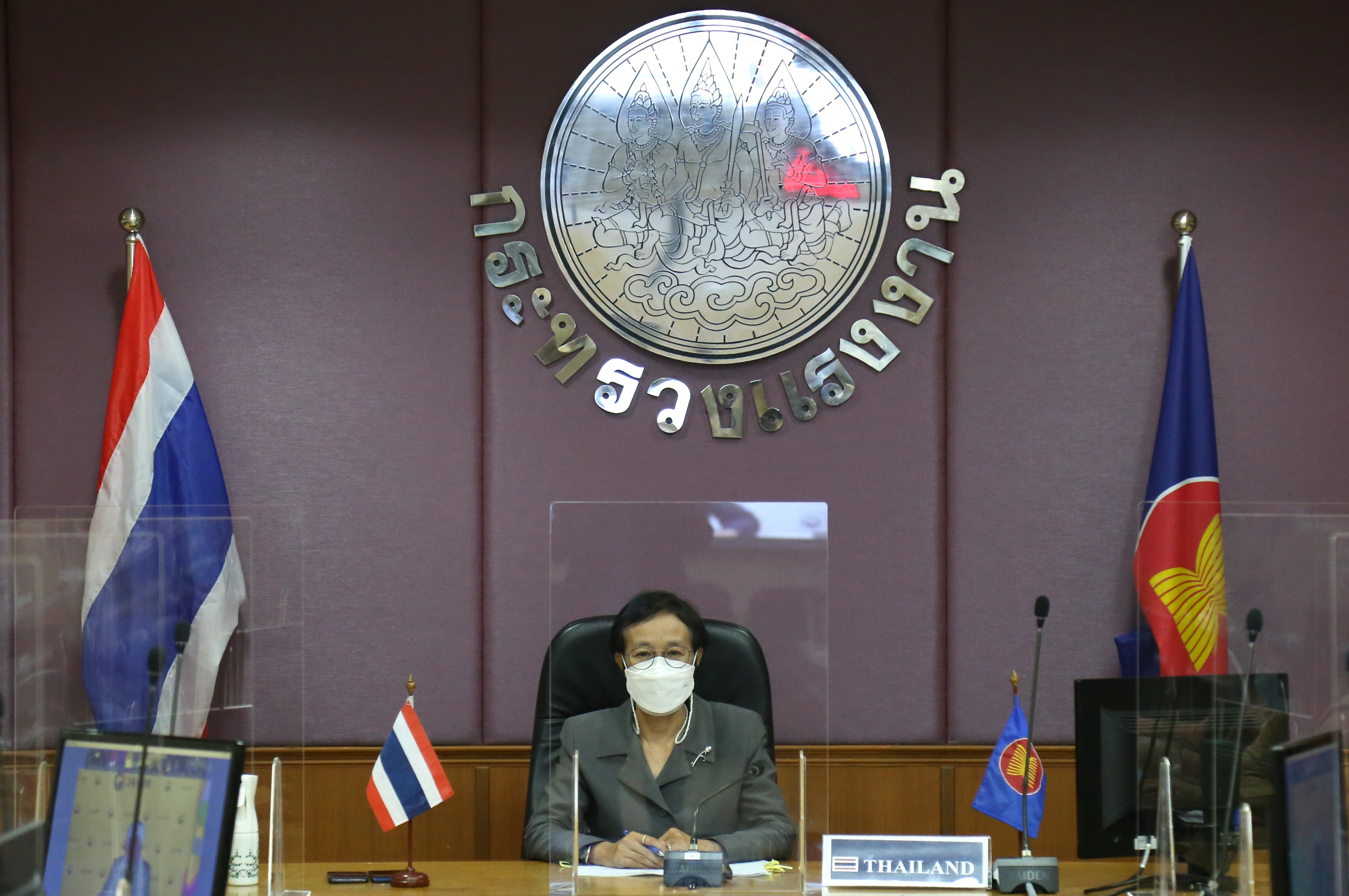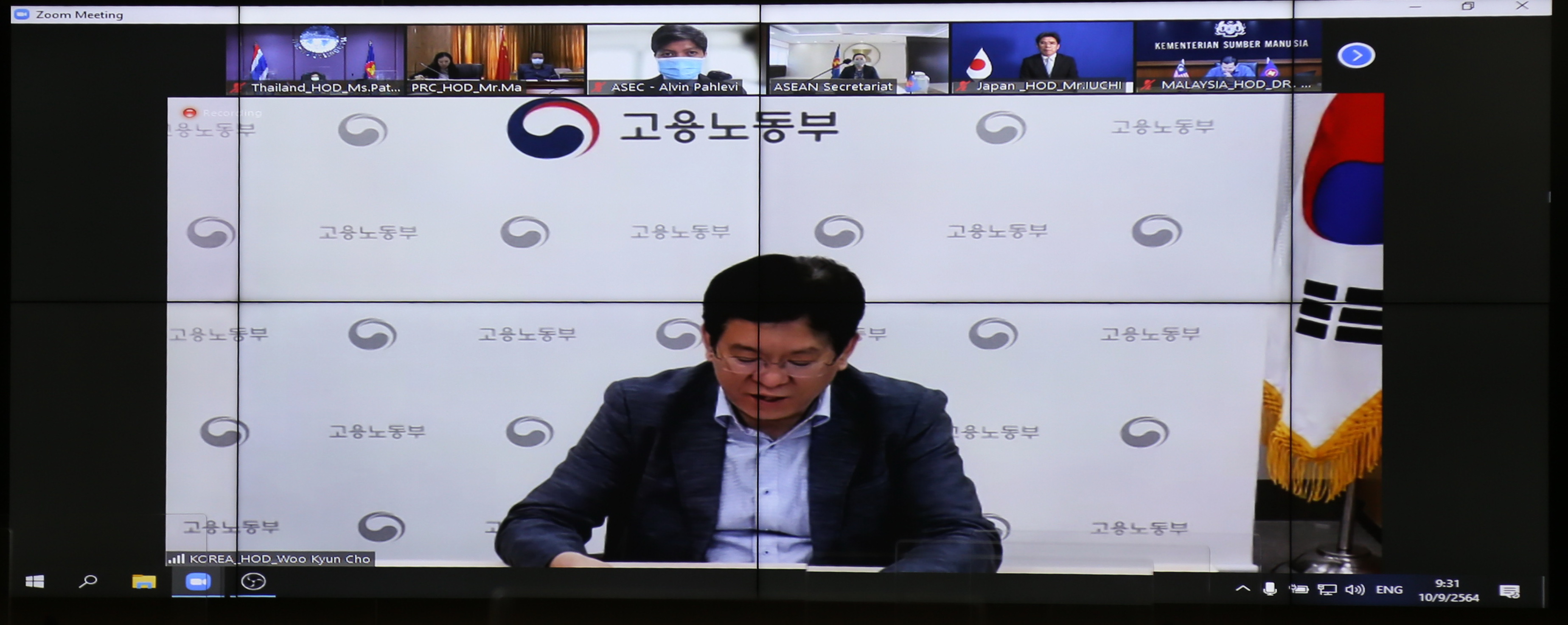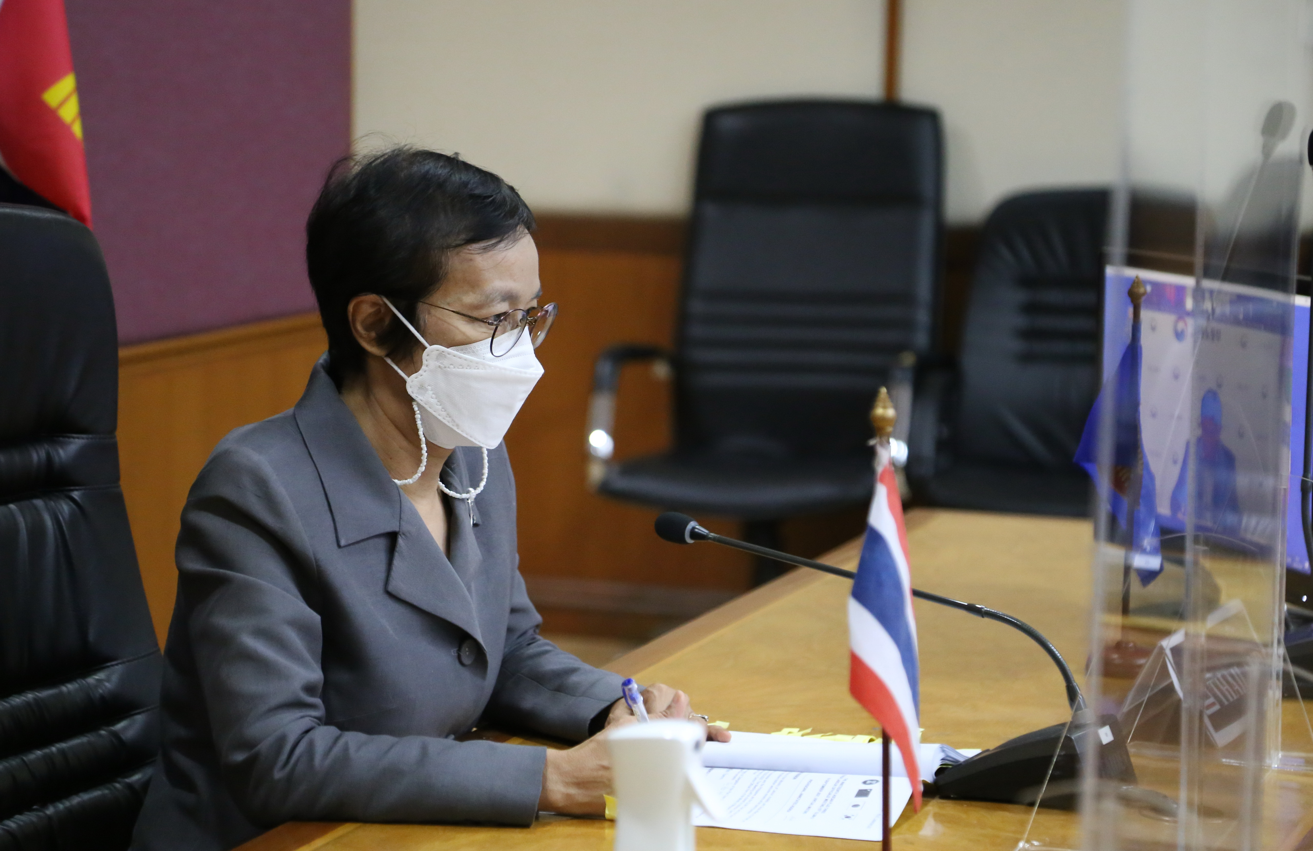 On September 10, 2021, at 09.00 hours, Assistant to the Permanent Secretary of Labour, Ms. Pattaraporn Samantarat, joined the 17th ASEAN Senior Labour Officer Meeting (SLOM) and the ASEAN Senior Labour Officer Meeting Plus Three (SLOM+3) via video conference system at the Prasong Rananant Conference Room, 5th floor, Ministry of Labour.