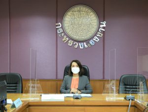 On February 11, 2022, at 0900 hours, Permanent Secretary of Labour, Mr. Boonchob Suttamanaswong, assigned the Ministry of Labour’s Inspector-General Mrs. Sopa Kieatnircha, to preside over the opening of the 45-year academic tripartite seminar, the National Advisory Council for Labour Development, on achievement on labour development in Thailand. The meeting took place via Zoom Cloud Meeting for the people involved to know the National Labour Development Advisory Council results and provide opportunities for stakeholders to discuss and exchange ideas. The seminar participants consisted of representatives from government agencies, relevant private sector organizations, employer organizations, employee organizations, academics, and experts, totaling 100 participants. The meeting took place at the Prasong Rananant Conference Room, 5th floor, Ministry of Labour.