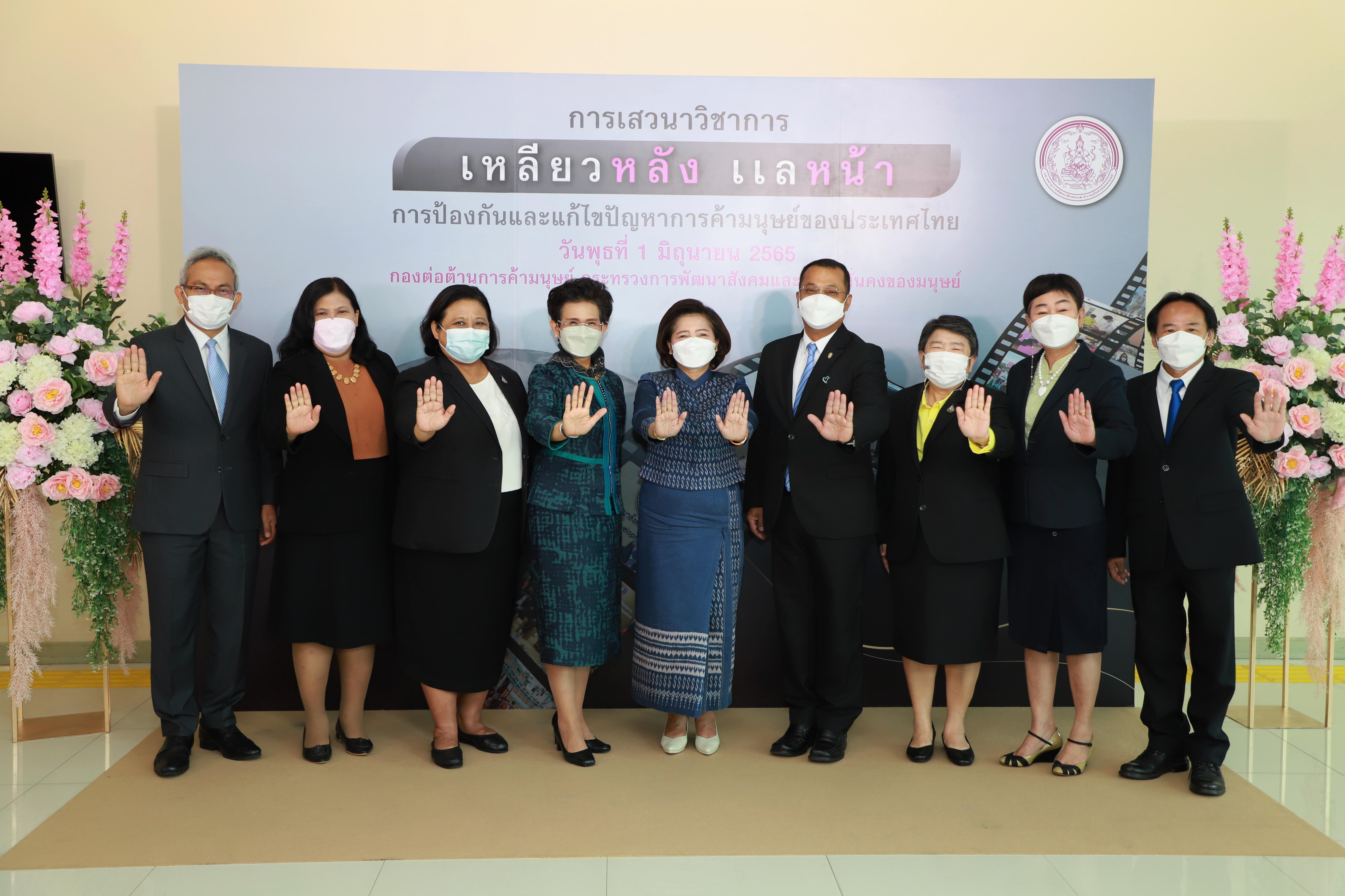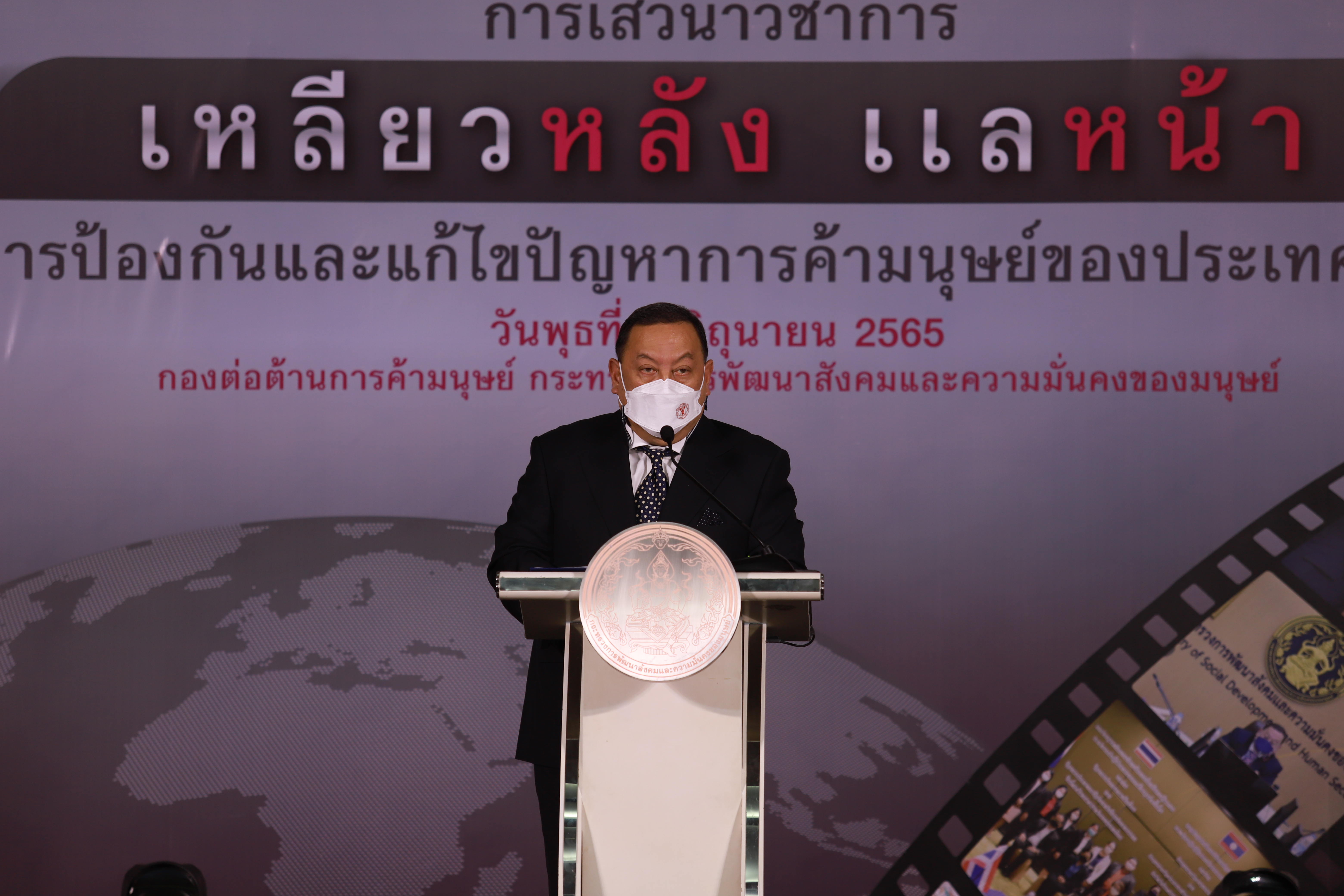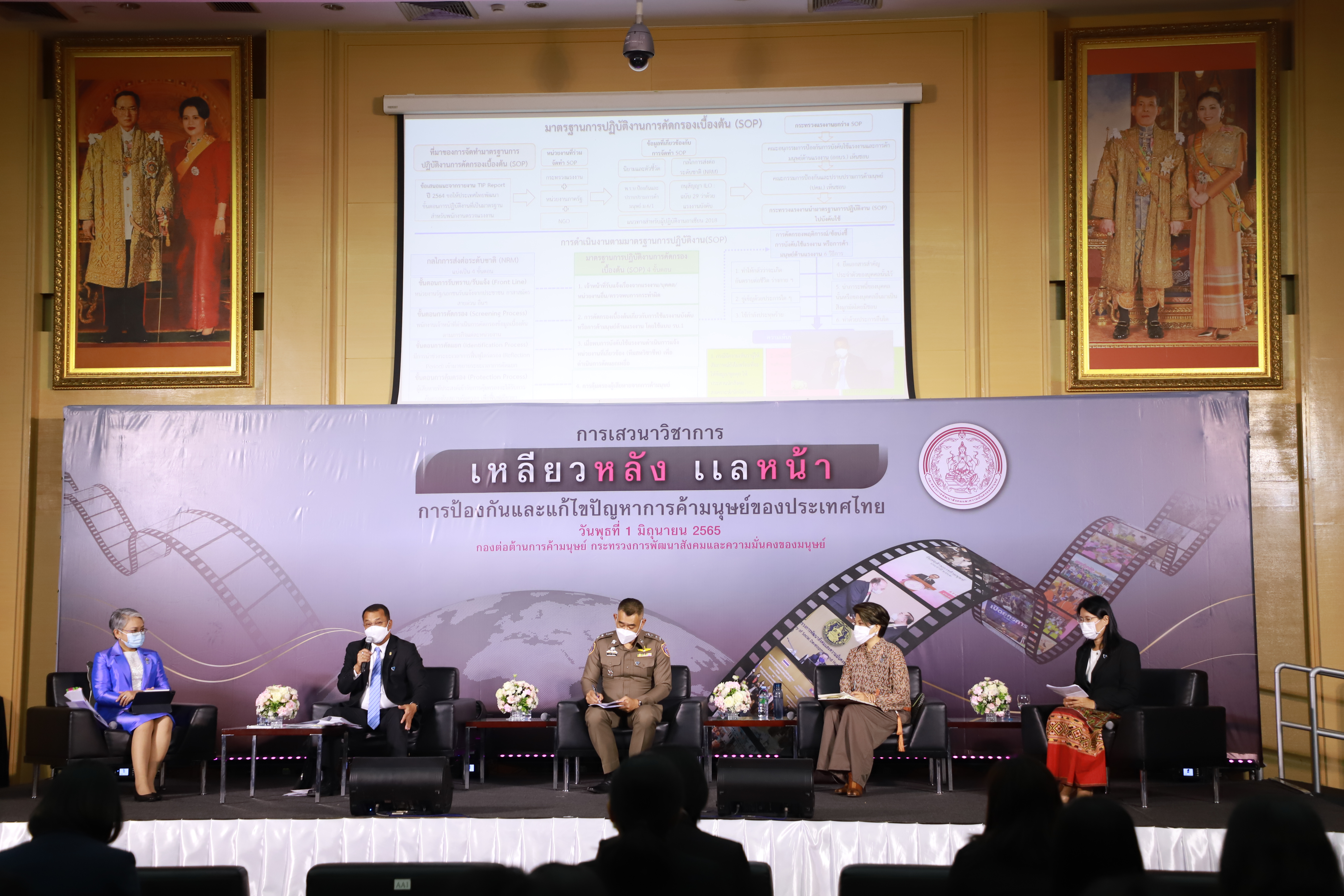 On June 1, 2022, Deputy Permanent Secretary of Labour and Spokesperson to the Ministry of Labour, Mr. Wannarat Srisuksai, joined the academic discussion on “Looking Back and Forth: Preventing and Solving Trafficking in Persons in Thailand.” Representatives from several agencies participated in the discussion, including representatives from the Ministry of Social Development and Human Security, the Ministry of Labour, representatives of the Royal Thai Police, Thai representatives on Women’s Rights from the ASEAN Commission on Promotion and Protection of Women’s Rights and Children’s Rights. The meeting took place at the Pakorn Angsusing Meeting Room, 2nd Floor, Department of Social Development and Welfare, Ministry of Social Development and Human Security.