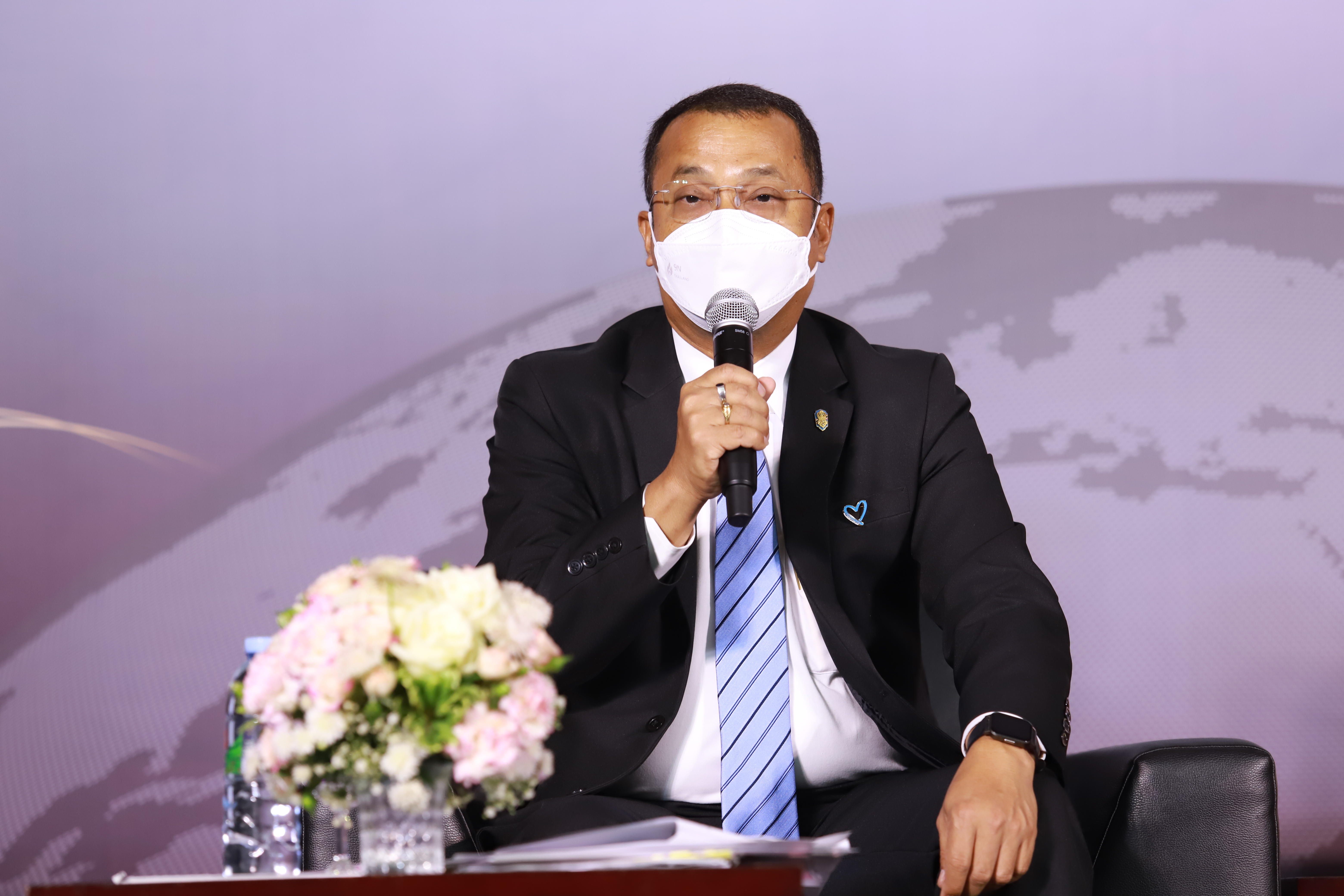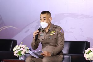 Mr. Wannarat also spoke about the Ministry of Labour’s mission of preventing and addressing important labour trafficking problems. At present, the Ministry of Labour has worked with relevant agencies to drive the policy, including labour inspections at the PIPO centers in 22 coastal provinces. He spoke about qualitative labour inspections in general enterprises and workplace inspections at risk of child labour, forced labour, and labour trafficking, the implementation of cooperation projects with foreign countries and international organizations, and the relaxation for foreign workers of the three nationalities to stay in the Kingdom to work temporarily during the Covid-19 outbreak, and the establishment of the center to issue CI, operating from January 10 to August 1, 2022. He also spoke about supporting enterprises to implement Good Labour Practices (GLP), upgrading the Labour Trafficking Prevention Command Center to a divisional level to provide directives to streamline operations and the appointment of the Task Force Against Human Trafficking in Labour.