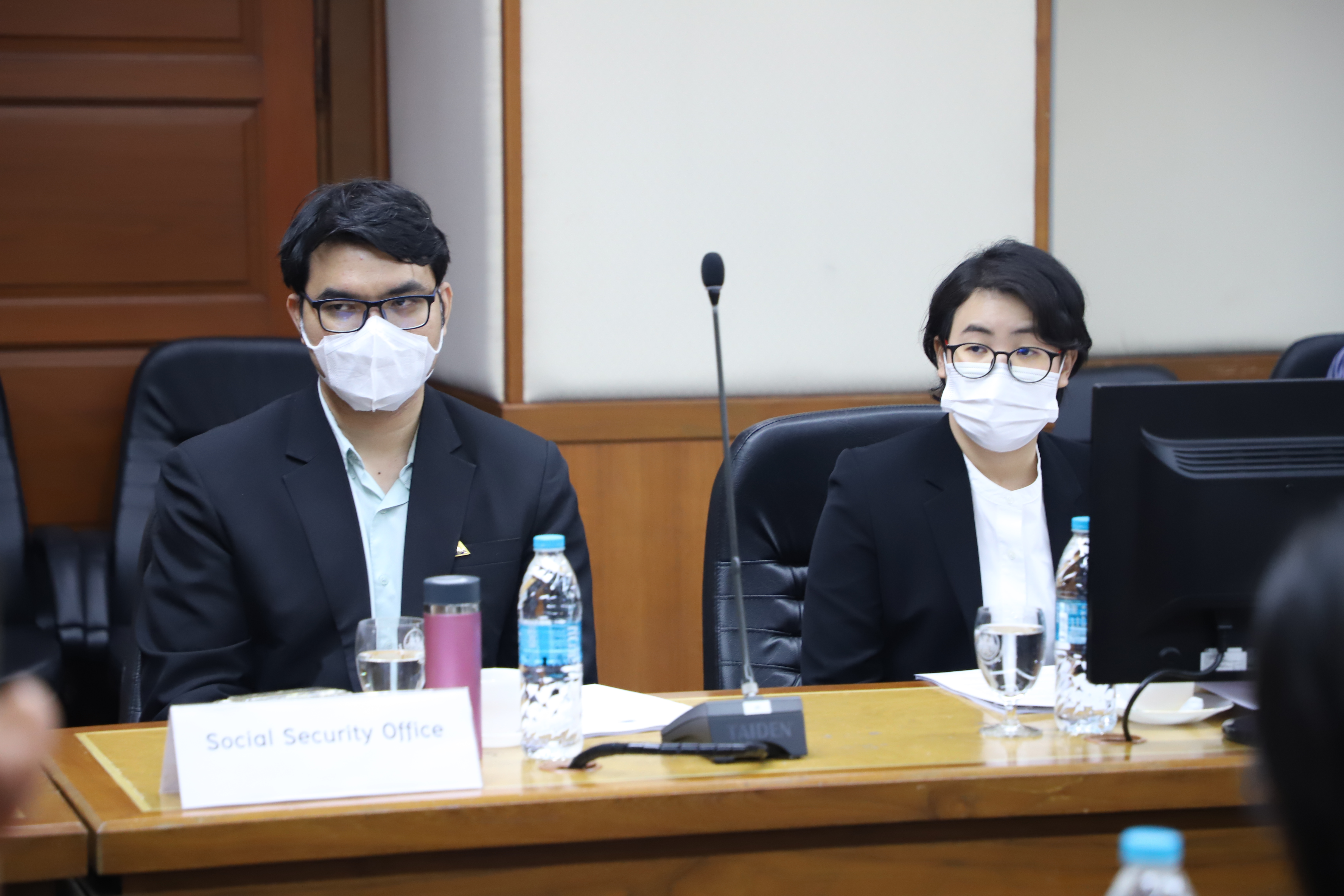 On December 8, 2020, at 16.00 hours, Permanent Secretary of Labour Mr. Suthi Sukosol chaired the meeting on information exchange and development of two academic cooperation projects: the project to strengthen the integrated social protection system for everyone in the country and a project to strengthen the policy design of the Social Security Office. The initiatives emphasize research and actuarial science, in collaboration with the International Labour Organization to exchange information and develop academic cooperation projects. The meeting took place at the Prasong Rananant meeting room, 5th floor, Ministry of Labour.