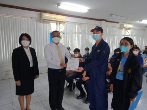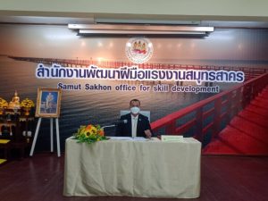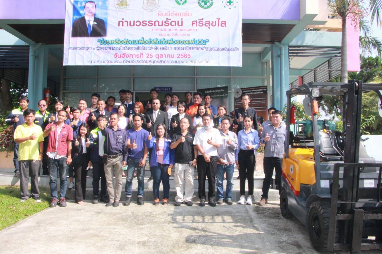 On October 25, 2022, at 09.00 hours, the Permanent Secretary of Labour, Mr. Boonchob Suttamanaswong, assigned the Deputy Permanent Secretary of Labour, Mr. Wannarat Srisuksai, presided over the opening remarks of the “Helping Society in Remembrance of the Father of the Land” project. Chairman of the Thai Occupational Medicine Foundation, Khun Pansit Klipthong, Chairperson of the Phra Nakhon Provincial Safety Officer Network, Khun Kannika Nooma Wichienphala, Managing Director of Perfect Safety Training and Consulting Co., Ltd., Khun Ruj Chalayatri, and related agencies participated in the event at the Samut Sakhon Skill Development Office, Ban Ko Subdistrict, Mueang District, Samut Sakhon Province,