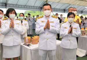 On October 13, 2020, at 08.30 hours, Prime Minister General Prayuth Chan-ocha and wife, led the Cabinet in the flower-laying ceremony and to pay respect, on the anniversary of His Majesty King Bhumibol Adulyadej’s passing. Labour Minister Mr. Suchart Chomklin, Deputy Labour Minister Prof. Narumon Pinyosinwat together with the ministry’s executives also participated in this event. Permanent Secretary of Labour Mr. Suthi Sukosol also laid flowers and paid respects at Sanam Luang.