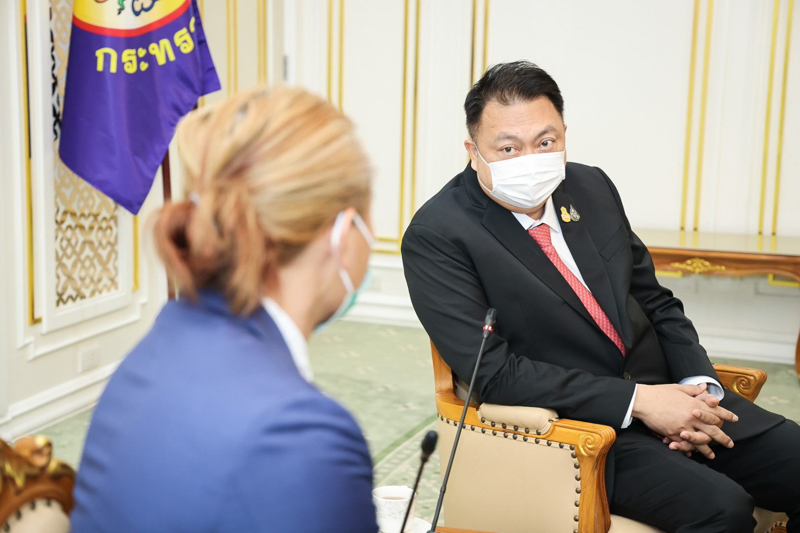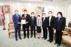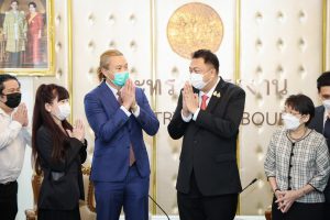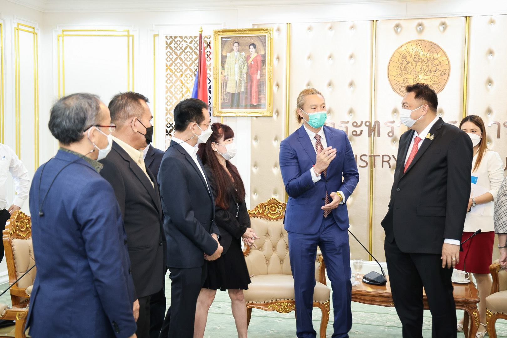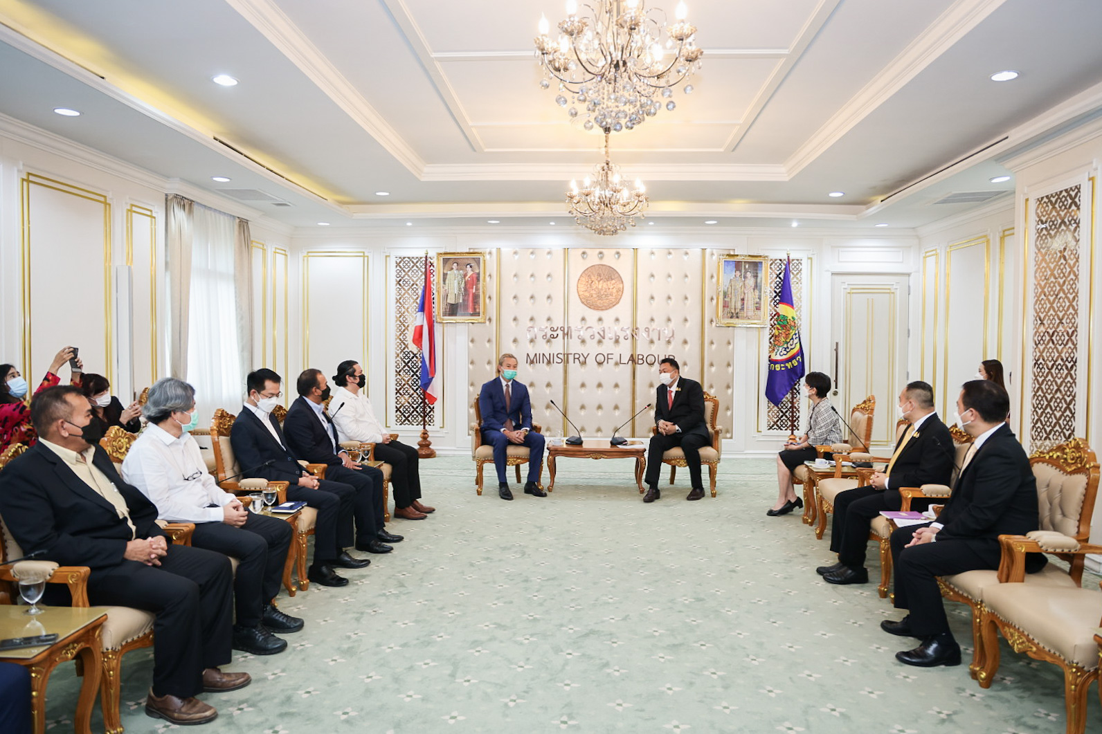 On May 25, 2022, Labour Minister Mr. Suchart Chomklin welcomed Mr. Chalermchai Mahagitsiri, Chief Executive Officer of Mermaid Subsea Services (Thailand) Co., Ltd., and delegation, along with representatives of the Export-Import Bank of Thailand or EXIM Bank on the occasion of meeting the Labour Minister to discuss ways to support and prepare the workforce, to develop skills to meet the needs of Saudi Arabian employers and enterprises. It discussed the issue of government cooperation in recruiting workers to develop workmanship, job requirements, and readiness of enterprises in Saudi Arabia. The Ministry of Labour’s Spokesperson (on politics), Mrs. Thienrat Navamawat, the Department of Employment’s Director-General, Mr. Pairoj Chotiksetian, the Department of Skill Development’s Director-General, Mr. Prateep Songlamyong, along with the Ministry of Labour’s senior executives attended the meeting at the Chatumongkol Room, 6th floor, Ministry of Labour.