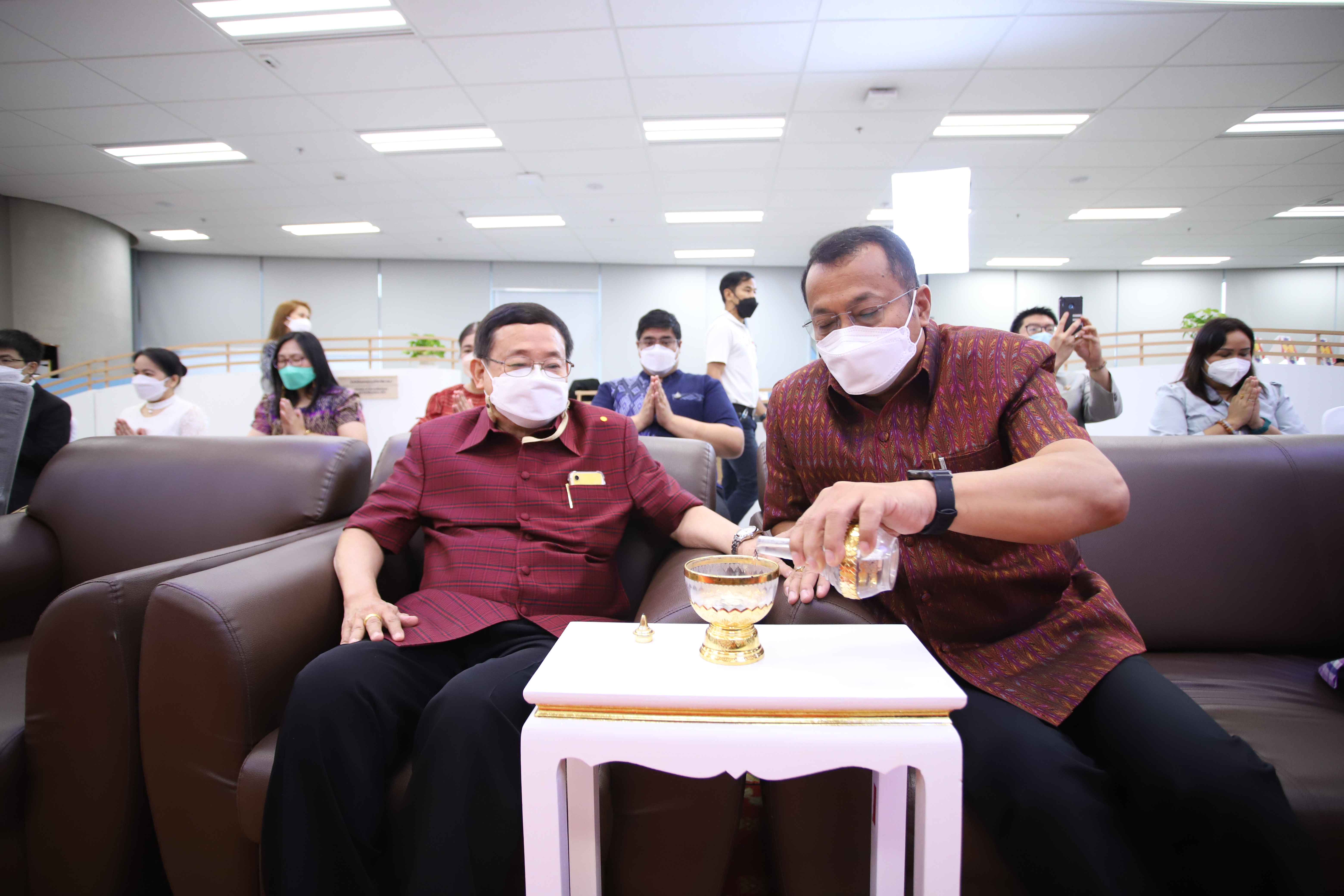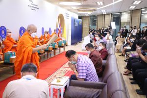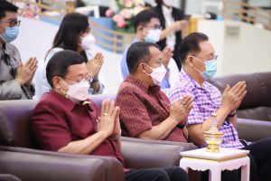 On April 21, 2022, at 08.00 hours, Permanent Secretary of Labour, Mr. Boonchob Suttamanaswong, assigned the Deputy Permanent Secretary of Labour, Mr. Wannarat Srisuksai, to participate in the annual merit-making ceremony of the Thailand Professional Qualifications Institute (Public Organization) for 2022. There was a ceremony of chantings the Buddha’s mantra and offering food to monks. The occasion occurred at the Thailand Professional Qualification Institute (Public Organization), 14th Floor, Pearl Bangkok Building.