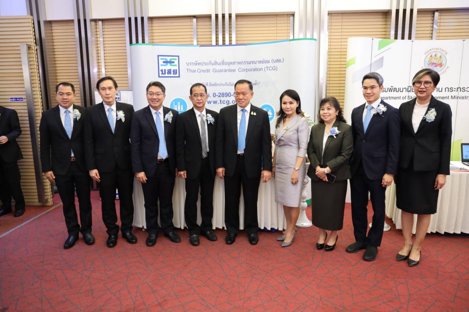 On September 15, 2020, Deputy Labour Minister Prof. Narumon Pinyosinwat joined the MOU signing ceremony on “TCG SMEs Must Win” for the TCG Soft Loan Plus loan guarantee project. The initiative is a collaboration between the Thai Credit Guarantee Corporation (TCG) and financial institutions. Deputy Finance Minister Mr. Santi Promphat and Chairman of the Board for the Small Industry Credit Guarantee Corporation (TCG) Mr. Banyong Wisetmongkolchai, attended the ceremony Vayupak Room 4, 4th Floor, Office of the Permanent Secretary of Finance.