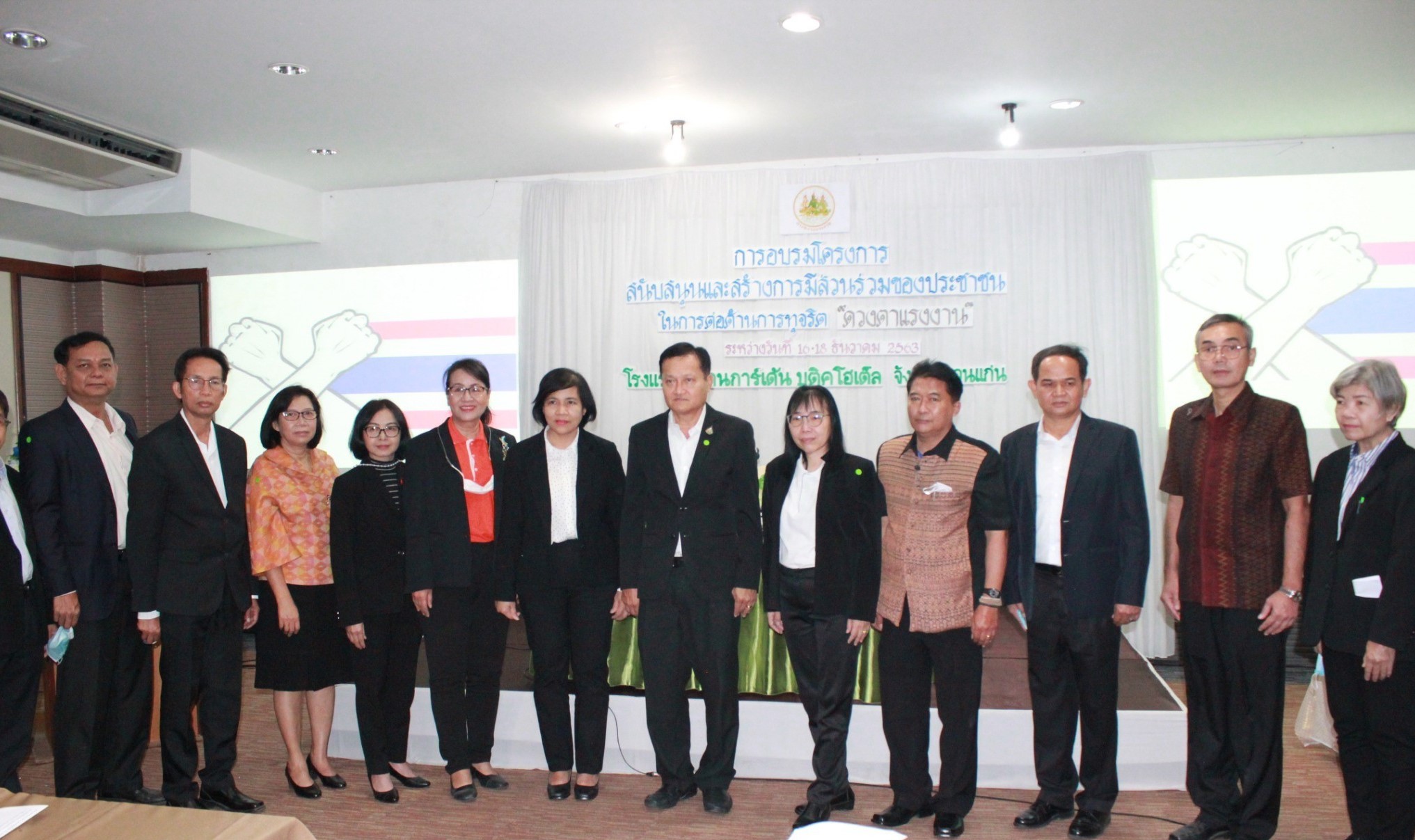 On December 17, 2020, at 09.00 hours, Permanent Secretary of Labour Mr. Suthi Sukosol presided over the opening ceremony of the project to support and create public participation in combating corruption “labour eyes” training and activities promoting the intention of “Ministry of Labour gathering networks and strength to combat corruption.” The initiative aims to create a mechanism to support government officials/officials’ participation under the Provincial Labour Office, community members, and volunteer workers. This is a network under the Ministry of Labour’s responsibility as a network of surveillance and reporting fraud to prevent and suppress the possibility of corruption in the area. Deputy Permanent Secretary of Labour Mrs. Tongjai Suthat Na Ayutthaya gave a report at the Piman Garden Boutique Hotel, Khon Kaen.