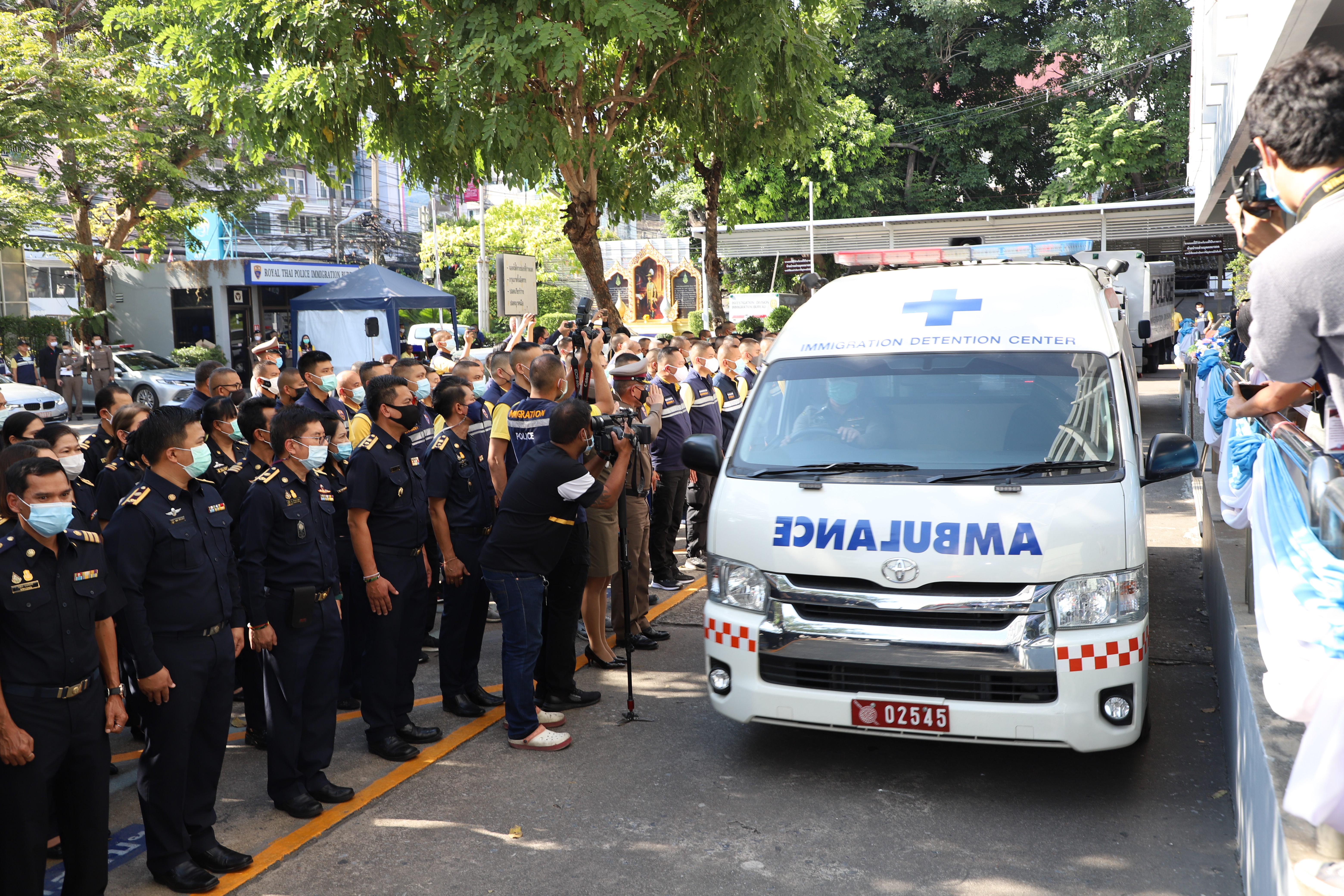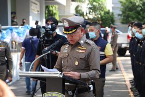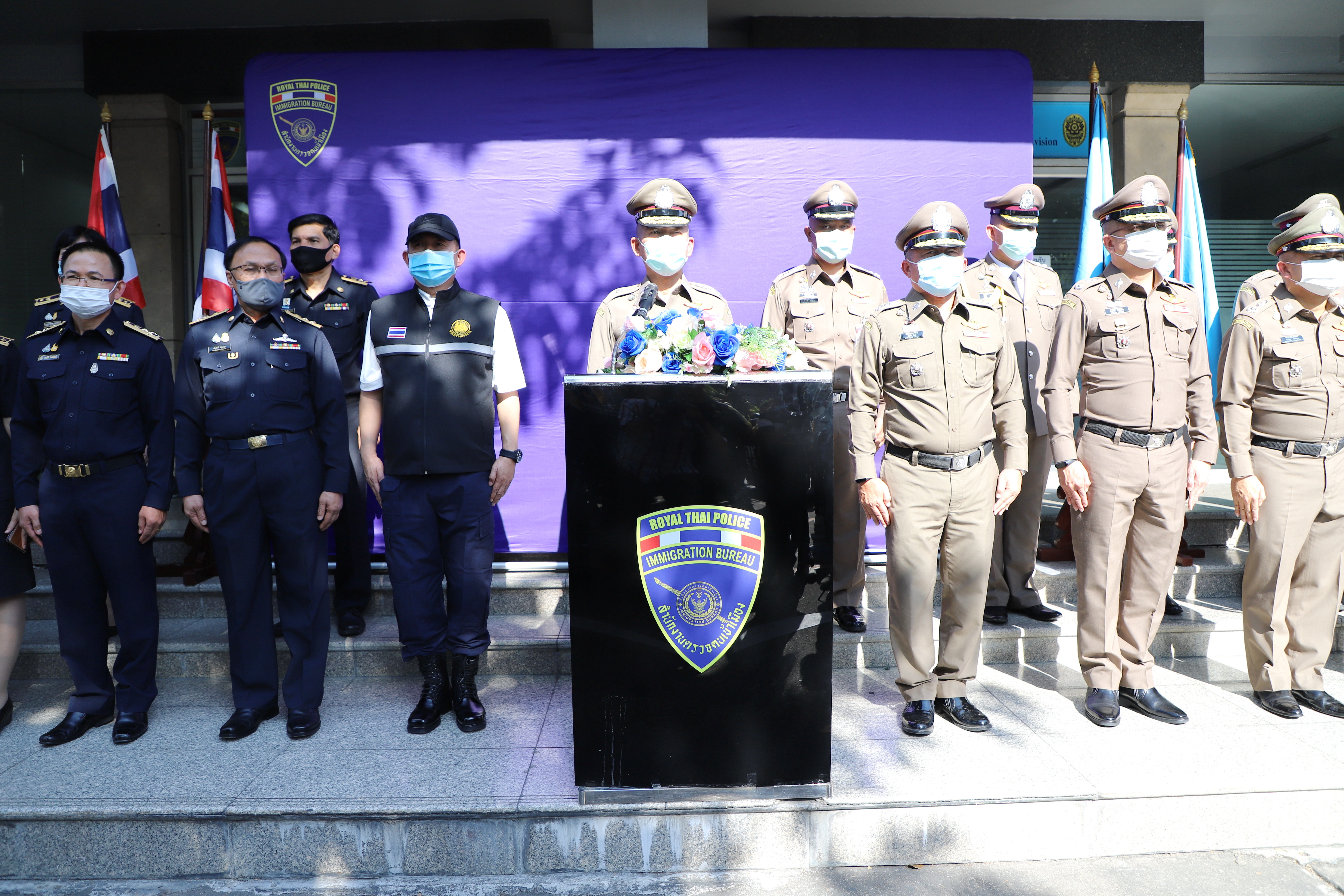 On December 22, 2020, at 15.00 hours, Labour Minister Mr. Suchart Chomklin assigned Political Official at the Secretariat Office of the Prime Minister, performing duties at the Ministry of Labour Police General Nantachat Supamongkol, participated in the official release ceremony to investigating foreigners illegally migrating into the country. Commander of the Immigration Office Police Lieutenant General Sompong Chingduang presided over the ceremony at the Immigration Office. The officers will visit areas around Bangkok and its vicinity to prevent foreign workers from fleeing into the city during the New Year season, preventing the spread of the Covid-19 infection.