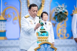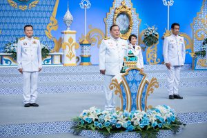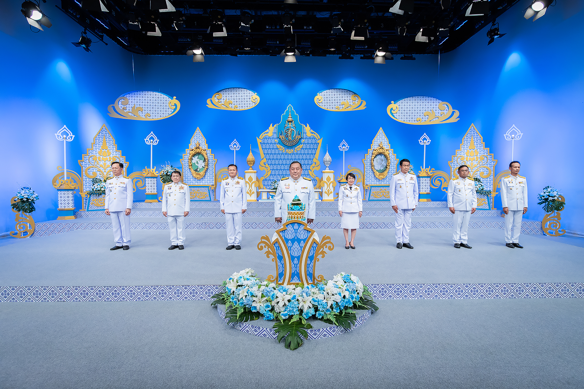 Today (July 23, 2020) at 14.30 hours, Minister of Social Development and Human Security Juti Krairuek, as Acting Labour Minister, Permanent Secretary of Labour Mr. Suthi Sukosol, Deputy Permanent Secretary of Labour Mrs. Theanrat Nawamawat and the Ministry of Labour’s executive committee joined the TV tape recording to bless Her Majesty Queen Sirikit The Queen Mother, on the auspicious occasion of her birthday, on August 12, 2020, at the National Broadcasting Services of Thailand (NBT).