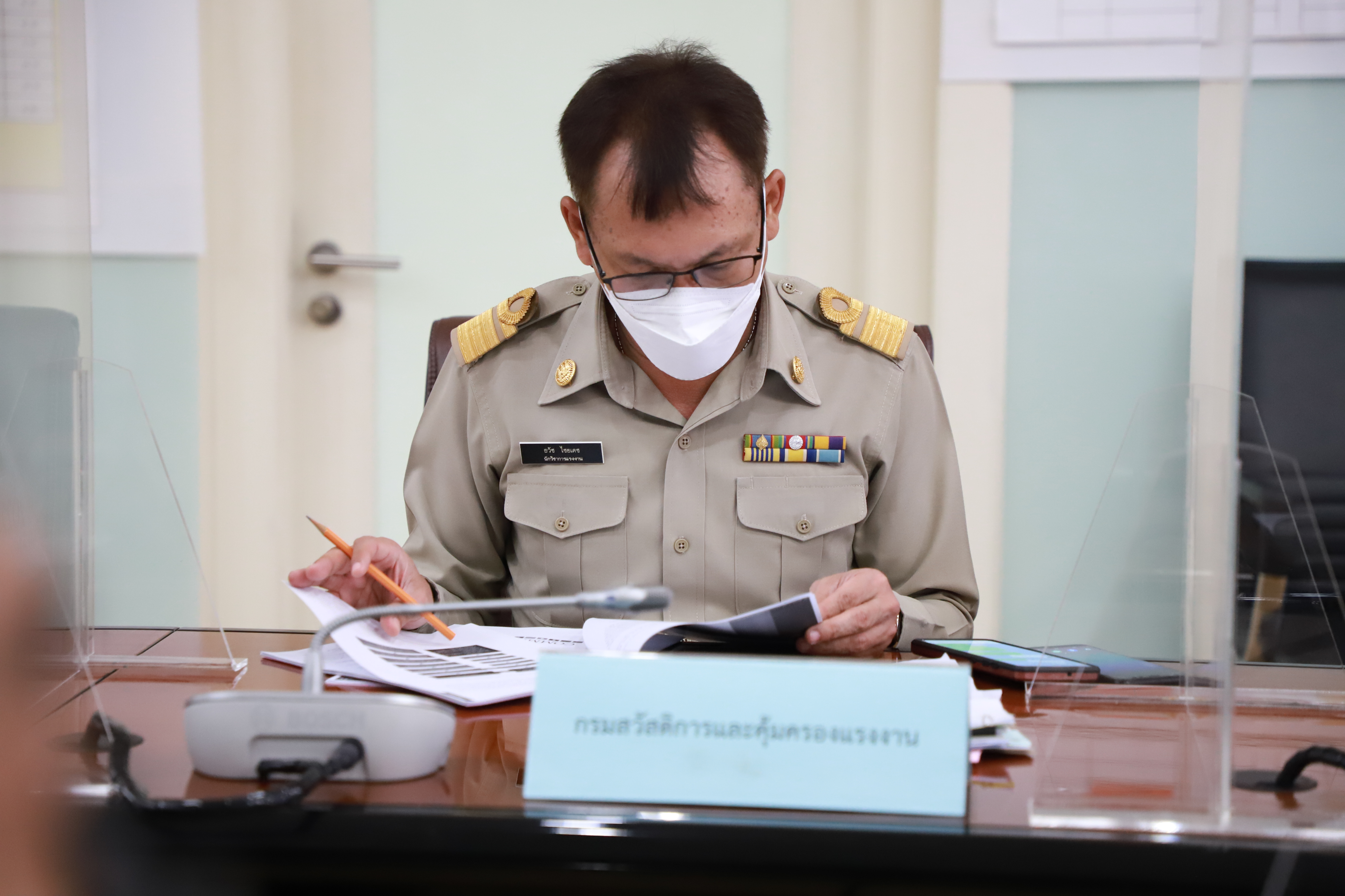 On May 2, 2022, at 09.30 hours, Permanent Secretary of Labour Mr. Boonchob Suttamanaswong assigned Deputy Permanent Secretary of Labour, Mr. Wannarat Srisuksai, as a representative in the subcommittee meeting to drive the implementation of cooperation at the ministerial level of countries in the Greater Mekong Sub-region to combat human trafficking, no. 1/2022. The meeting took place via electronic media at the Sangsingkaew Conference Room with representatives from the Department of Employment, the Department of Labour Protection and Welfare, and the Office of the Secretariat of the Labour Trafficking Prevention Command Center. The meeting considers the preparation of the fifth Coordinated Mekong Ministerial Initiative (COMMIT) or “Commit Process” and the 15th Senior Officials Meeting. It also sets the time frame and activities according to the ministerial cooperation framework of countries in the Greater Mekong Sub-region. This cooperation is between the governments of six countries in the Mekong sub-region, including Cambodia, China, Laos, Myanmar, Vietnam, and Thailand. The meeting prepared for discussions to strengthen and sustain multilateral cooperation in the fight against human trafficking and considered the timeframe for implementing subcommittees and activities under the Ministerial Cooperation Framework of countries in the Greater Mekong Sub-region from May to September 2022.