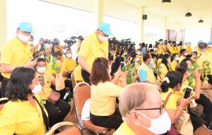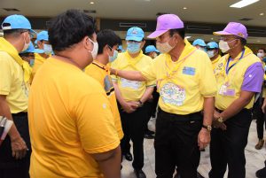 On October 14, 2020, at 09.00 hours, Prime Minister and Defense Minister General Prayuth Chan-ocha and wife, Assoc. Prof. Naraporn Chan-ocha presided over the volunteer activity “VALAYA: The Determination of Goodness and Good Deeds Can Begin with our Hearts” on the anniversary of His Majesty the Late King Bhumibol Adulyadej’s passing. The occasion took place at the Valaya Alongkorn Auditorium, Valaya Alongkorn Rajabhat University under Royal Patronage, Phahon Yothin Road, Khlong Nueng, Khlong Luang, Pathum Thani. Labour Minister Mr. Suchart Chomklin and Deputy Labour Minister Prof. Narumon Pinyosinwat also joined the occasion.