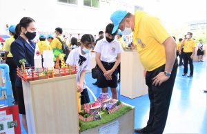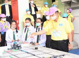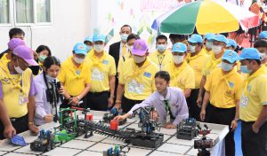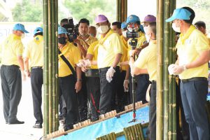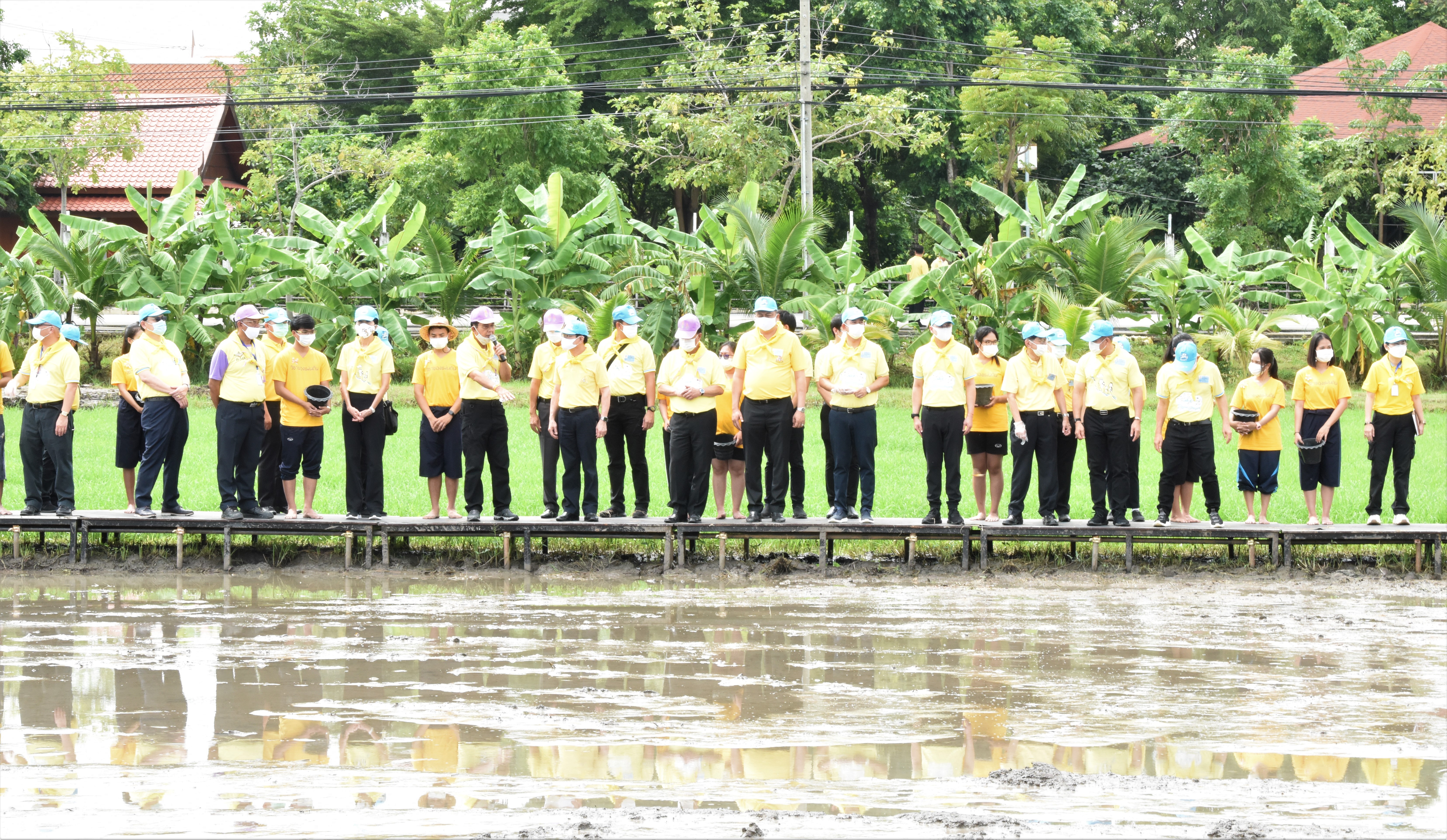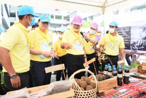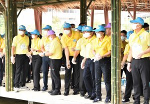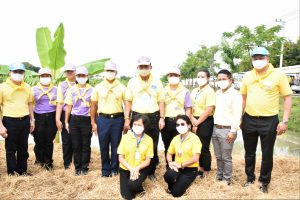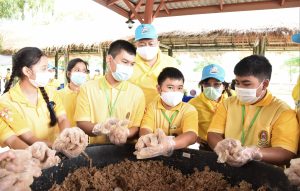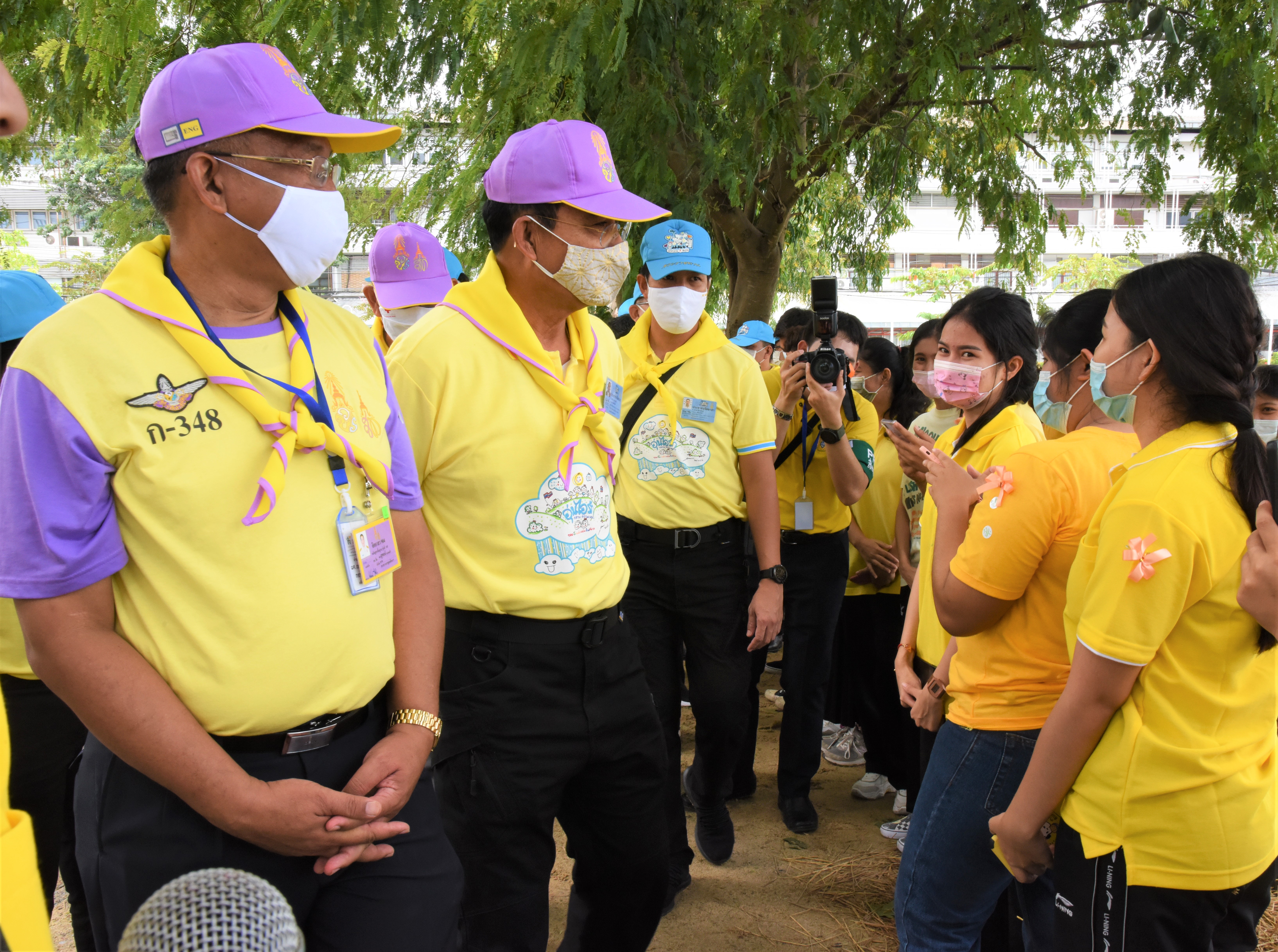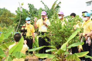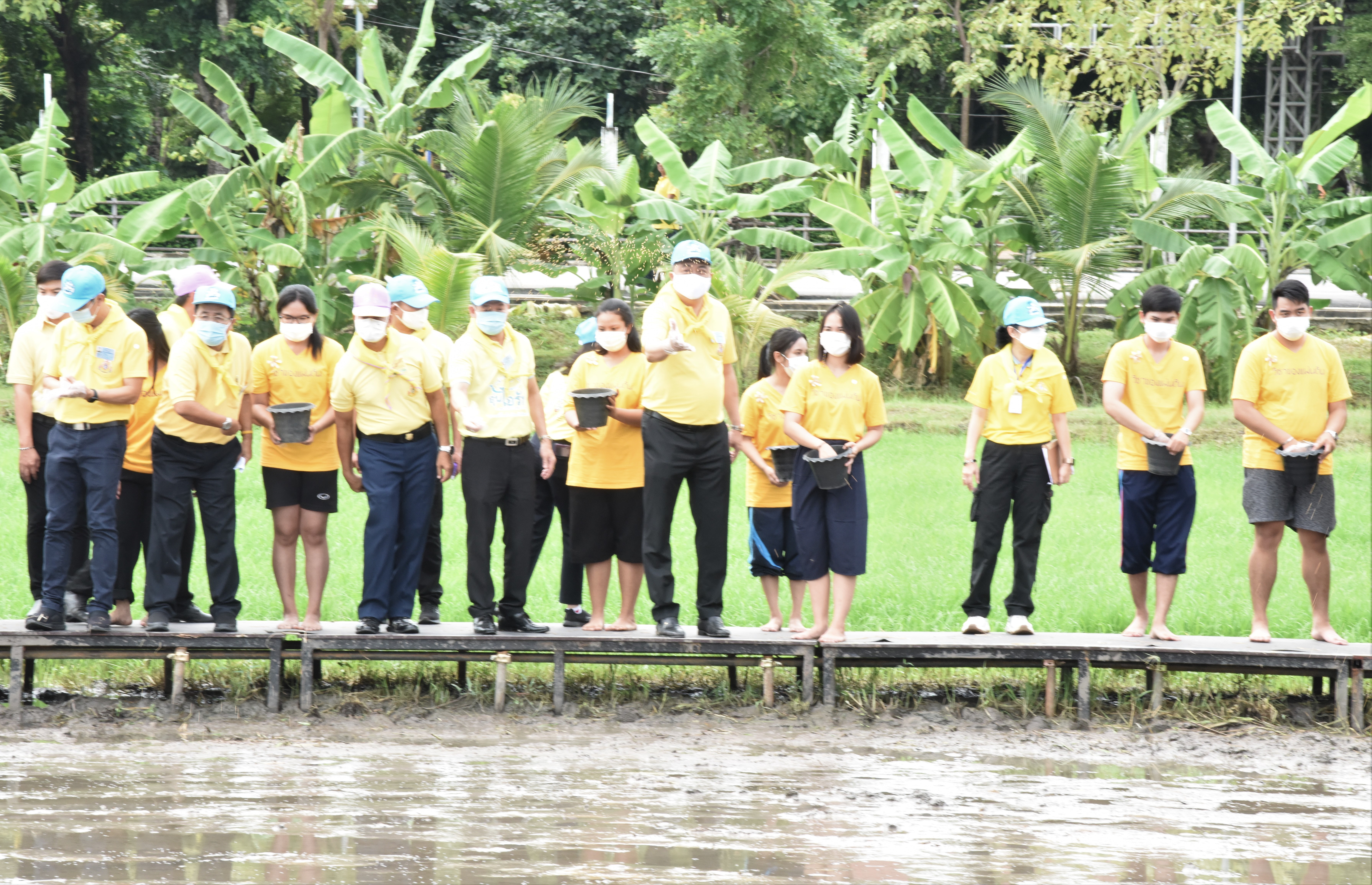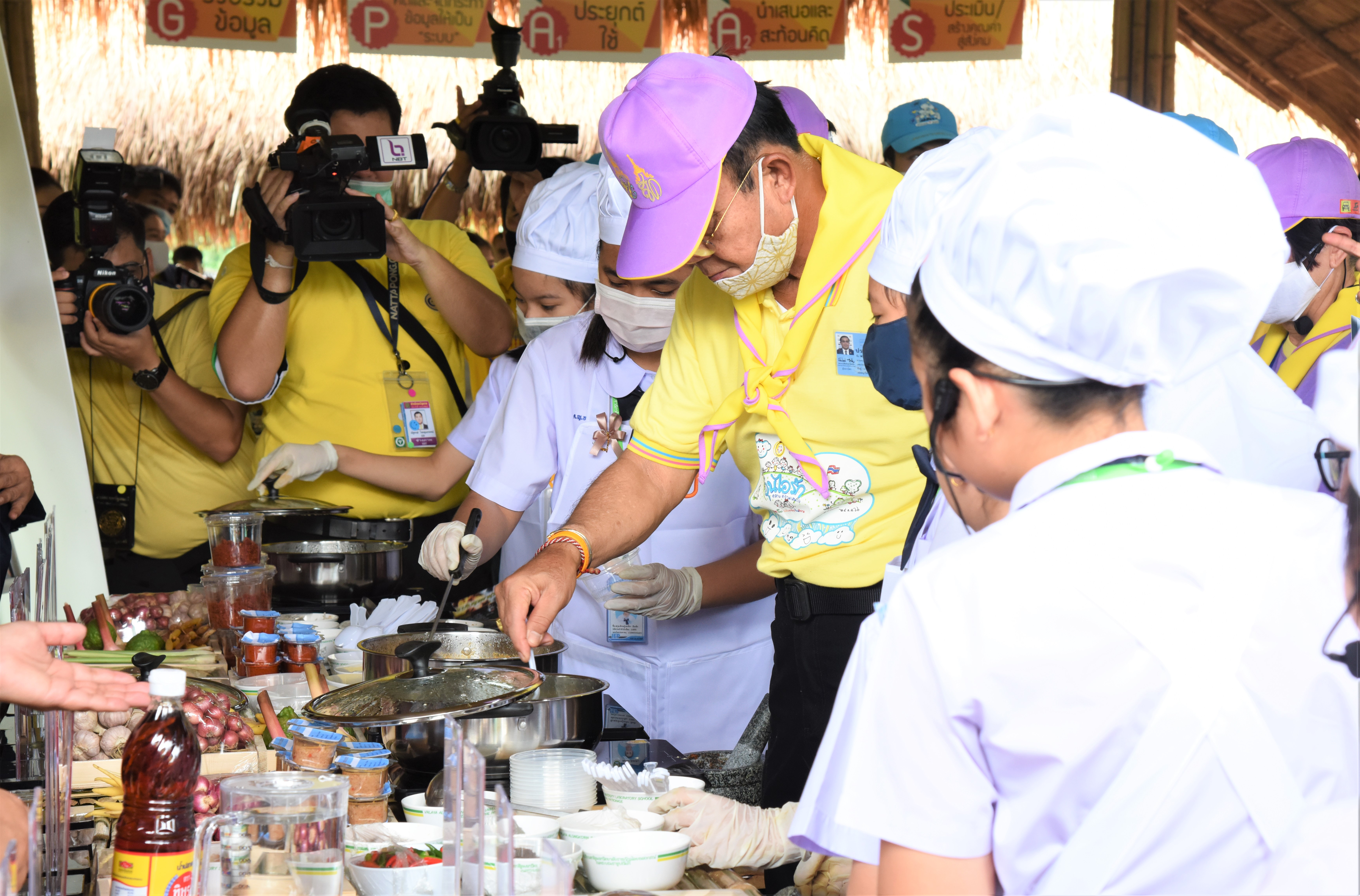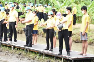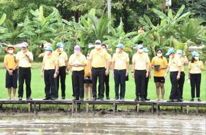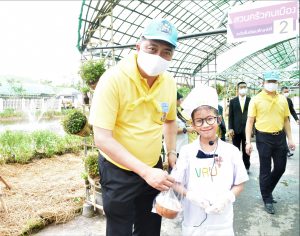 The Prime Minister and his wife, along with the Labour Minister and Deputy Labour Minister, listened to the Royal Knowledge Center’s introduction and participated in the activity of releasing tilapia and carp and fed the fishes. They also distributed microorganism balls (EM Ball) with the Cabinet, their spouses, and Valaya Alongkorn student volunteers. They also sowed KorCor 43 rice seeds in Pathum Thani, planted vegetables, a kitchen garden, and viewed an exhibition on Active Learning. Additionally, participants planted Ratchaphruek trees, made dish soap, and distributed plant and vegetable seeds for people living around the university. They also visited community products in the Pracharat way for “stability, prosperity, and sustainability.”