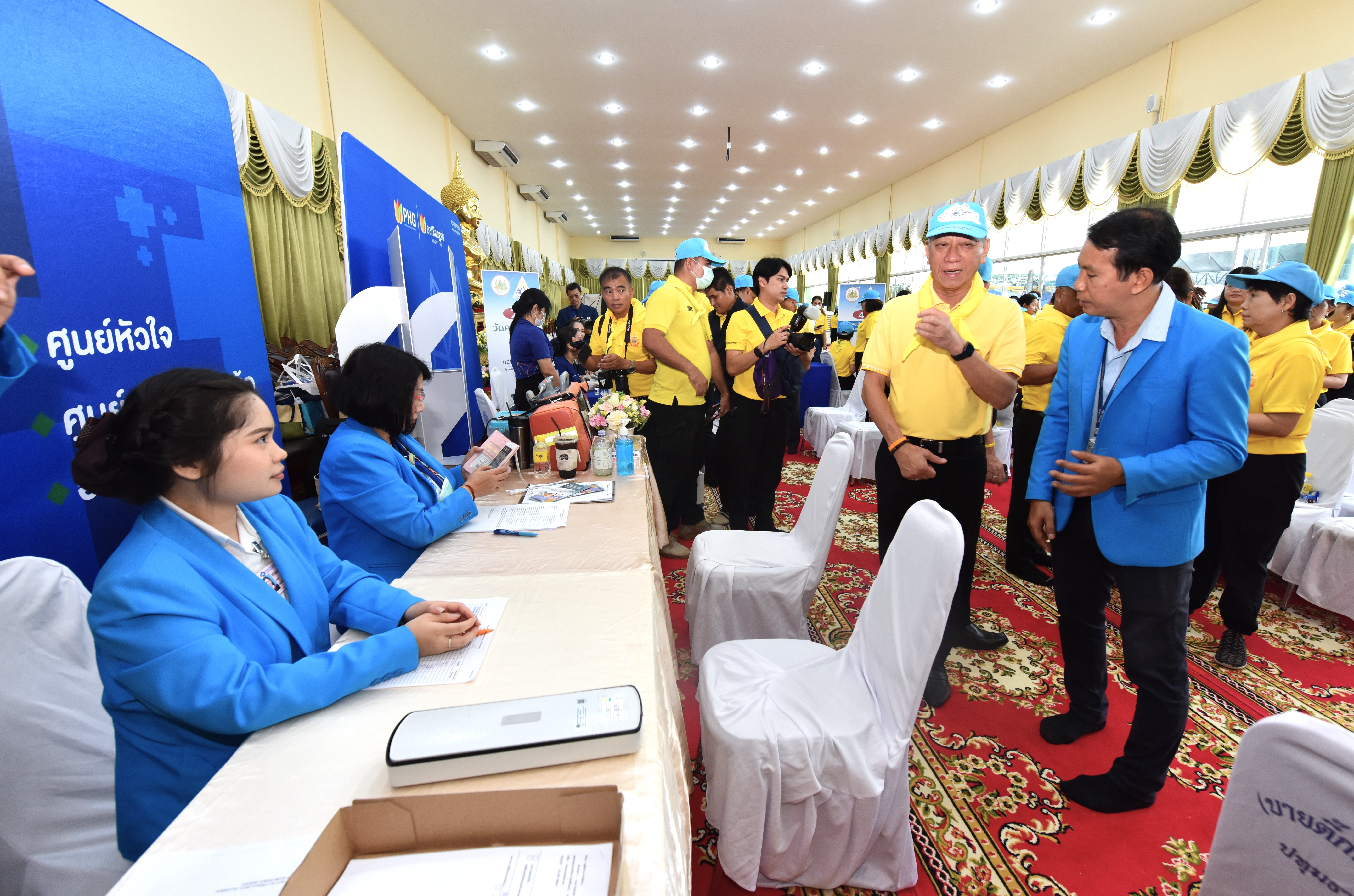 The Labour Minister, Mr. Phiphat Ratchakitprakarn, said that on the occasion of the auspicious ceremony to celebrate His Majesty the King’s 72nd birthday on July 28, 2024, activities were organized to show loyalty and gratefulness for His Majesty’s grace and offered as royal merit to His Majesty the King. The Ministry of Labour collaborated with the private sector, establishments, and labour sector networks to set up volunteer activities to serve the public good in honour of His Majesty the King on the auspicious occasion of His Majesty the King’s 72nd birthday on July 28, 2024, at the Thepsoranthammaram Temple, Mueang District, Pathum Thani Province. The volunteering activities to serve the public interest celebrate His Majesty the King. The activities were divided into two parts: volunteer activities to develop the quality of life of serving the people and volunteering to develop the environment. The volunteer activities to improve the quality of life in providing services to the people consists of an activity giving 300 relief bags to bedridden patients, the disabled, and the elderly. There are mobile vehicles available to provide job recruitment services both domestically and abroad and demonstrate self-employment opportunities in making bananas and Lui Suan noodles. There was also short-term vocational training in artificial arts, such as making a keychain from cloth and cloth bags, oil change services, and essential motorcycle inspection services. Haircut services were available for both men and women, including Thai massage services. Business establishments met with people to give out consumer items. Medical and basic health check services were available, providing vaccinations against four strains of influenza. Blood donations were also accepted. There were mobile vehicles to publicize social security benefits and to recruit people insured under Section 40, as well as providing free food and drinks to volunteers who joined in the activities. The volunteer activities to develop the environment included releasing 72,000 natural fish to restore the environment and create food sources in the community. Volunteers also cleaned the temple area and improved the landscape by painting the bathroom area and around the stairs of Luang Pu Suang.