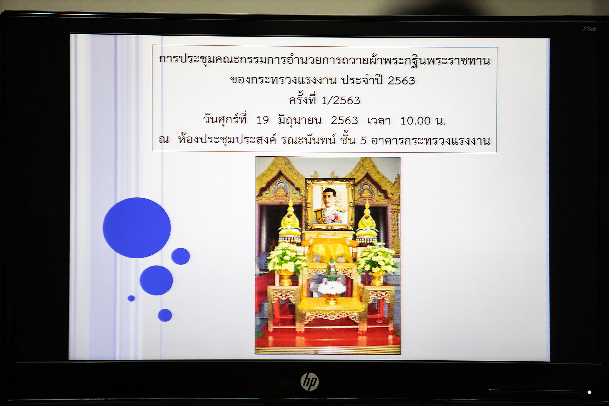 Today (Juune 19, 2020) at 10.00 hours, Permanent Secretary of Labour Mr. Suthi Sukosol chaired the Ministry of Labour’s Kathin Robe Offering Ceremony Committee for 2020 no. 1/2020. Deputy Permanent Secretary of Labour Mrs. Theanrat Nawamawat, Deputy Permanent Secretary of Labour Ms. Aumpun Thuvavit and the Ministry of Labour’s executives and related organizations also attended the meeting, which took place at the Prasong Rananant Meeting Room, 5th floor, Ministry of Labour. The meeting considered the request to donate supporting factors for offering Kathin robes in 2020 from the agencies under the Ministry of Labour and assigned the missions to departments to take further action.