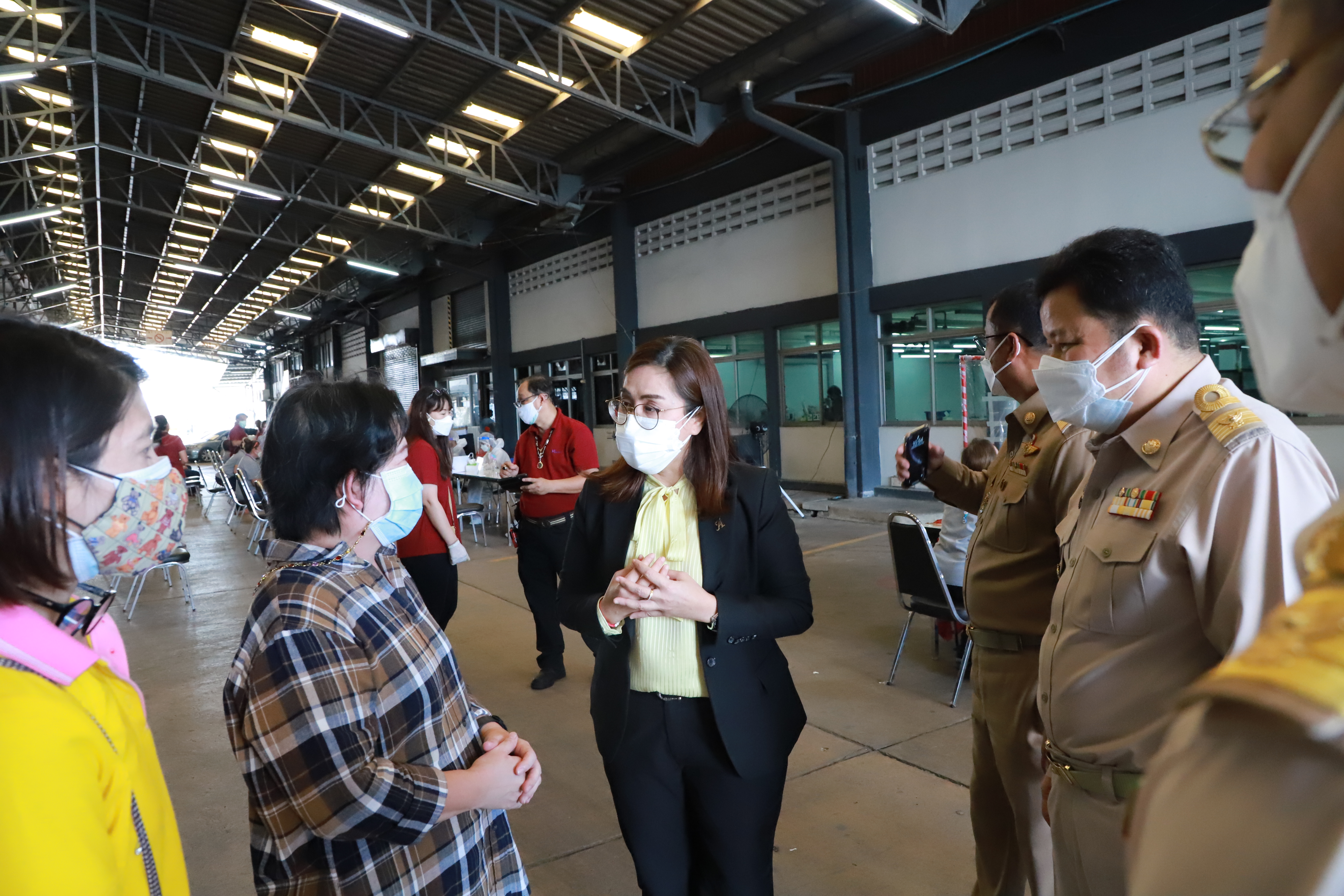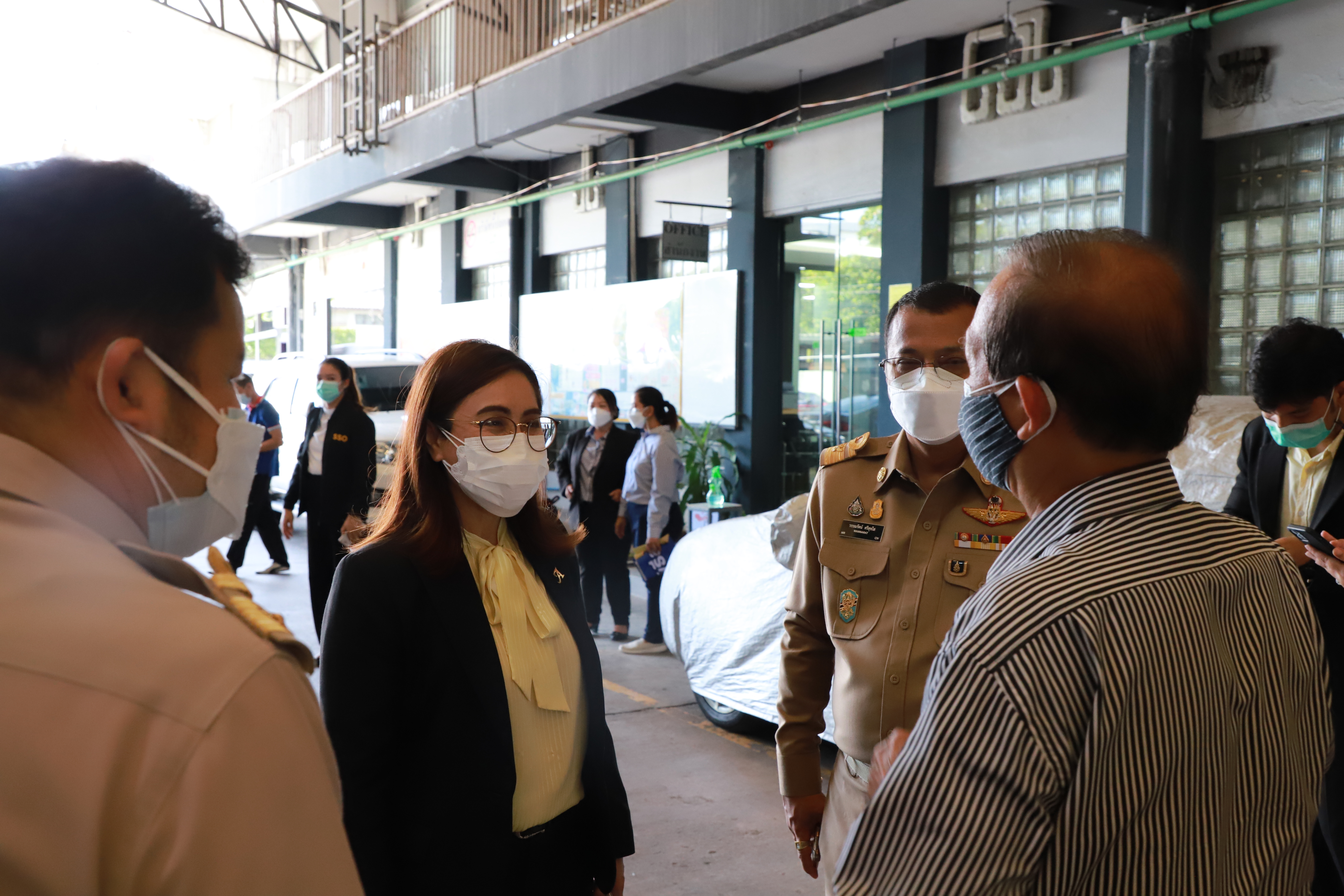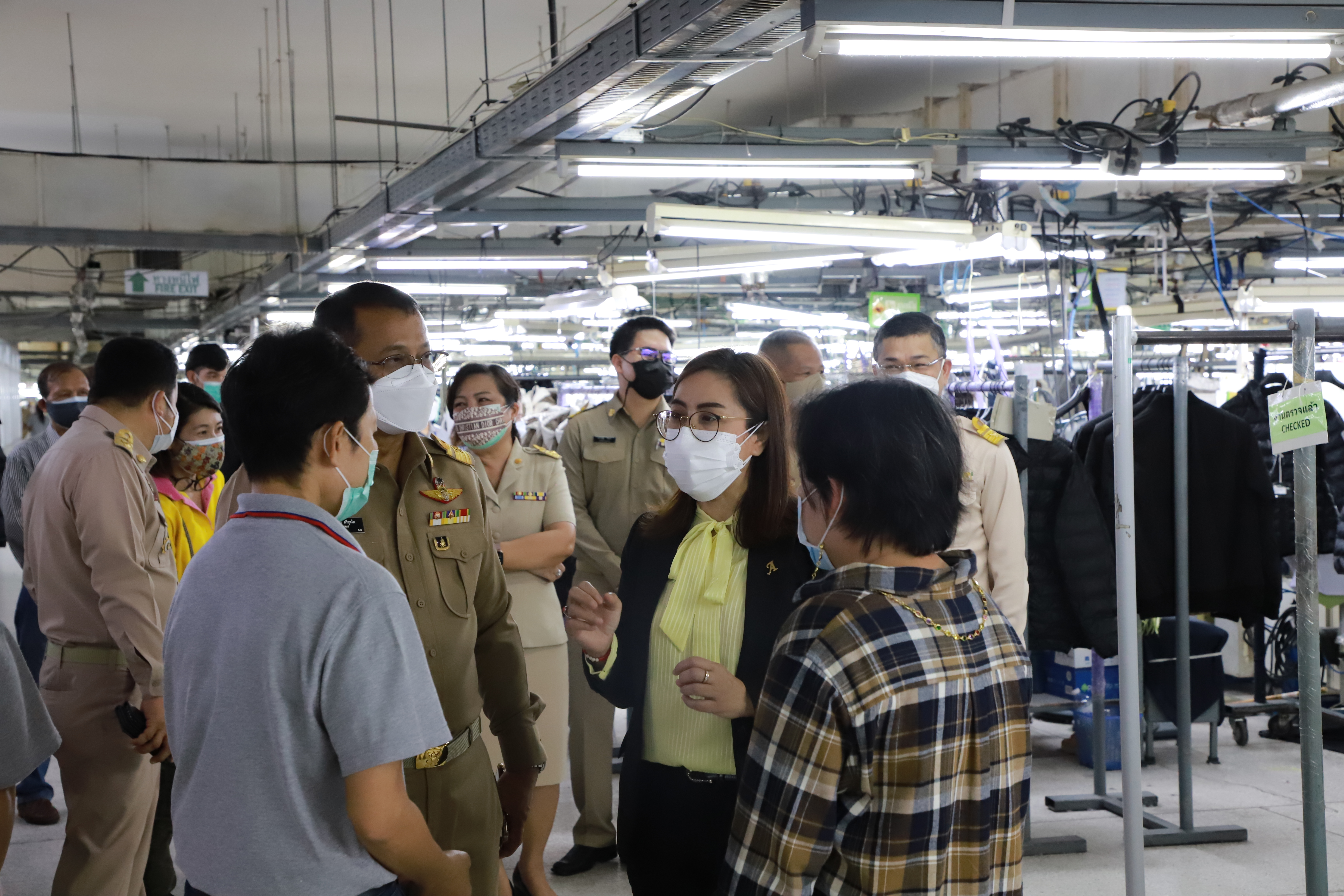 On August 23, 2021, Labour Minister Mr. Suchart Chomklin, assigned Ministry of Labour’s Inspector-General, Ms. Bubpha Rueangsud, visited the area to implement the Factory Sandbox project in Nonthaburi at Wathai Industry PCL, Pak Kret District, Nonthaburi. The company produces clothing and apparel that are used in industrial work among professionals and students. It has 907 insured persons. The Nonthaburi Provincial Public Health Office, Nonthaburi Provincial Industrial Office, Kasemrad International Hospital Rattanathibet, and heads of government agencies under the Ministry of Labour in Nonthaburi also joined the occasion. Ms. Bubpha said that the government under the leadership of Prime Minister and Minister of Defense General Prayuth Chan-ocha, and the Ministry of Labour under the supervision of Deputy Prime Minister General Prawit Wongsuwan, have given importance to the prevention and control of the spread of COVID-19 in the workplace. On August 16, 2021, the CCSA approved a pilot project for prevention and control of the pandemic in industrial plants (Factory Sandbox) by working with various agencies in the area under the process ” inspect, maintain, control and supervise,” which consists of proactive screening for factory employees according to established measures, the establishment of a field hospital to treat green, yellow and red categorized patients, vaccinating workers by focusing on risk groups and pregnant workers, the issuance of certificates to the company to ensure investor confidence and the implementation of the ‘Bubble and Seal’ measures.