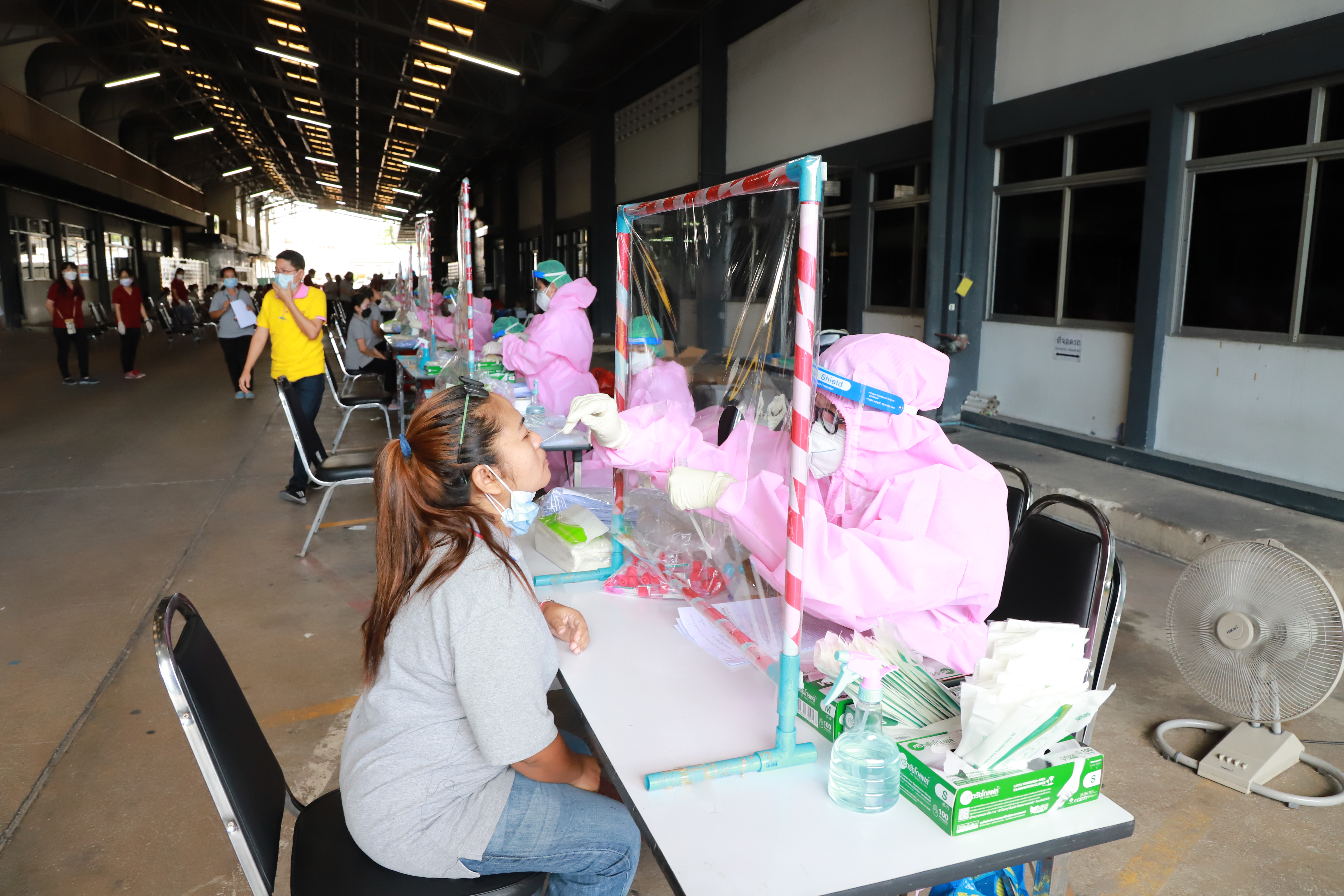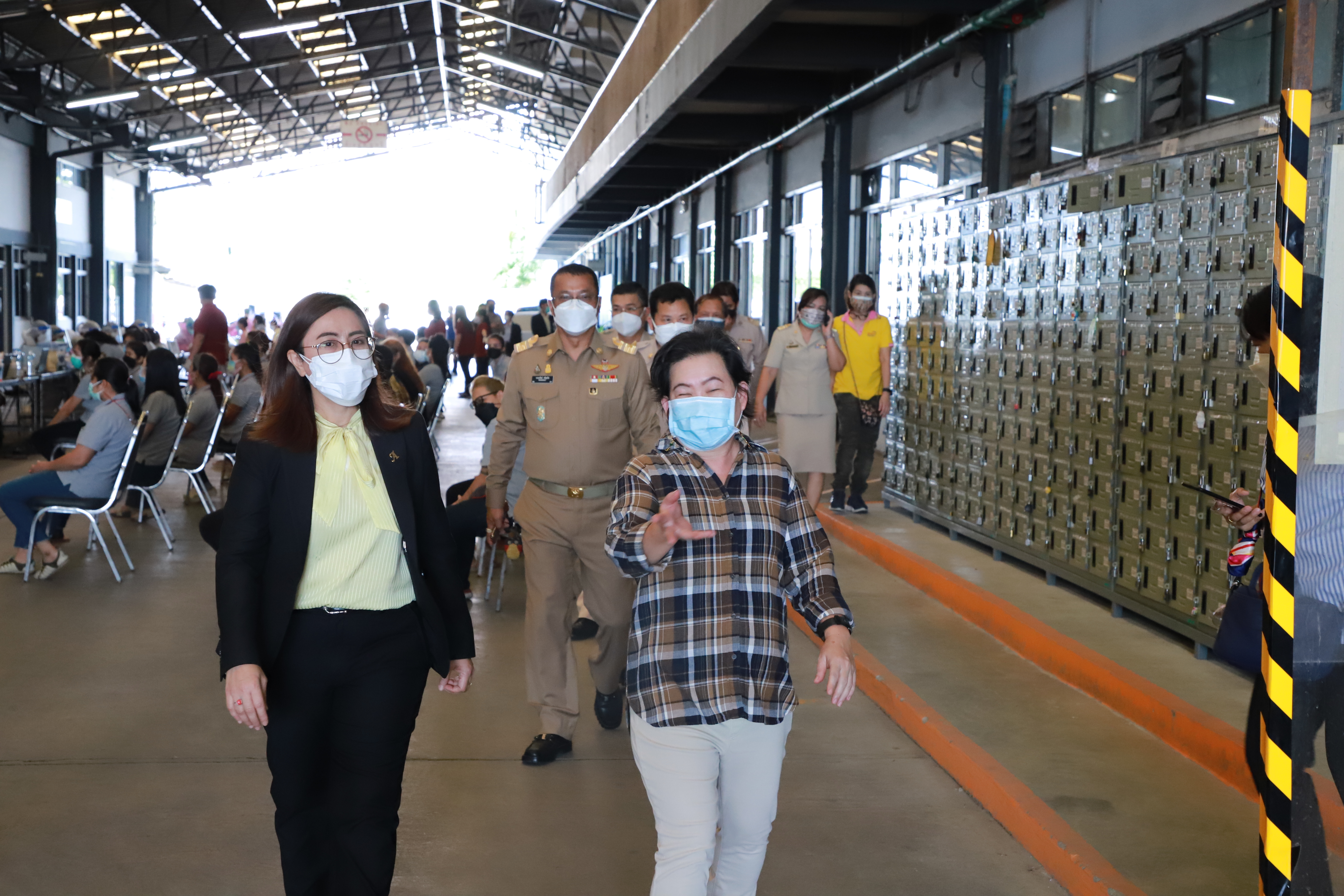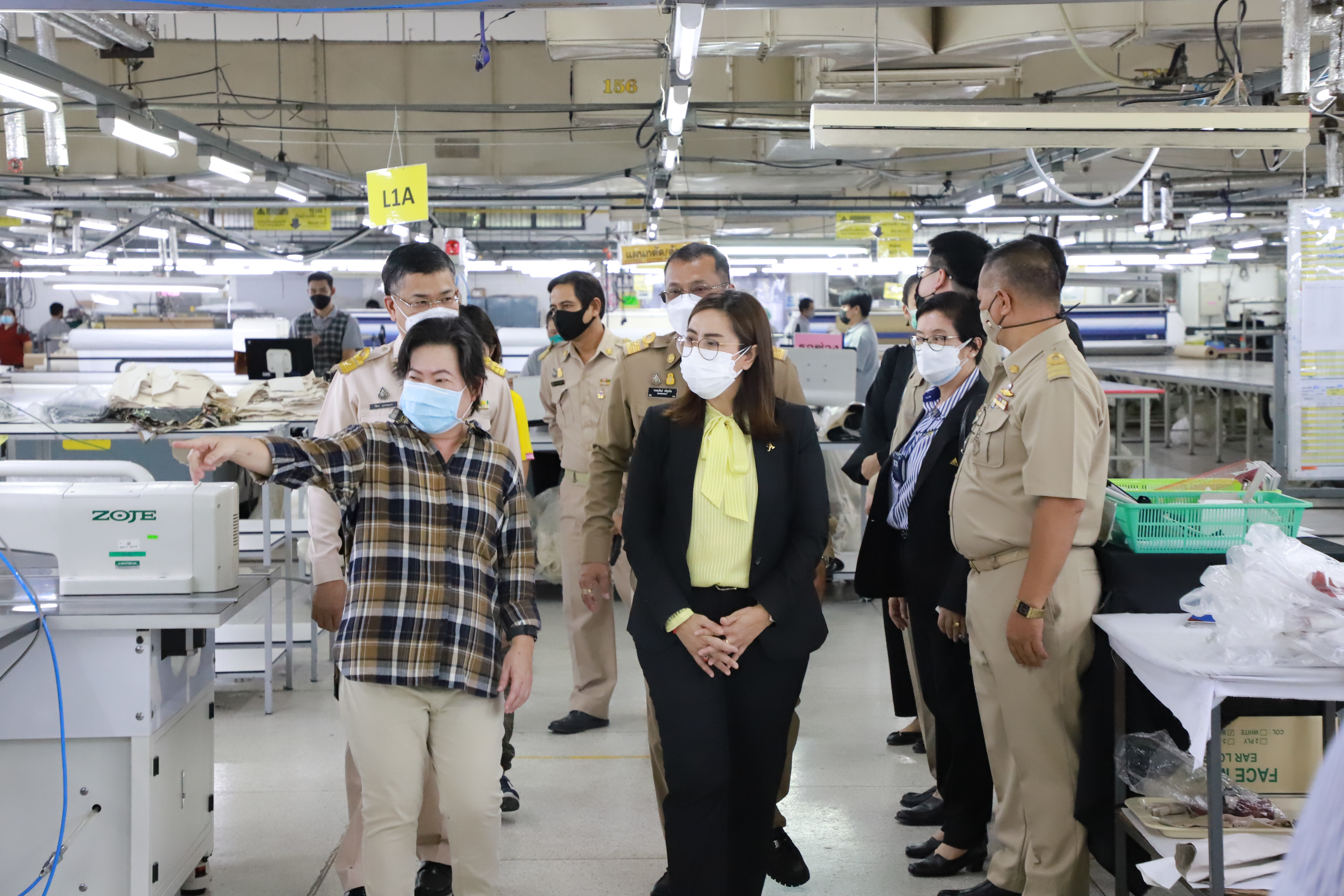 On August 23, 2021, Labour Minister Mr. Suchart Chomklin, assigned Ministry of Labour’s Inspector-General, Ms. Bubpha Rueangsud, visited the area to implement the Factory Sandbox project in Nonthaburi at Wathai Industry PCL, Pak Kret District, Nonthaburi. The company produces clothing and apparel that are used in industrial work among professionals and students. It has 907 insured persons. The Nonthaburi Provincial Public Health Office, Nonthaburi Provincial Industrial Office, Kasemrad International Hospital Rattanathibet, and heads of government agencies under the Ministry of Labour in Nonthaburi also joined the occasion. Ms. Bubpha said that the government under the leadership of Prime Minister and Minister of Defense General Prayuth Chan-ocha, and the Ministry of Labour under the supervision of Deputy Prime Minister General Prawit Wongsuwan, have given importance to the prevention and control of the spread of COVID-19 in the workplace. On August 16, 2021, the CCSA approved a pilot project for prevention and control of the pandemic in industrial plants (Factory Sandbox) by working with various agencies in the area under the process ” inspect, maintain, control and supervise,” which consists of proactive screening for factory employees according to established measures, the establishment of a field hospital to treat green, yellow and red categorized patients, vaccinating workers by focusing on risk groups and pregnant workers, the issuance of certificates to the company to ensure investor confidence and the implementation of the ‘Bubble and Seal’ measures.
