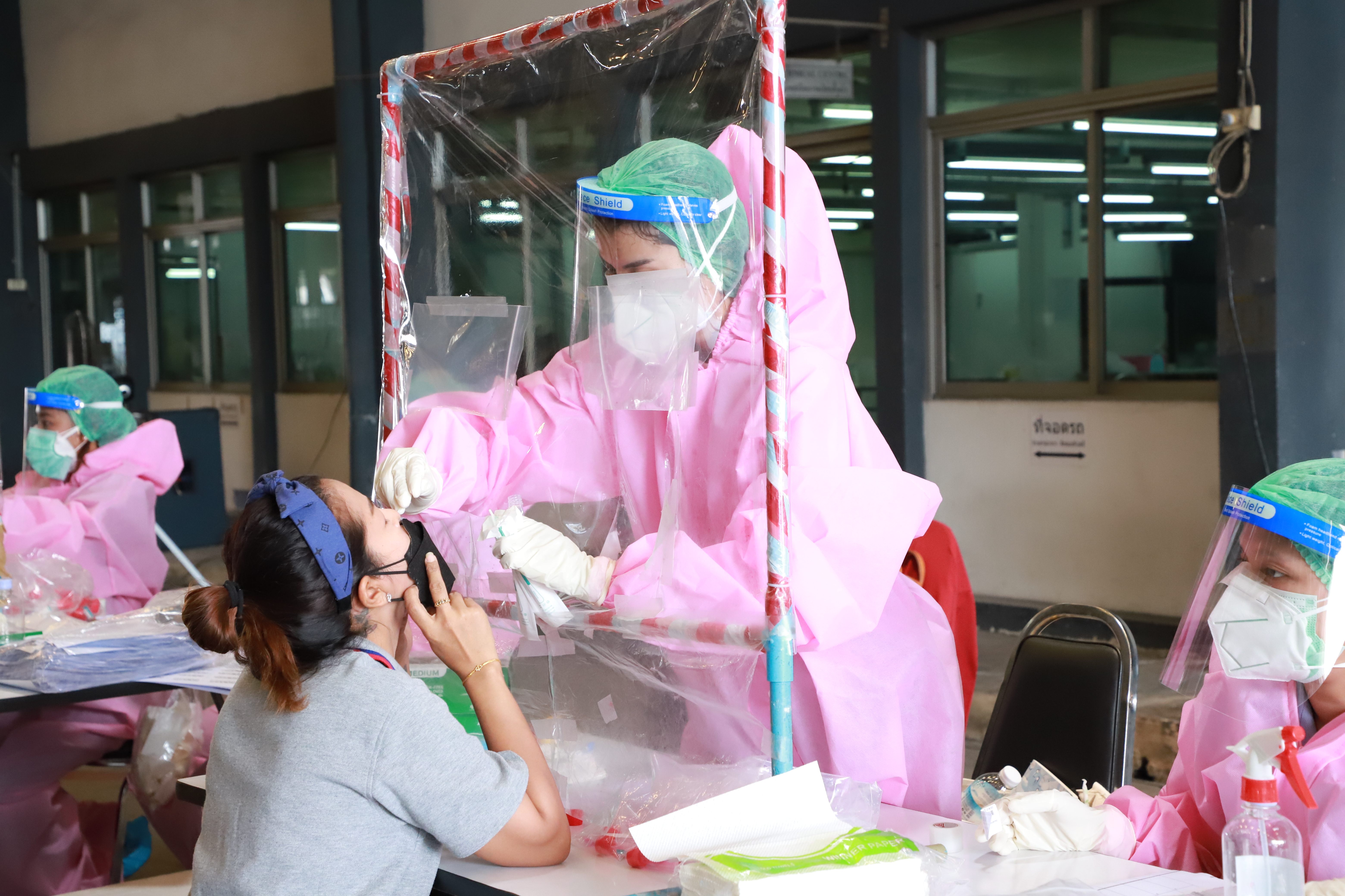 Ms. Bubpha said that today, she was assigned by Labour Minister Mr. Suchart Chomklin to visit the pilot area to implement the Factory Sandbox project in Nonthaburi Province at Wathai Industry PCL. The company follows the process of “examination, treatment, control, and supervision” by screening for COVID-19 by swab in the form of RT-PCR for 100 percent of its 907 employees to screen for those who need immediate treatment. Then, the Antigen Test Kit is used every week. A field hospital was established for Factory Accommodation Isolation (FAI) hospitals and ICUs for green, yellow, and red patients for treatment. Vaccinations will be given to workers, focusing on the seven groups of diseases and pregnant people, and certificates will be issued to companies to build confidence for investors. The control part must continue to follow the Bubble & Seal measures.