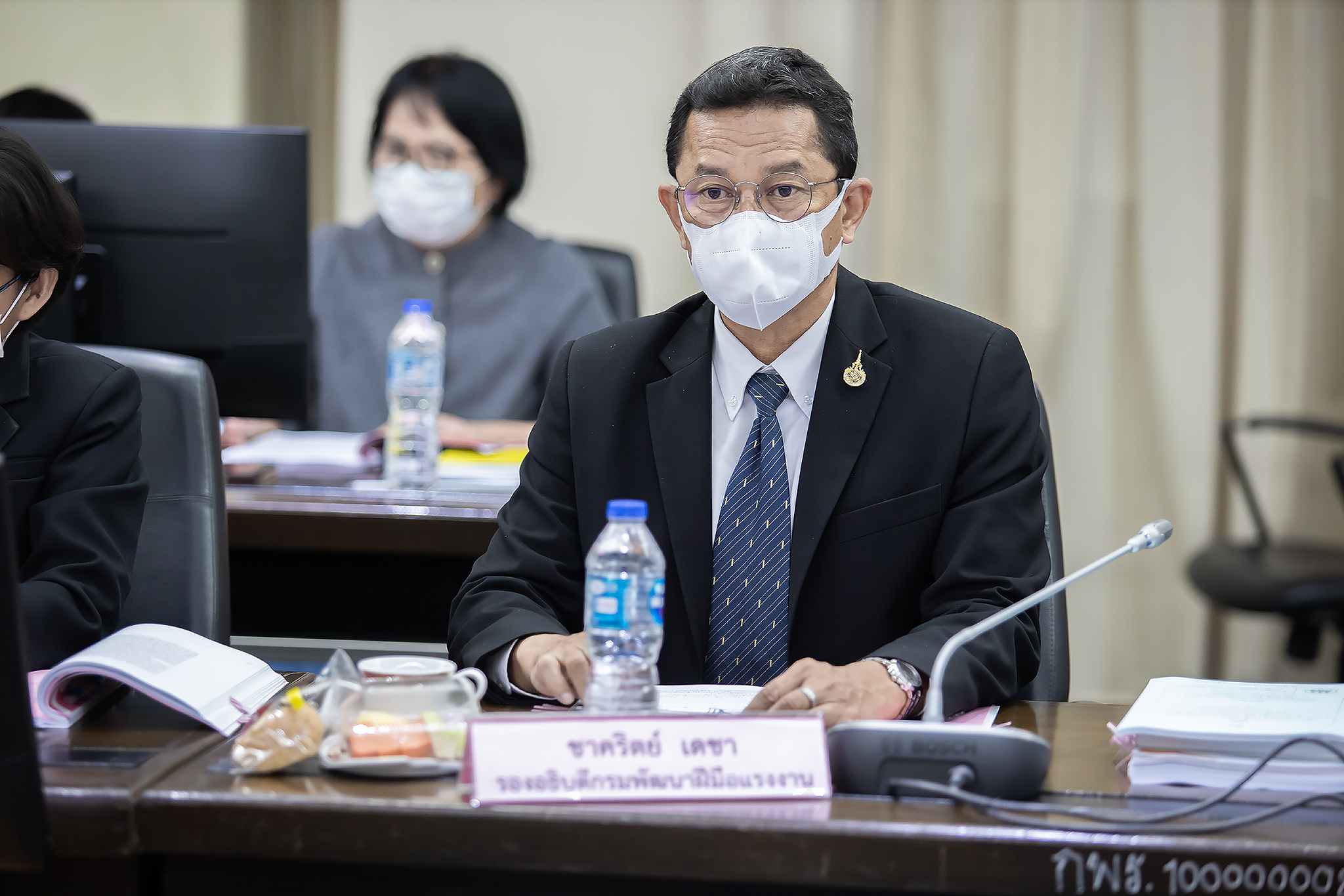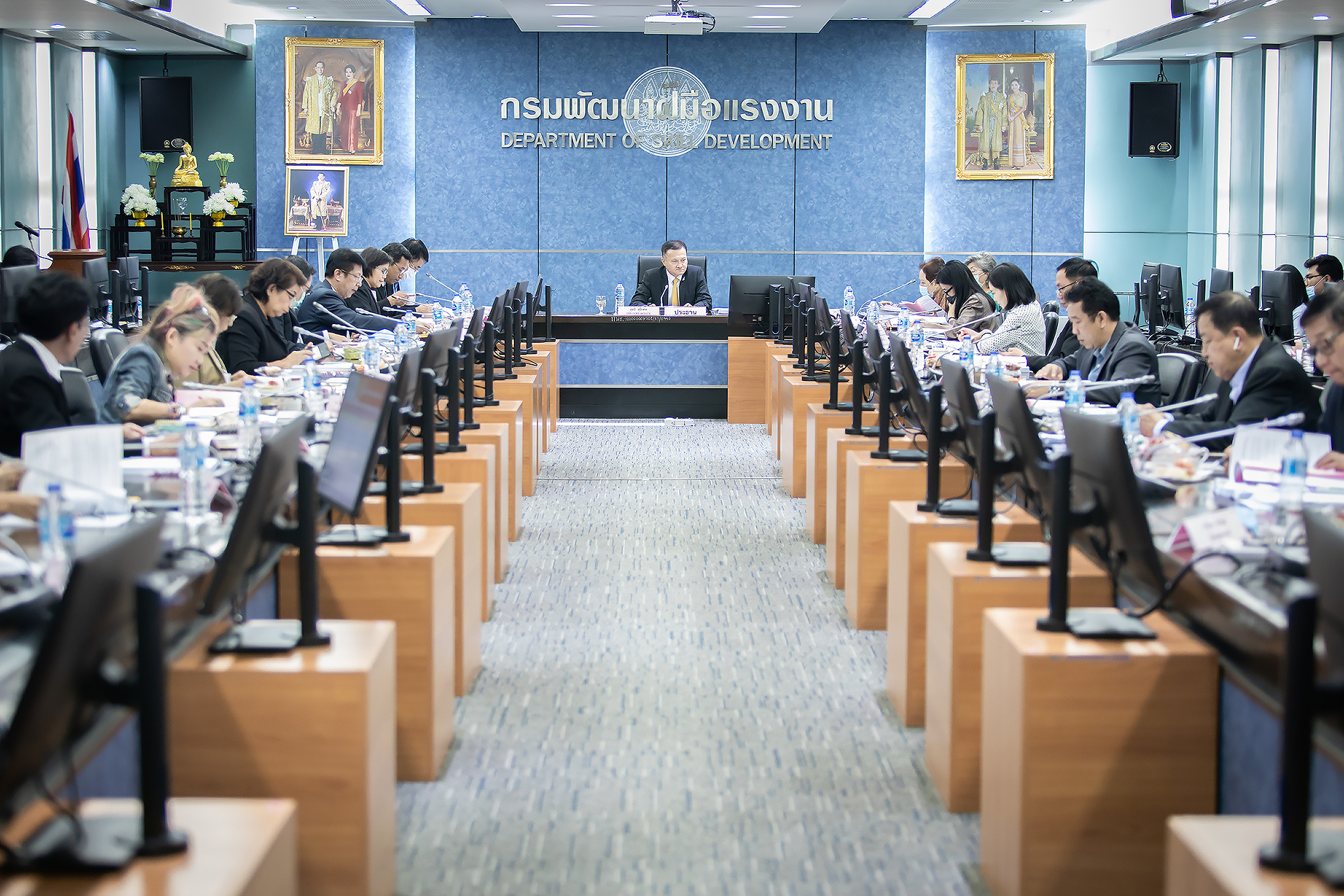 Today (October 21, 2020) at 13.30 hours, Permanent Secretary of Labour Mr. Suthi Sukosol presided over the meeting of the Labour Skill Development Promotion Committee No. 8/2020 with relevant departments at the Pakorn Angsusingh meeting room, 10th floor, Department of Skill Development. The meeting sought approval for the draft announcement of the Skill Development Promotion Committee on the National Skill Standards Qualifications of persons who pass the National Skill Standard Level 2-4, assessment methods, and the issuance of a certificate as a person who passed the Level 2 test for an electrician in the information network cabling branch. The meeting also requested approval to certify the labour skill standard of professionals under Section 26 of the Skill Development Promotion Act B.E. 2545 and approval for the 10th subcommittee’s appointment on technical skills competitions for the disabled in 15 branches. The meeting also requested for approval in principle of exemption of fees related to knowledge and capability certification. It sought approval in principles of the drafting of the Skill Development Promotion Committee on criteria, methods, and conditions for submitting an application for assessment, issuing a certificate of knowledge and competence, the duration of the certificate for competence, and issuing a substitute for a certificate of knowledge and ability.